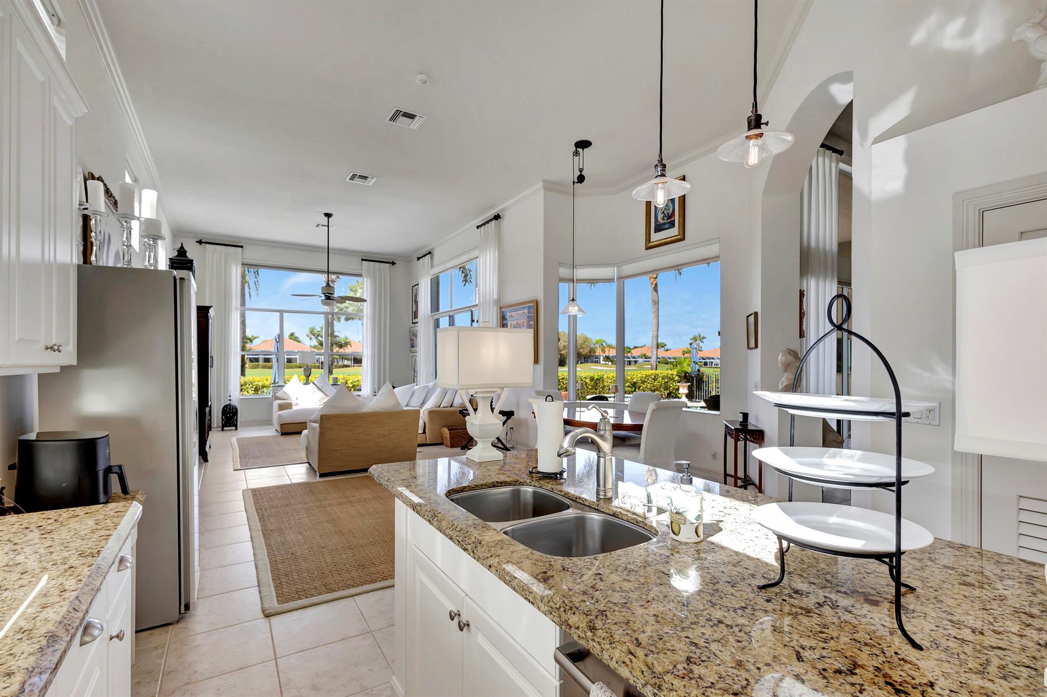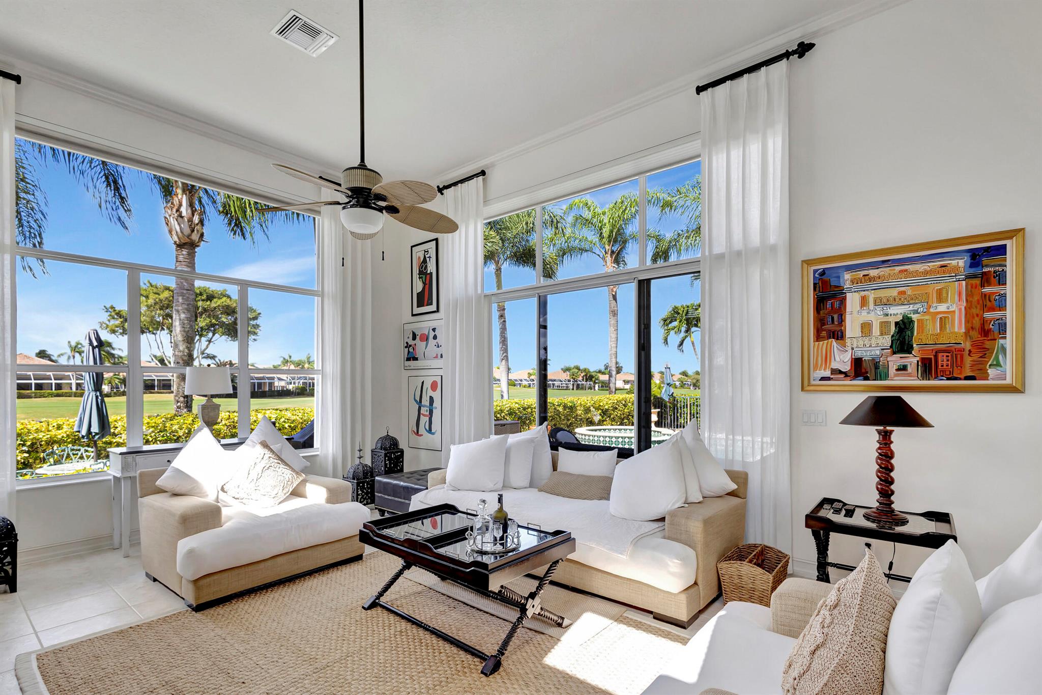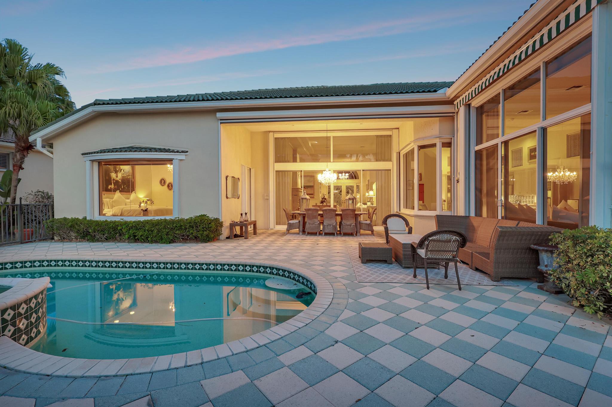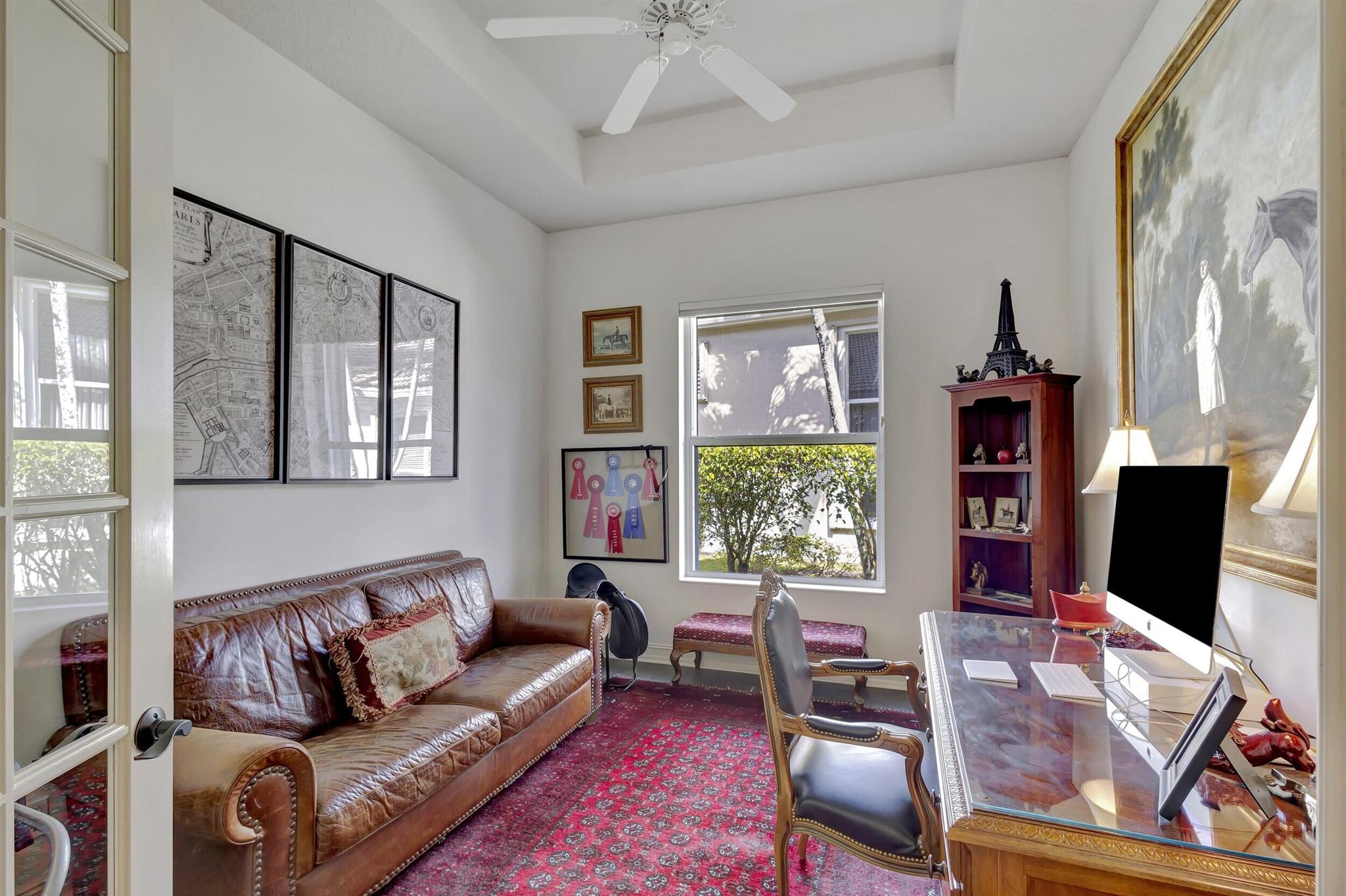 Welcome to this exquisite 4 bedroom, 4 bath + den home nestled in a serene cul-de-sac located in Ibis Isle. This rare gem offers a perfect blend of elegance, functionality, and tranquility, making it an idyllic retreat for discerning homeowners. As you step in the foyer, you're greeted with an abundance of natural light streaming through large windows and reflecting throughout the 14' high ceilings, casting a warm glow throughout the home. Renovations have been made in every room and the kitchen is host to Wolf under-over oven, Wolf gas top grill, Sub-zero refrigerator-freezer, Bosch dishwasher, white cabinets with granite tops and