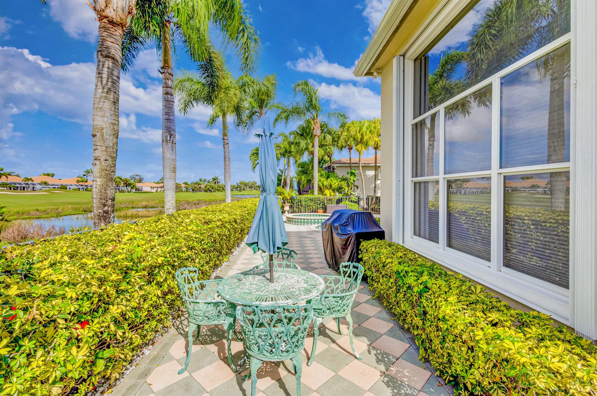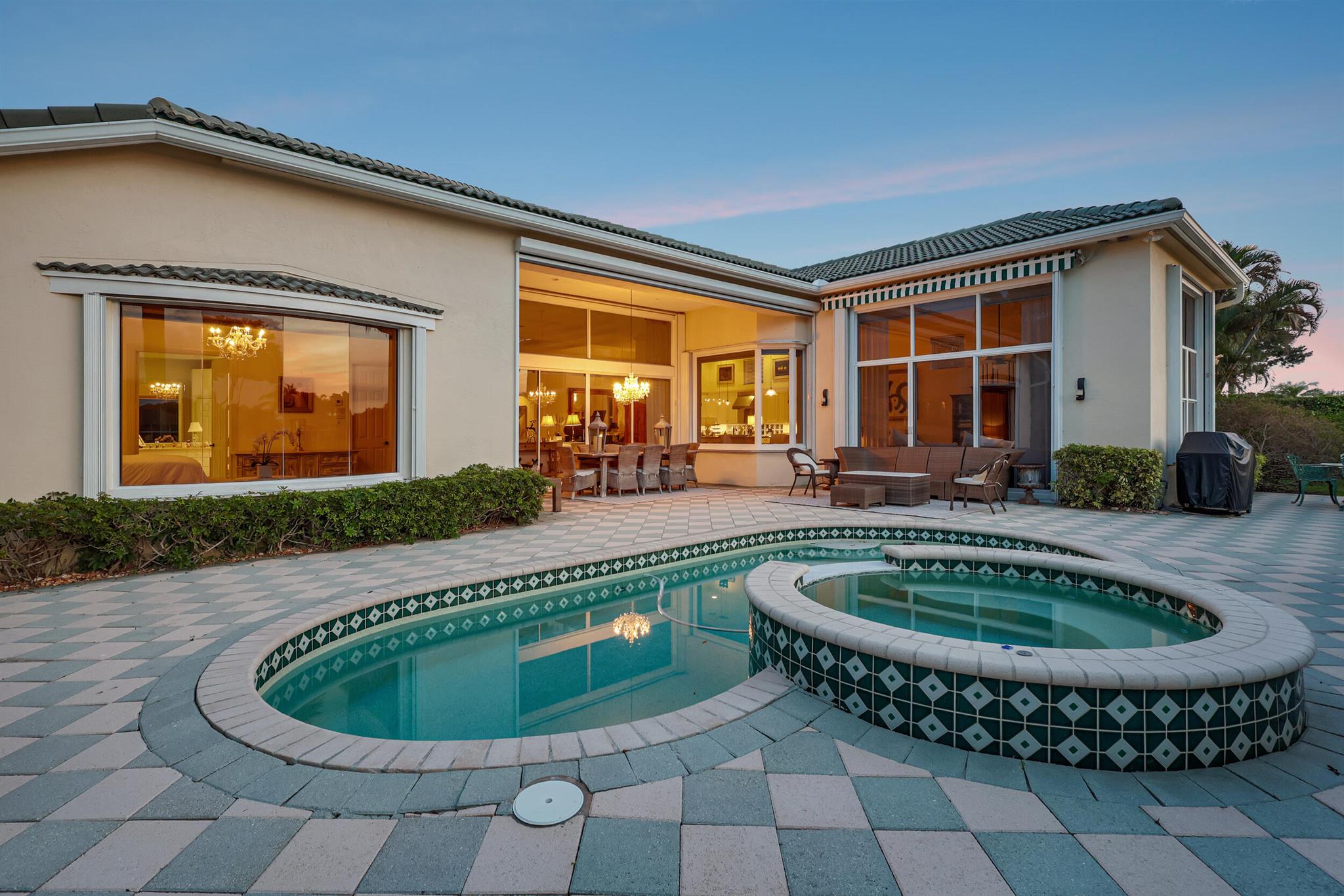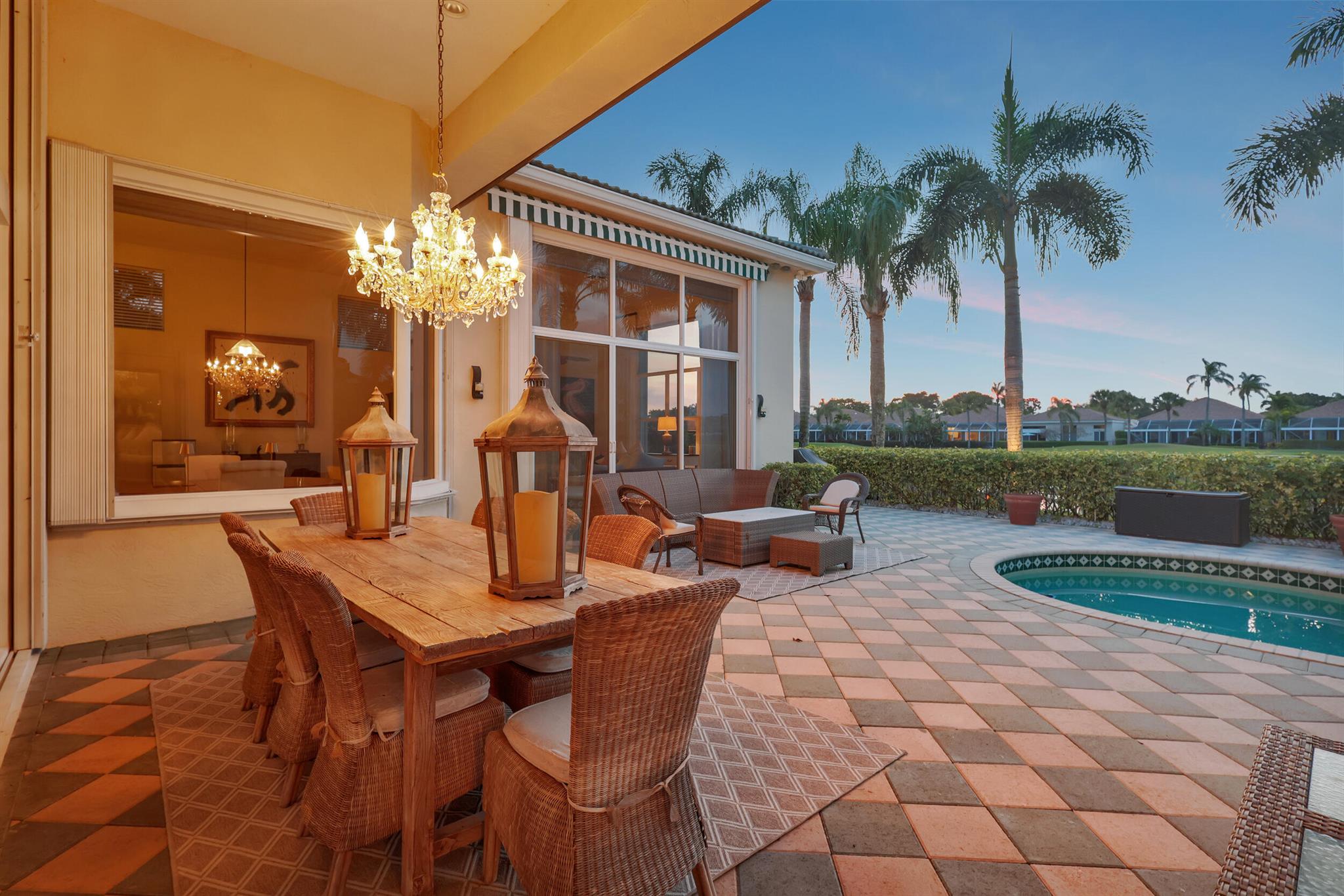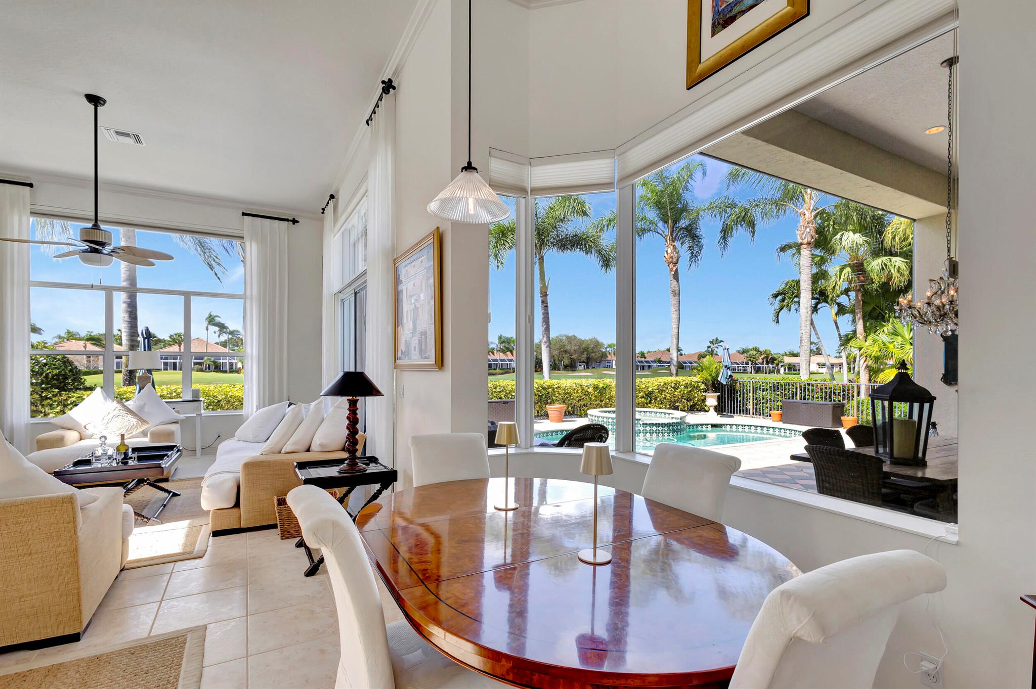 Welcome to this exquisite 4 bedroom, 4 bath + den home nestled in a serene cul-de-sac located in Ibis Isle. This rare gem offers a perfect blend of elegance, functionality, and tranquility, making it an idyllic retreat for discerning homeowners. As you step in the foyer, you're greeted with an abundance of natural light streaming through large windows and reflecting throughout the 14' high ceilings, casting a warm glow throughout the home. Renovations have been made in every room and the kitchen is host to Wolf under-over oven, Wolf gas top grill, Sub-zero refrigerator-freezer, Bosch dishwasher, white cabinets with granite tops and