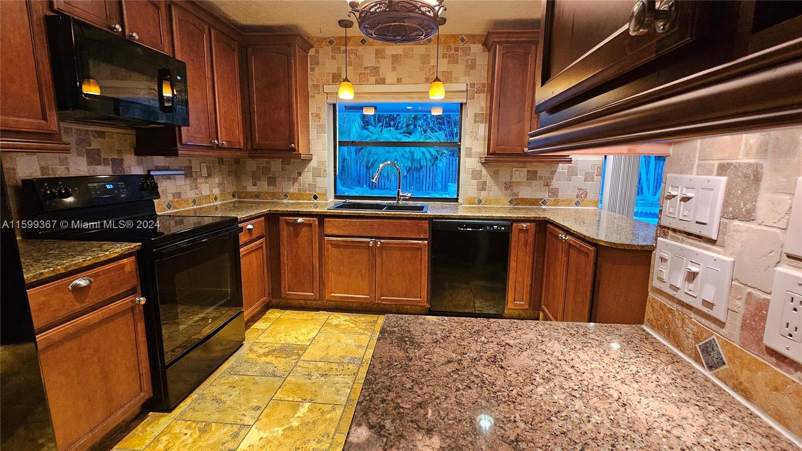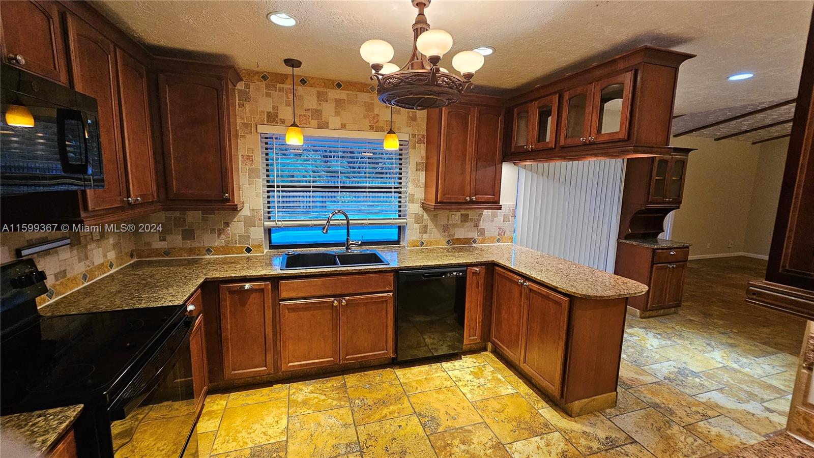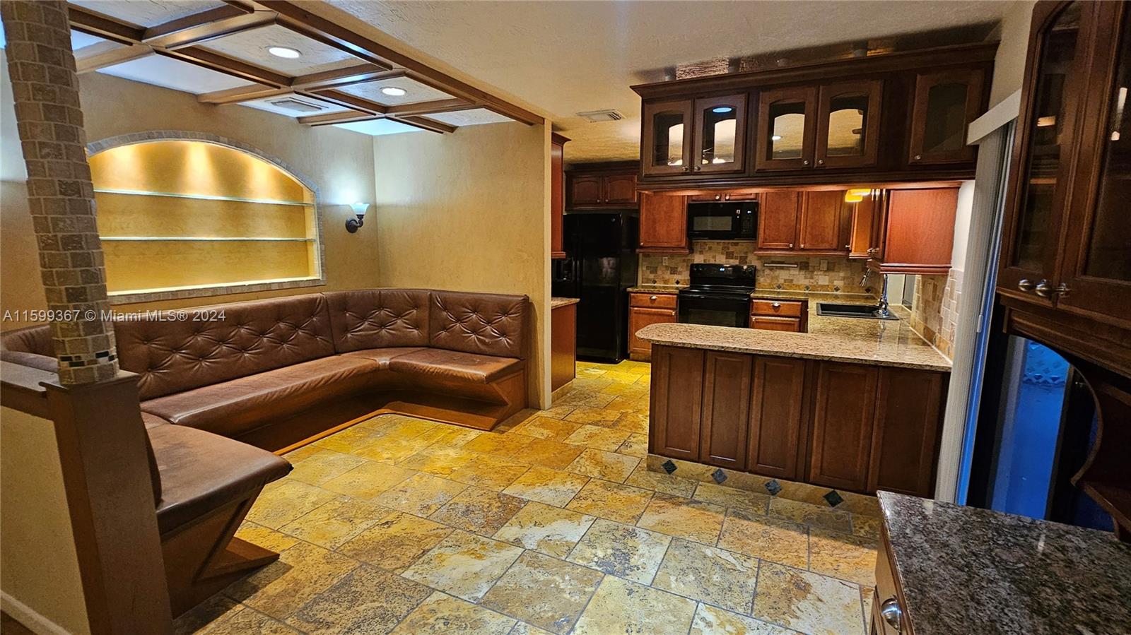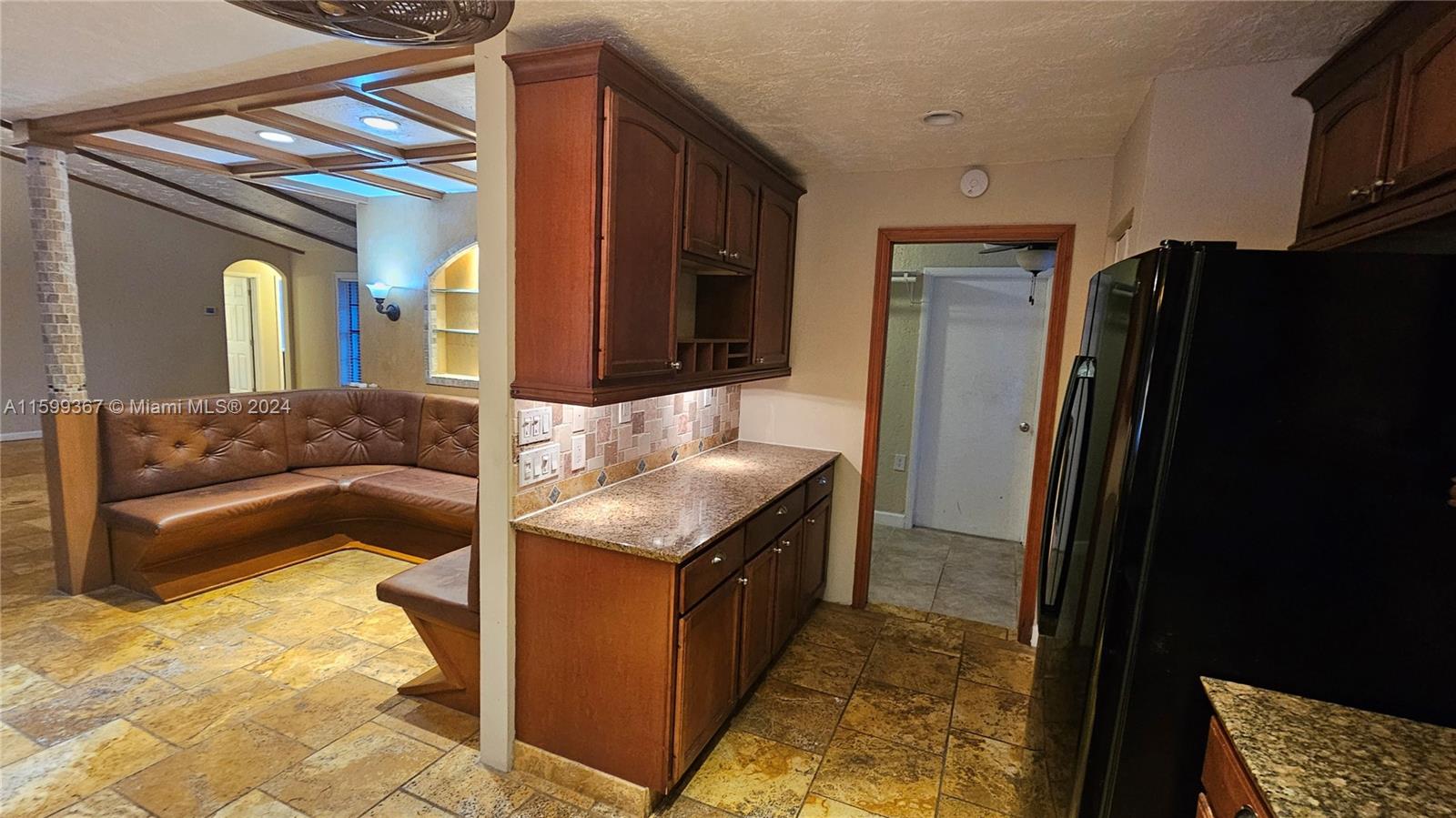 Magnificent 4 bedroom and 2 bathroom Coral Springs pool home! Open and updated country style kitchen features custom wood cabinets, granite counters and newer appliances. Custom made breakfast seating area. Over sized kitchen pantry and laundry room. Large family room and dining area contain high vaulted ceilings with decorative faux wood beam moldings. Gorgeous slate stone tile floors add to the home's unique country feel. Master bedroom suite with 2 separate walk-in closets and sliding glass doors which lead out onto the home's pool deck. Covered terrace over sees the home's inviting swimming pool. Situated on a wonderful spacious lot that has space left over for fruit trees or a kids play area. Centrally located inside an awesome tree lined quite neighborhood.