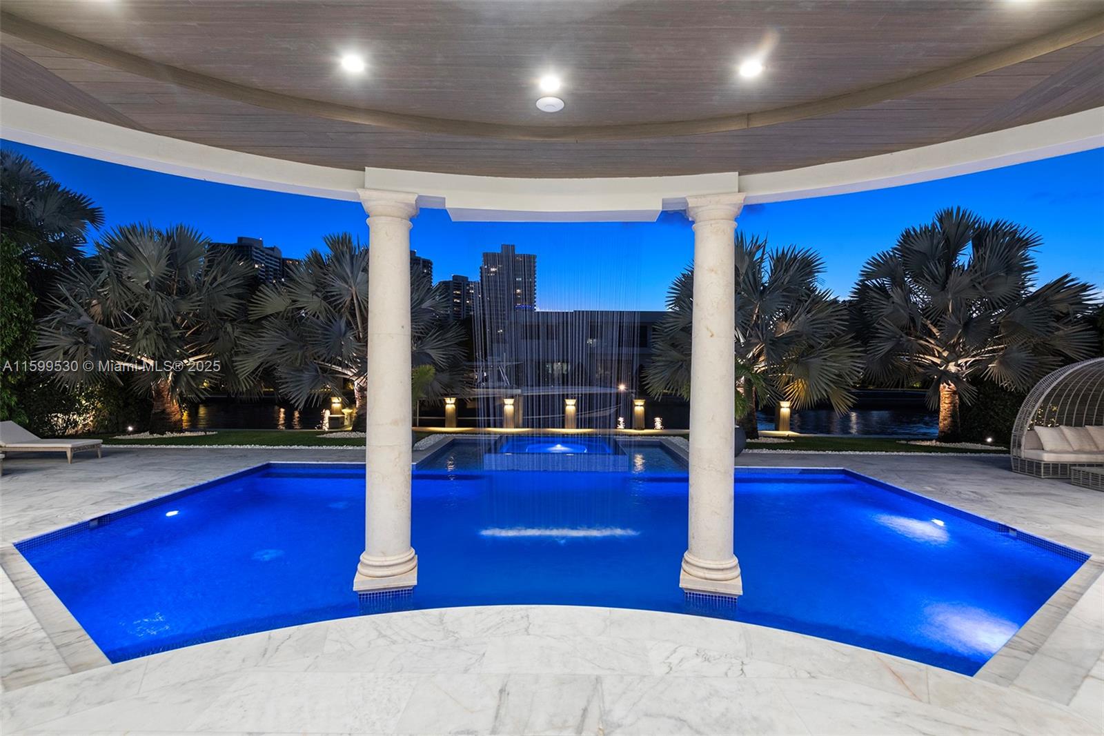 Welcome to a new-age castle in Golden Beach, a newly built custom waterfront masterpiece. This home boasts massive ceilings and a well-thought-out design with handpicked European materials and finishes. Enjoy 100 feet of private water frontage, no fixed bridges, and easy ocean access. This smart home includes an extra generator and is an entertainer's dream with open spaces featuring 13-foot ceilings, a chef's kitchen, home theater, game room, living room fireplace, built-in patio barbecue, and custom saltwater pool with jacuzzi. The primary bedroom offers a balcony, dual walk-in closets and bathrooms, and an office space. Guest bedrooms feature walk-in closets, balconies, and en-suite bathrooms. Fully furnished with Fendi, Bentley, and Visionnaire furniture.