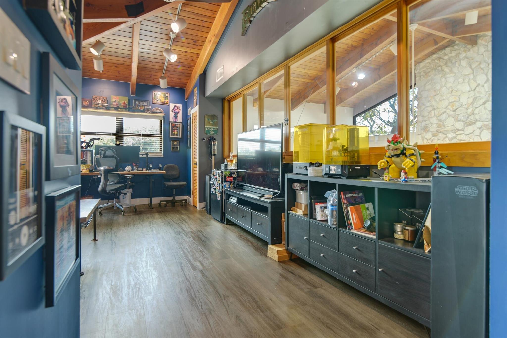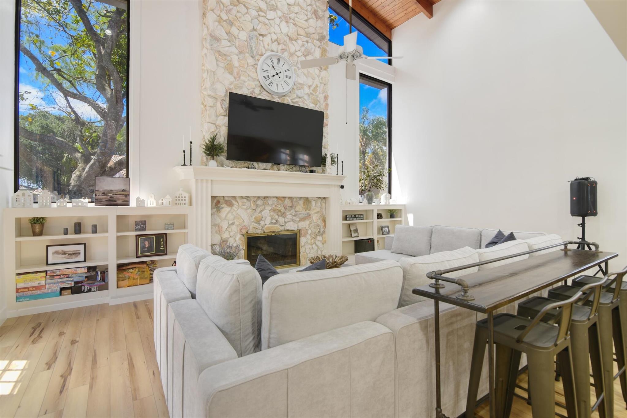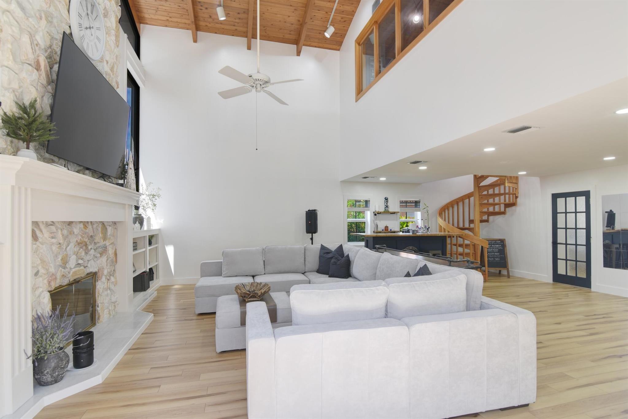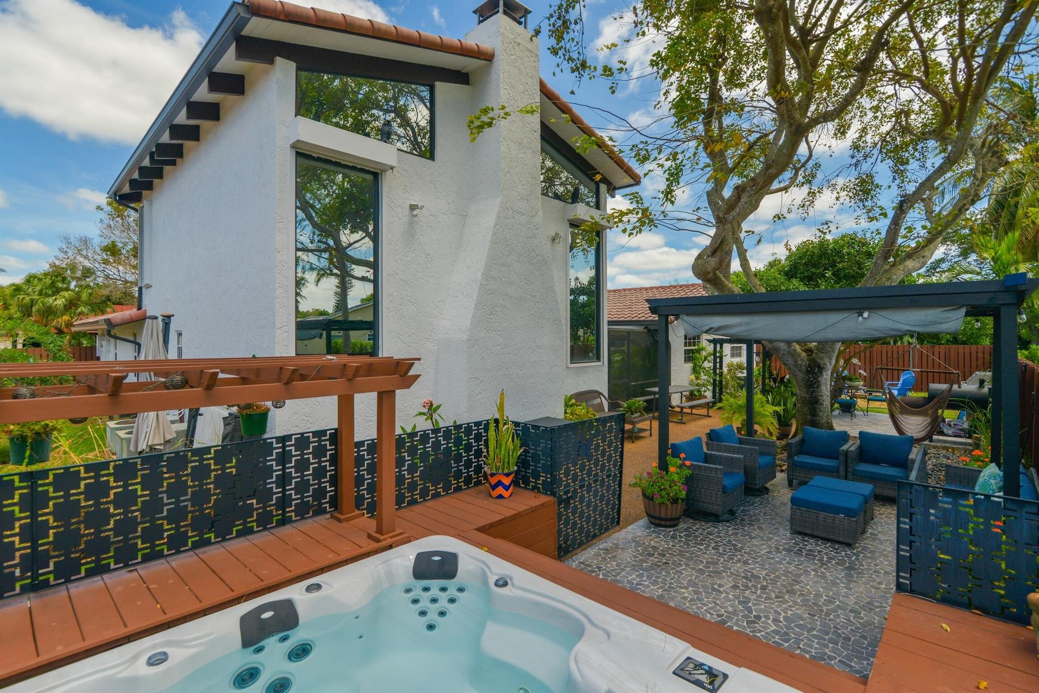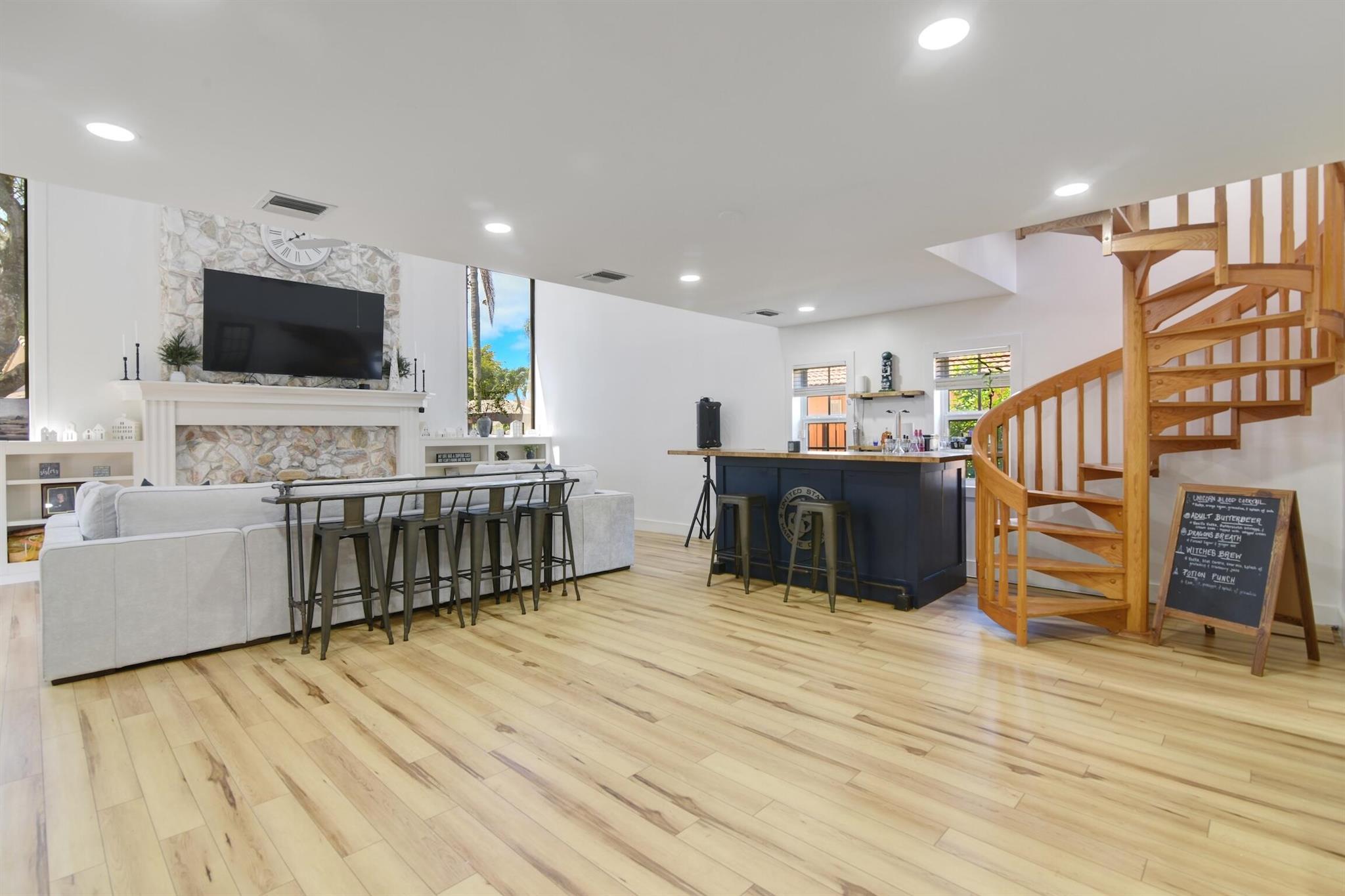 Priced to sell at $226 per sq ft. Average in area is $279 per sq ft. Stunning large 3500 sqf.t home walking distance to The Walk and downtown Coral Springs, FL, is a hidden gem! Features an upstairs studio, office or 6th bdrm accessed by a spiral staircase. 5 bdrms on main floor. Fireplace, charming wood plank ceiling, new floors, partial impact windows. Master separate from bdrms. Perfect home if you love to entertain, it accommodates every occasion with style. Featuring three dining areas, a generously sized centralized kitchen, a delightful screened-in atrium for herbs + hot tub with deck + bar + fenced yard. Walking distance to shops, art fairs, dining. Enjoy stress free living w/ no HOA! Near excellent charter schools like Everest Panacea and City of Coral Springs Charter schools.