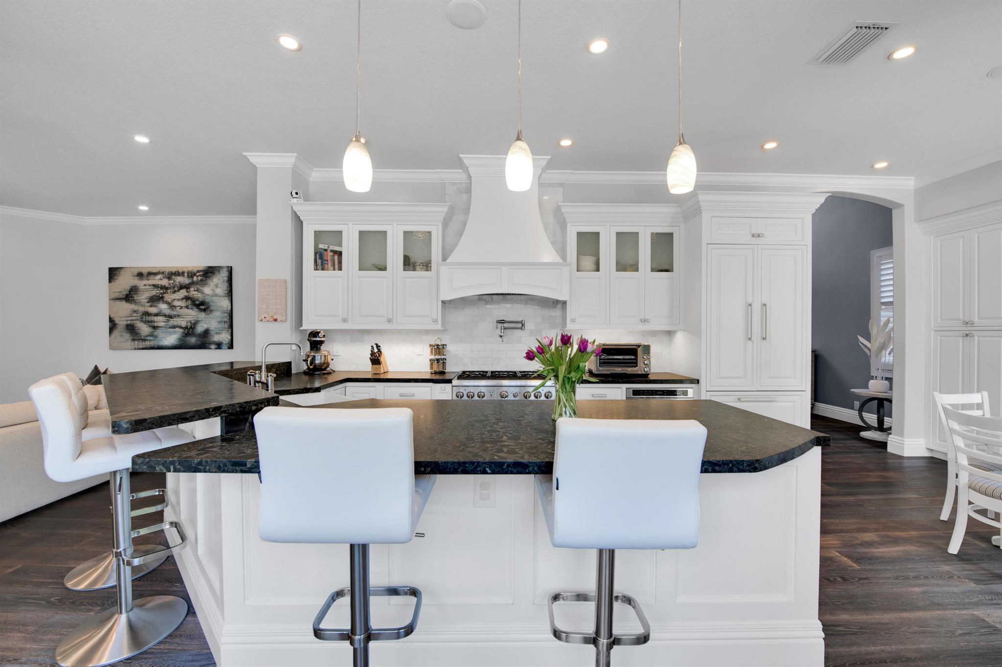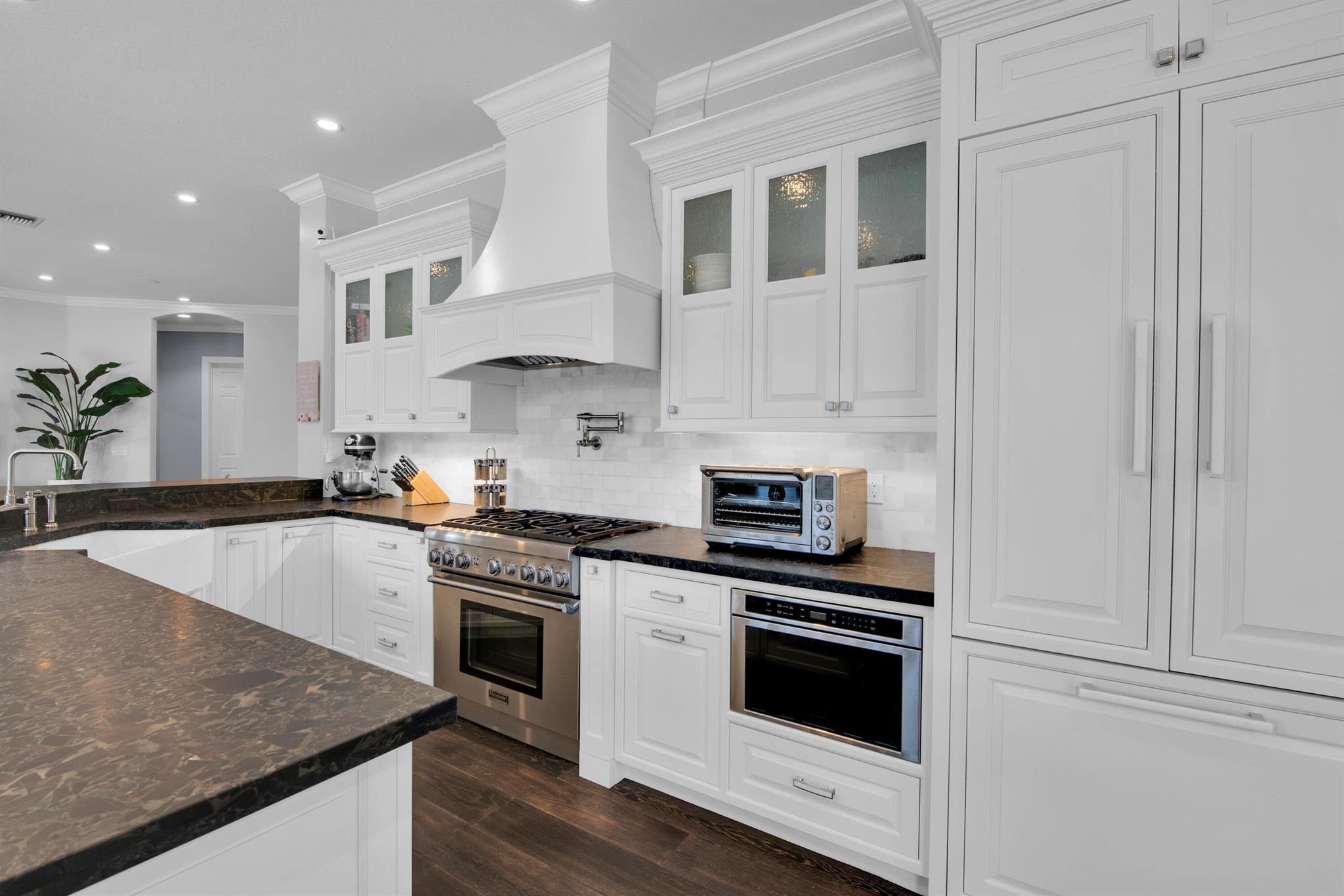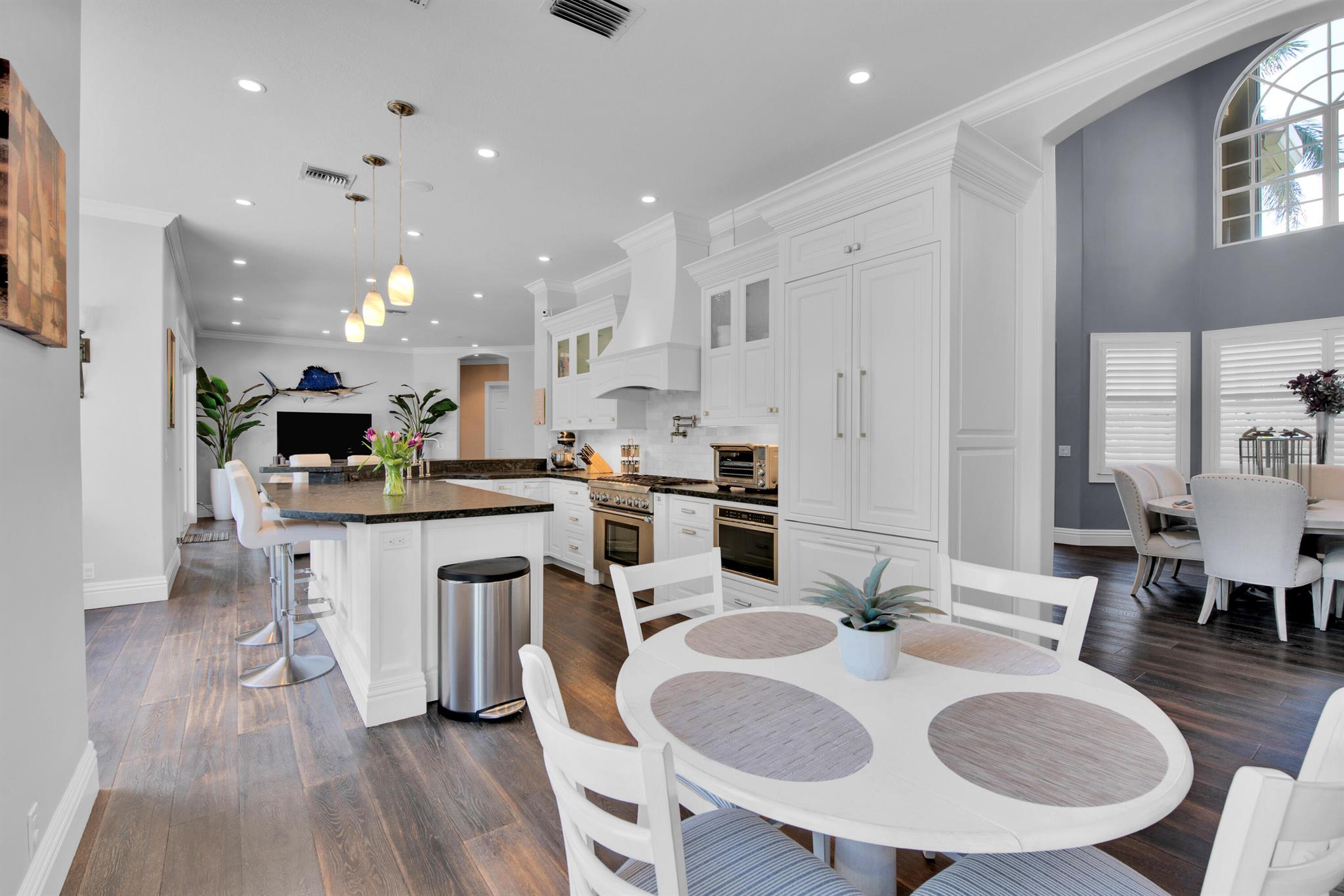 Immerse yourself in the epitome of luxury and sophistication with this stunning Avalon home, meticulously renovated to exceed the highest expectations. From the moment you step inside, the authentic wood flooring on first floor and rich Brazilian wood flooring in the bedrooms, set a tone of refined elegance. The kitchen is a chef's dream, featuring a Thermador gas stove, non-polished granite counters, and a built-in wine chiller, perfect for entertaining. The lavish primary suite has a huge walk in closet and expansive roman tub with separate shower in primary bath. Safety features include hurricane impact windows and accordion shutters. The home boasts a beautifully landscaped exterior with a covered patio and open pool with new tile.