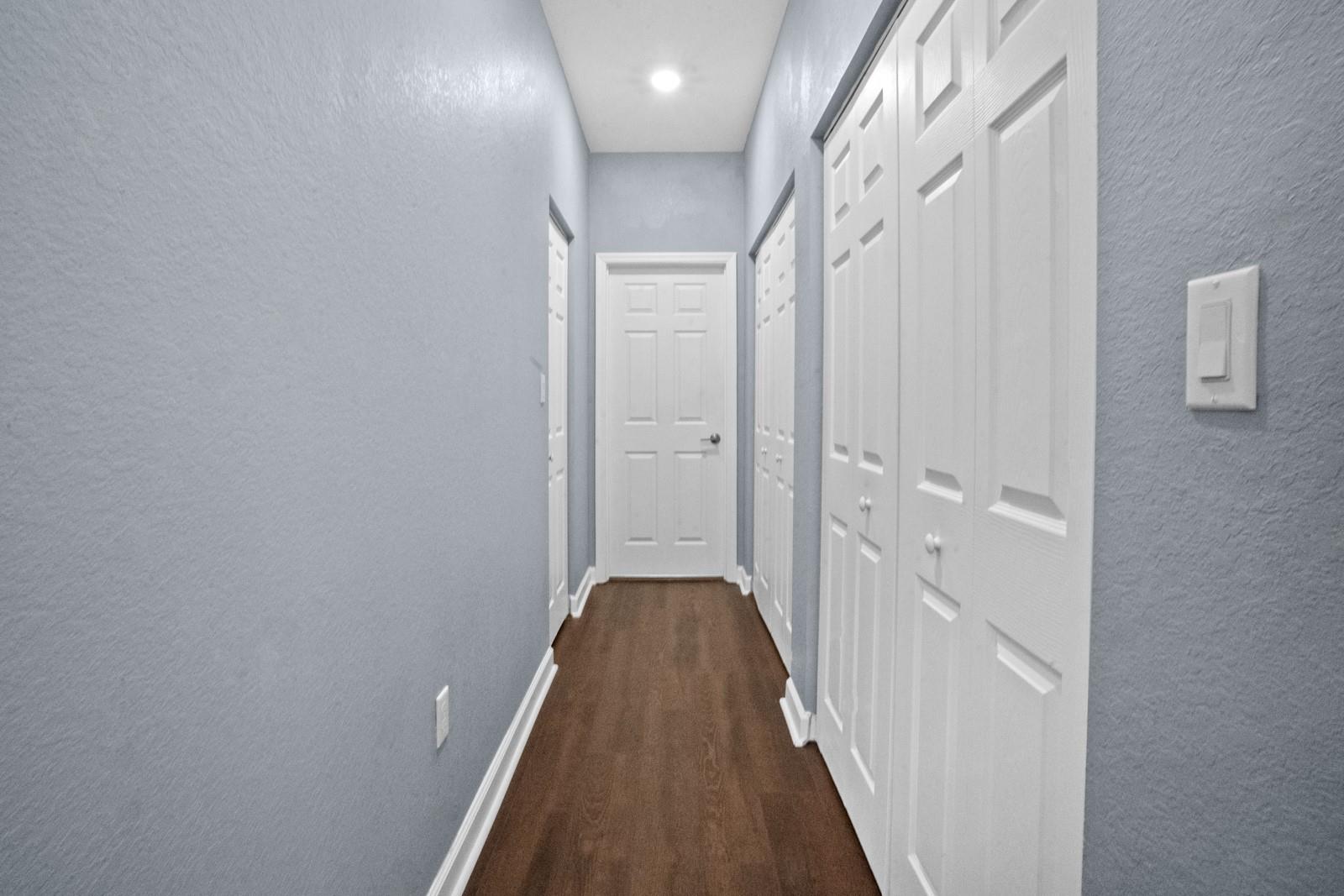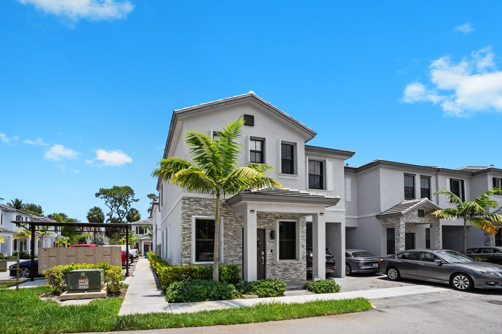 One of a kind corner unit that is highly upgraded. Kitchen features quartz counter tops and a slate ledger backsplash. Porcelain flooring throughout the downstairs area. Upstairs area features vinyl flooring as well as the stairs leading up. Custom light fixtures throughout. Vanity added to powder room. Blackout shades in bedrooms and sheer shades in living area. All windows are tinted and have accordion shutters. Rear patio area features custom pavers and wooden fence is stained. Ring cameras outside the unit for safety. One car garage and two car tandem driveway. Guest parking available also. This unit won't last !!!!