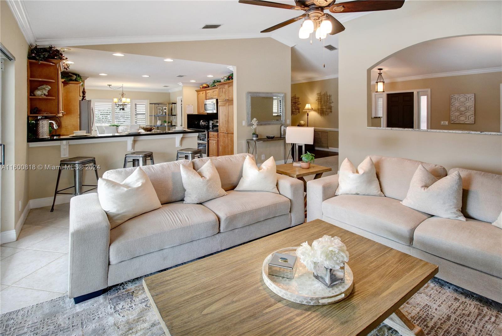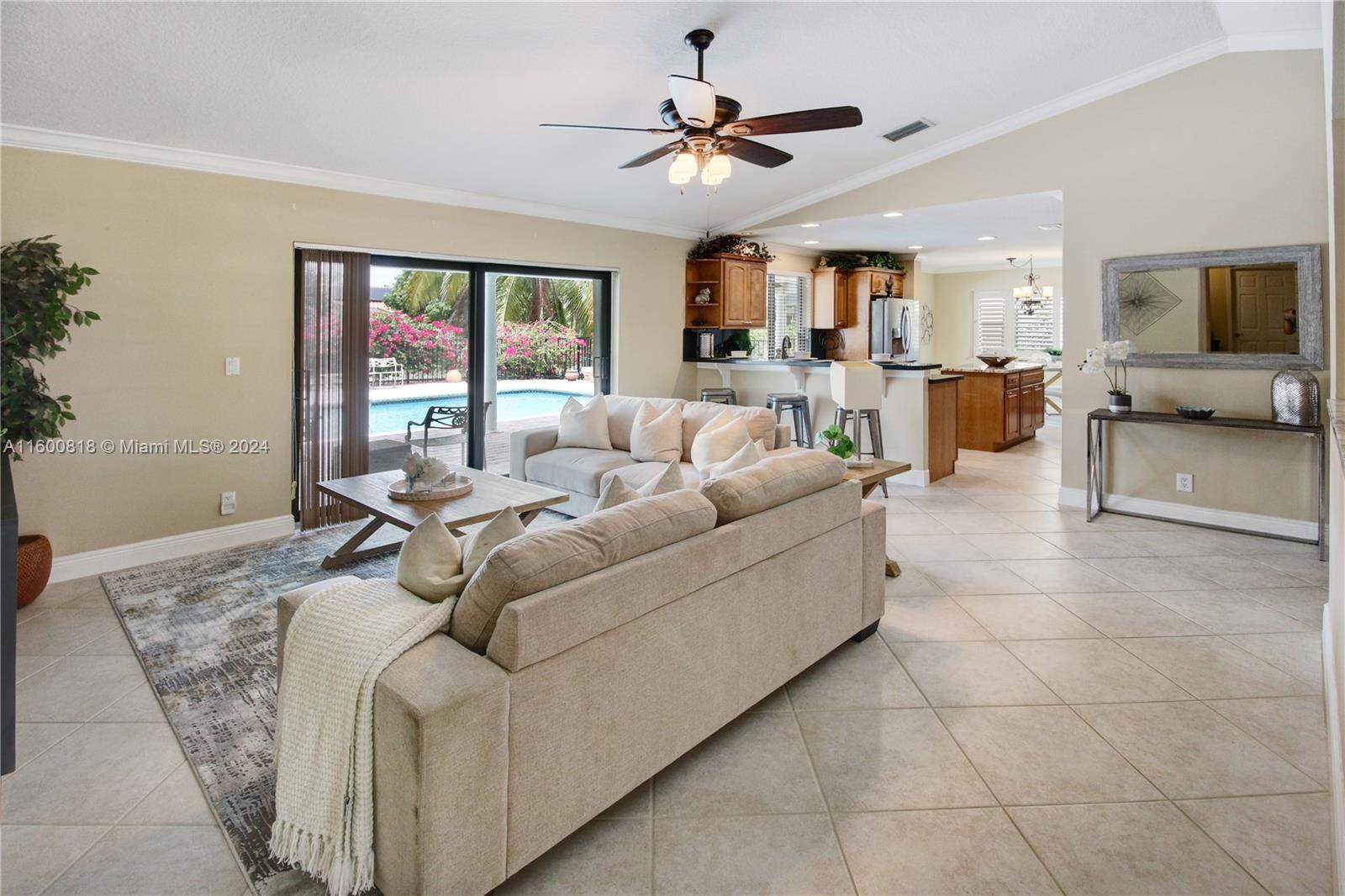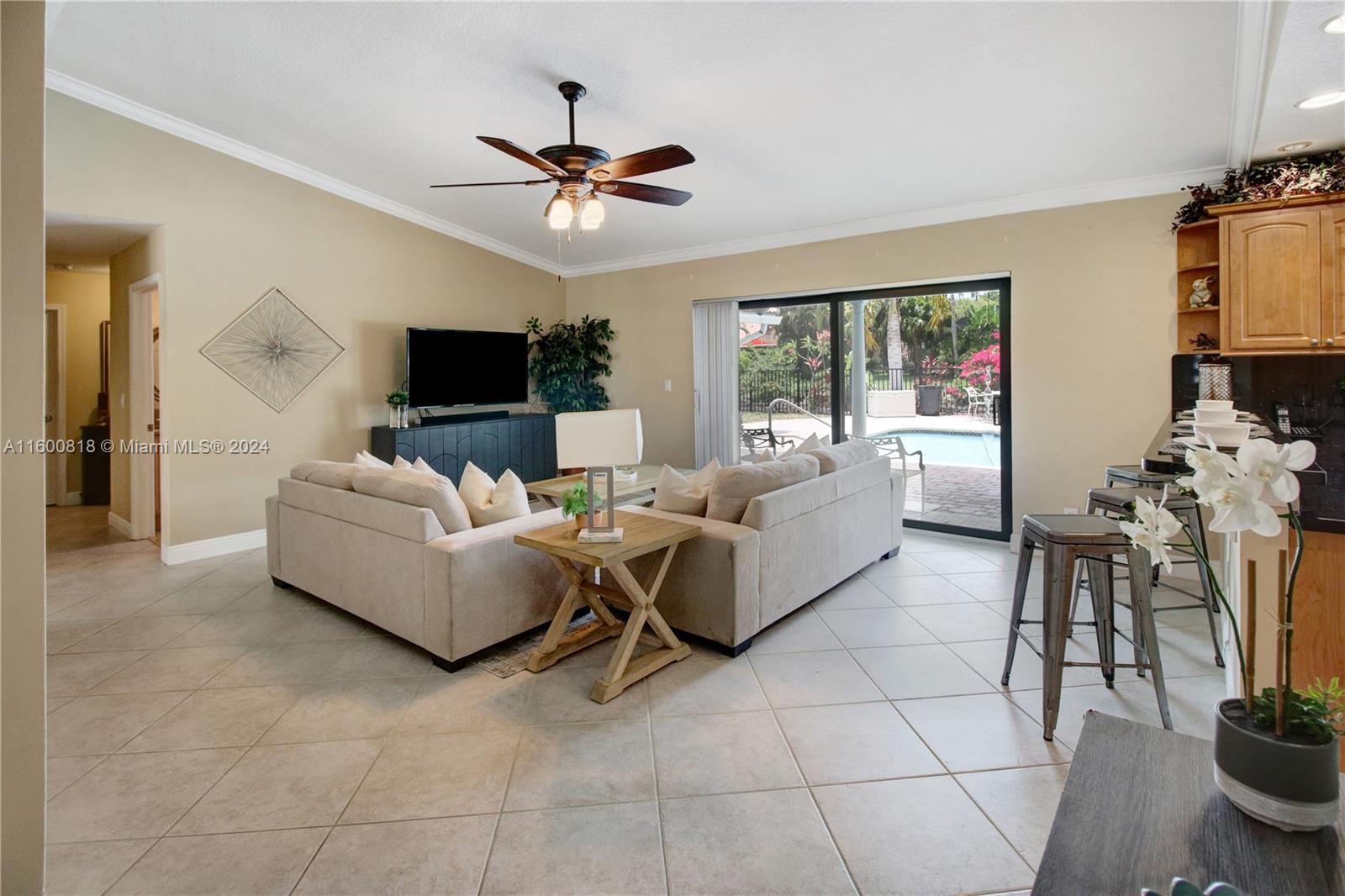 Welcome to Pine Ridge, one of the most sought-after communities in Coral Springs. This meticulously maintained 4 bedroom, 2 bath pool home has stunning curb appeal with expansive front and backyard areas. Open floorplan with vaulted ceilings enhances spaciousness. Gorgeous crown molding throughout main living spaces and master bedroom. Kitchen features granite countertops, wood cabinetry, SS appliances, bar-style seating, and center cooking island. Home is equipped with all impact windows and doors. Huge master bedroom with custom California closet. Low HOA. A-rated schools. Newer resurfaced pool. New flat roof. Lush Landscaping throughout. Irrigation system is hooked up to the canal, saving tons on water bill. Centrally located to shopping, schools, supermarkets, highways, & so much more!