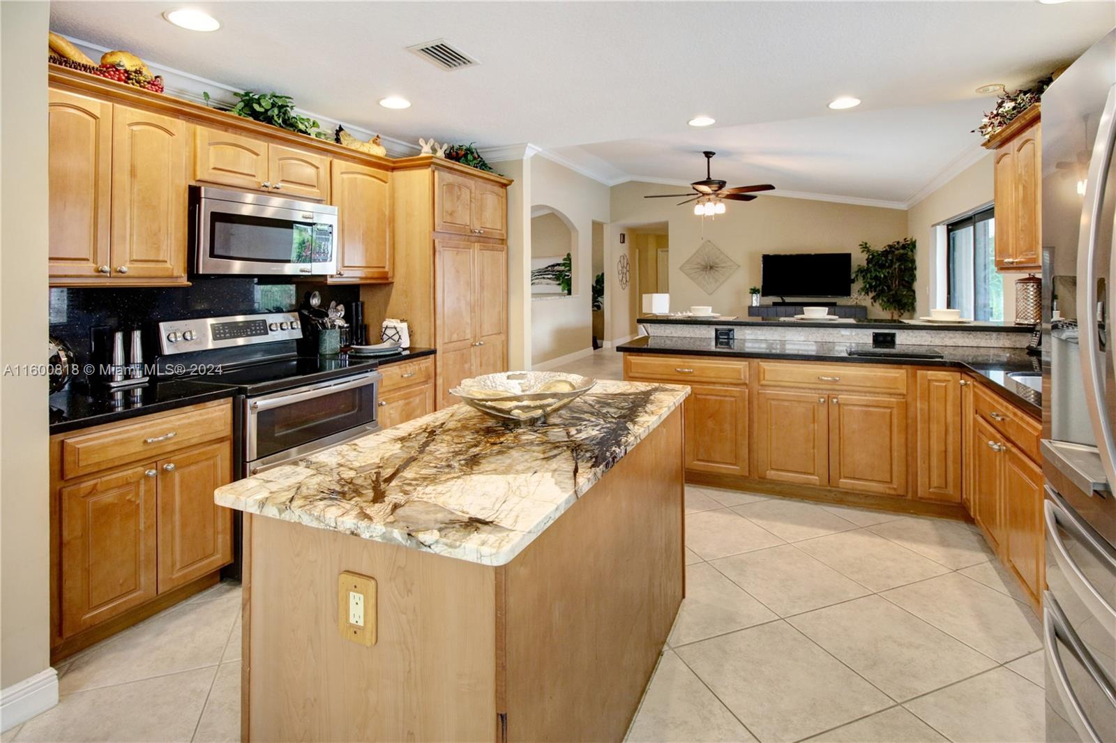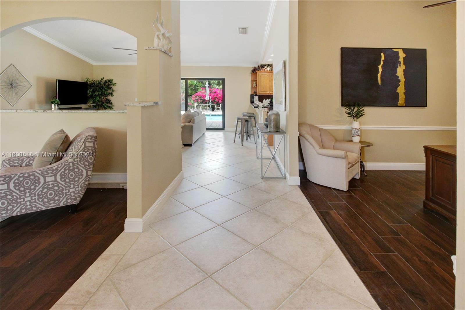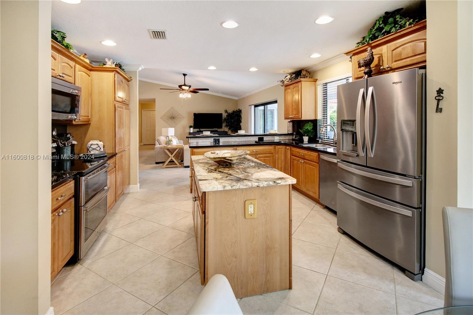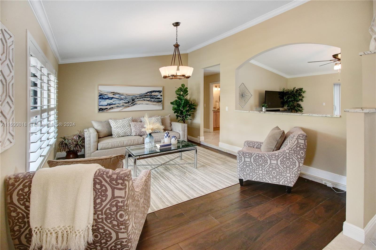 Welcome to Pine Ridge, one of the most sought-after communities in Coral Springs. This meticulously maintained 4 bedroom, 2 bath pool home has stunning curb appeal with expansive front and backyard areas. Open floorplan with vaulted ceilings enhances spaciousness. Gorgeous crown molding throughout main living spaces and master bedroom. Kitchen features granite countertops, wood cabinetry, SS appliances, bar-style seating, and center cooking island. Home is equipped with all impact windows and doors. Huge master bedroom with custom California closet. Low HOA. A-rated schools. Newer resurfaced pool. New flat roof. Lush Landscaping throughout. Irrigation system is hooked up to the canal, saving tons on water bill. Centrally located to shopping, schools, supermarkets, highways, & so much more!