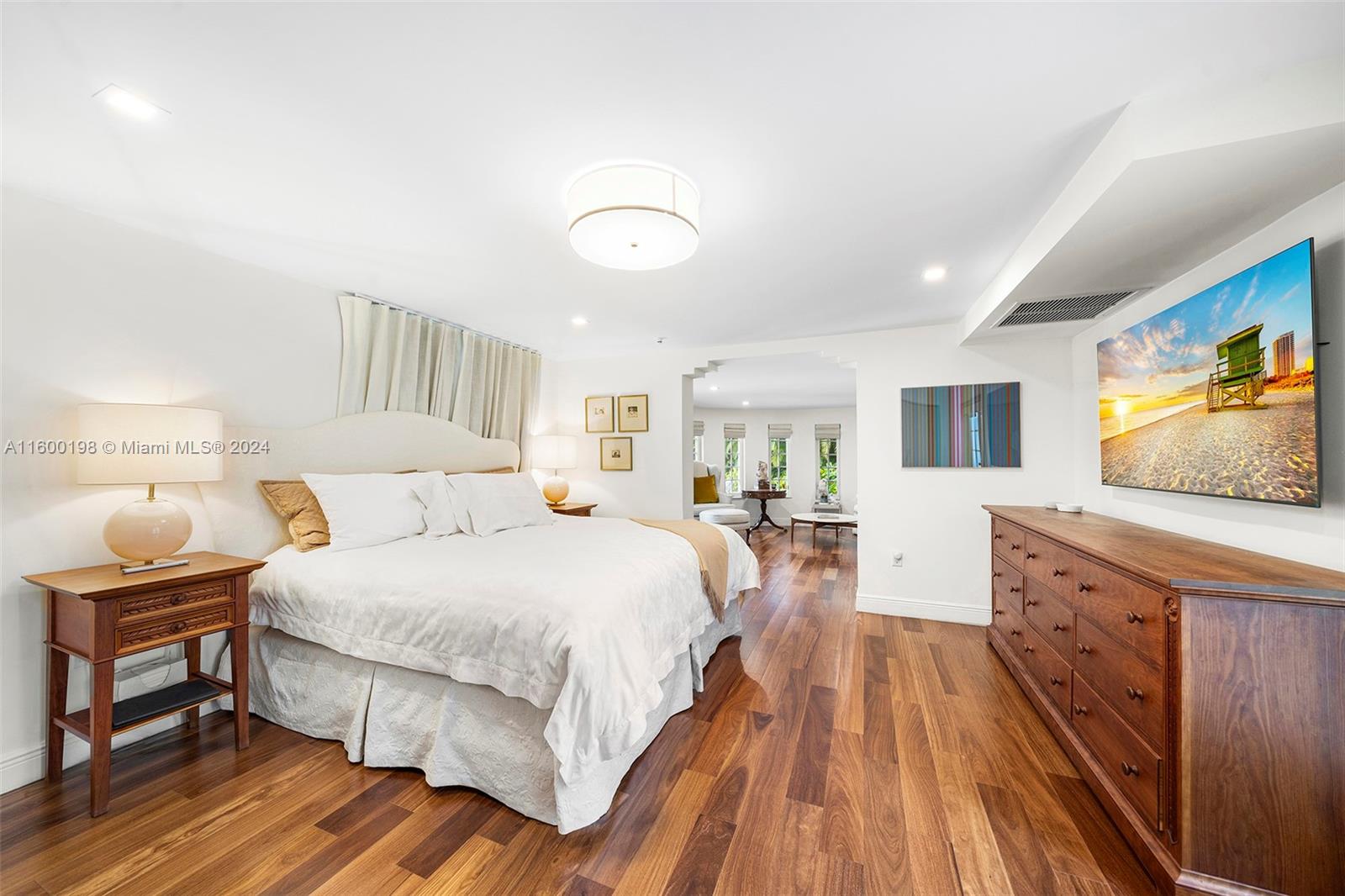 Timeless elegance meets modern luxury - this home defines artistic integration. Upon entering you are greeted by the marble staircase leading to the guest bedrooms upstairs. Downstairs, the primary suite has a private garden, California closet, and sitting room. The resort-style backyard oasis has 3 access points throughout the home with travertine tiles and luscious tropical plants. The gourmet kitchen is outfitted with Miele, Subzero, and Wolfe. The floors are a lavish variety, including Brazilian teak, slate, and porcelain. The renovated pool is saltwater + heated. The 2 AC's are new, the house has City gas, the plumbing is PVC lined, the lighting and electricity are new, the roof tiles were replaced 4 years ago, the house is equipped with Smart ADT security, and the garage is 2 cars.