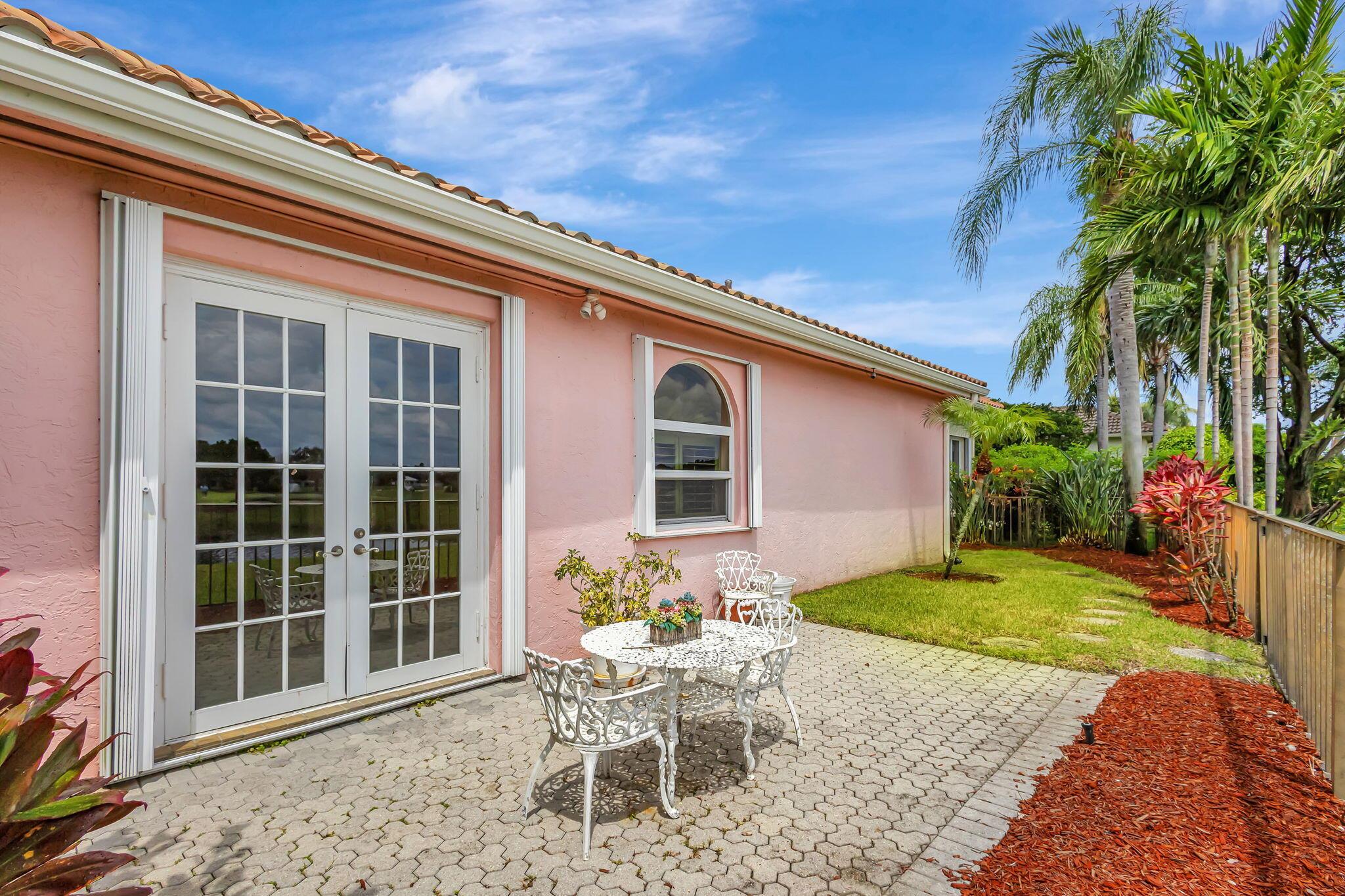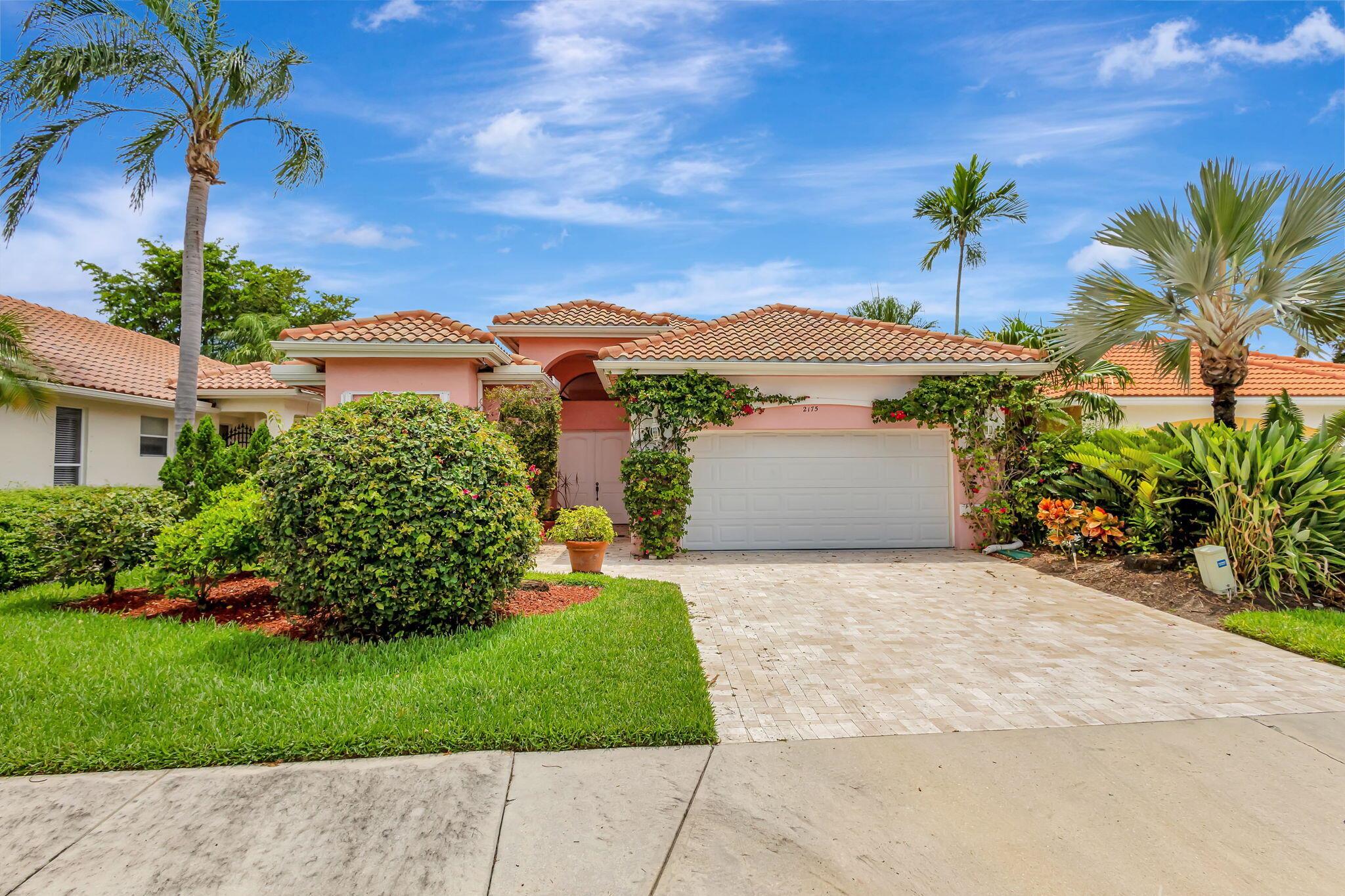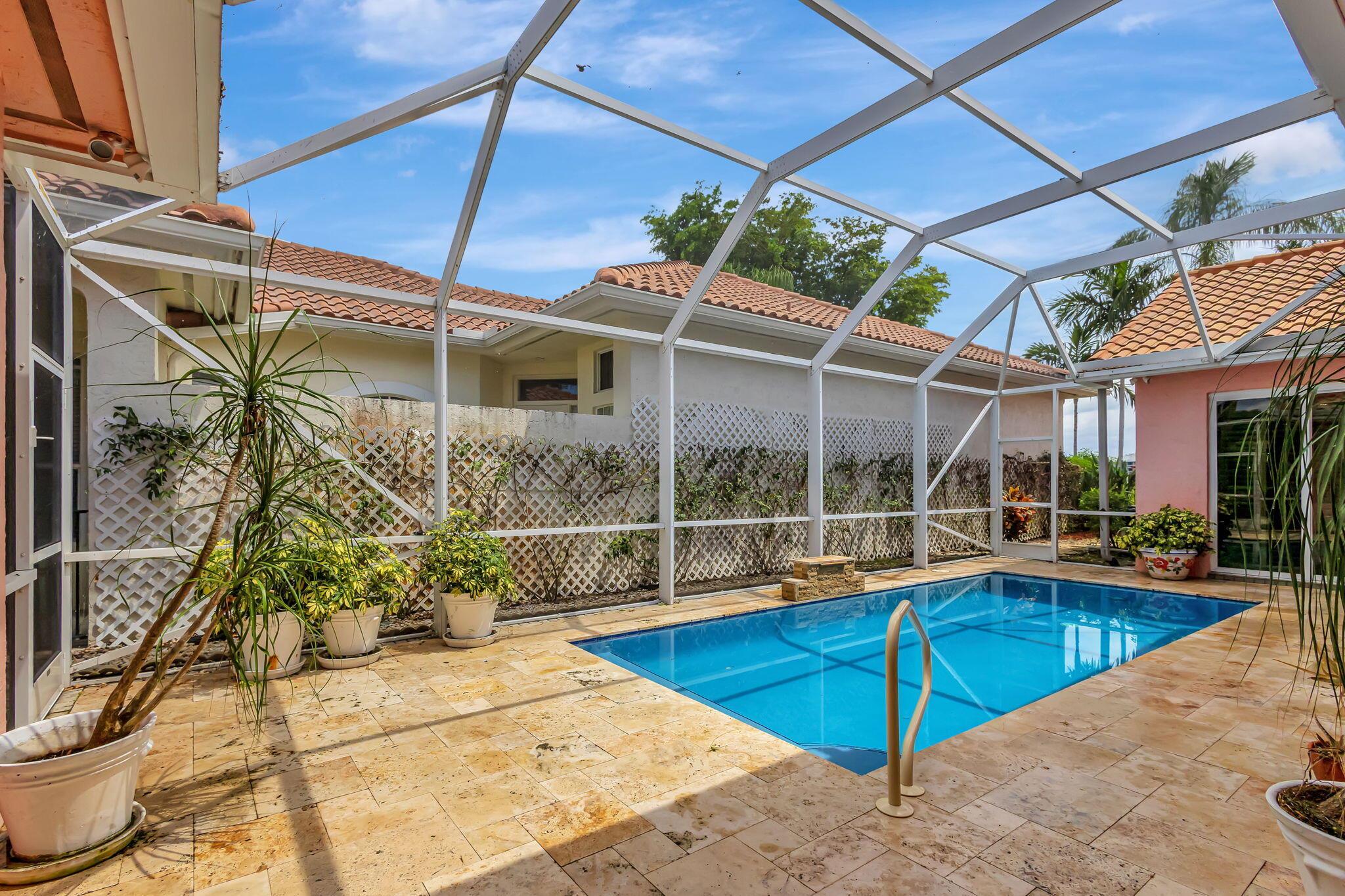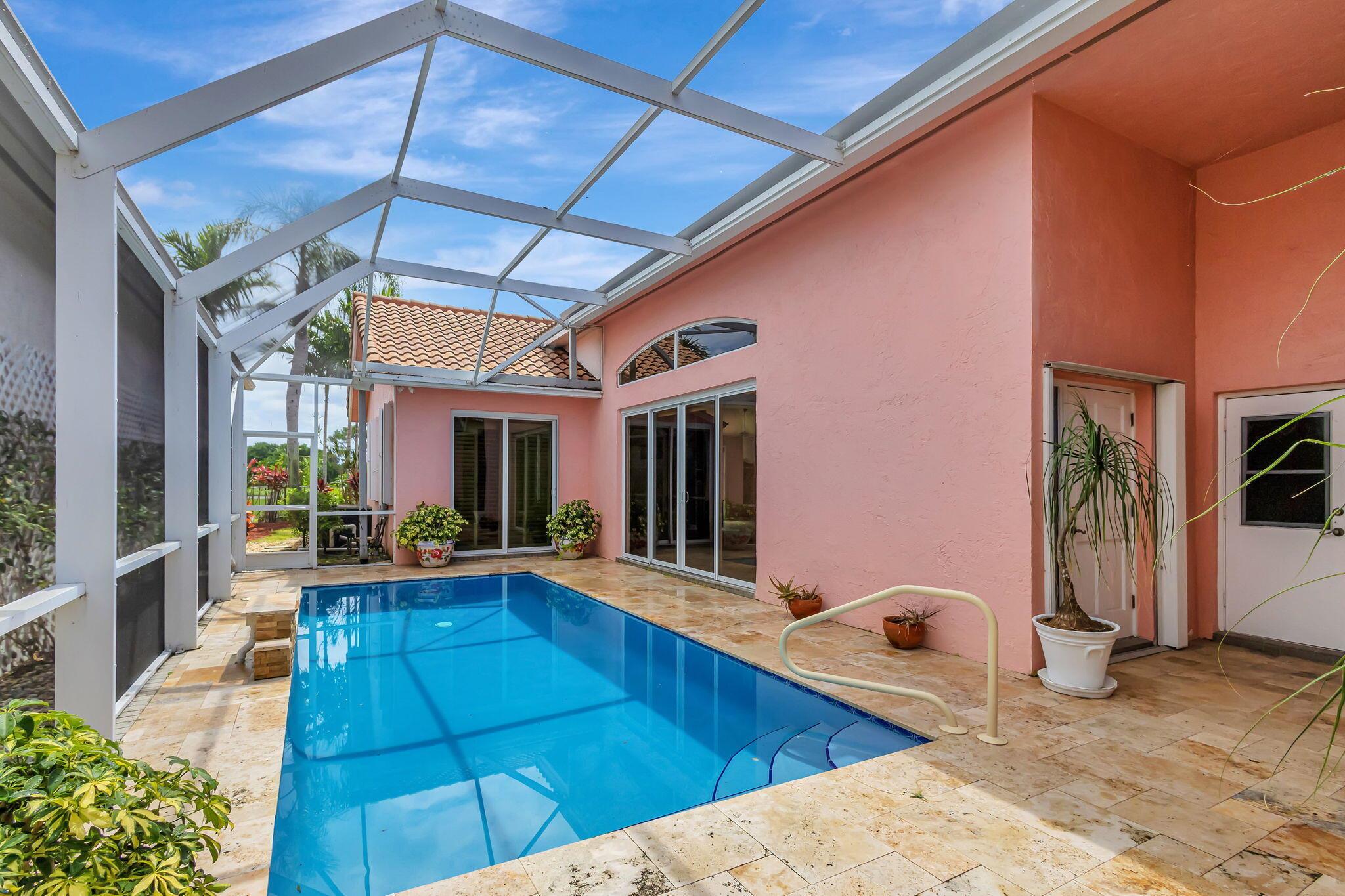 Welcome to this RARELY AVAILABLE courtyard home privately nestled in the exclusive enclave community of Regents Place. This single-story residence is situated on the 11th green of the Bear Lakes Country Club Lakes Course and offers 2 bedrooms and 2 full baths in the main house, 1 bedroom and 1 bath in the guest quarters, nearly 2,300 SF under air, all impact glass, renovated pool, travertine marble driveway and pool deck with sweeping lake and golf views! Spacious open floor plan has vaulted ceilings, tile throughout (no carpet!) built-in shelves with under cabinet lighting, French doors in the family room that lead out to the open patio to enjoy the spectacular views! Generous open kitchen has an abundance of cabinets, granite counter tops, tile backsplash, built-in cooktop