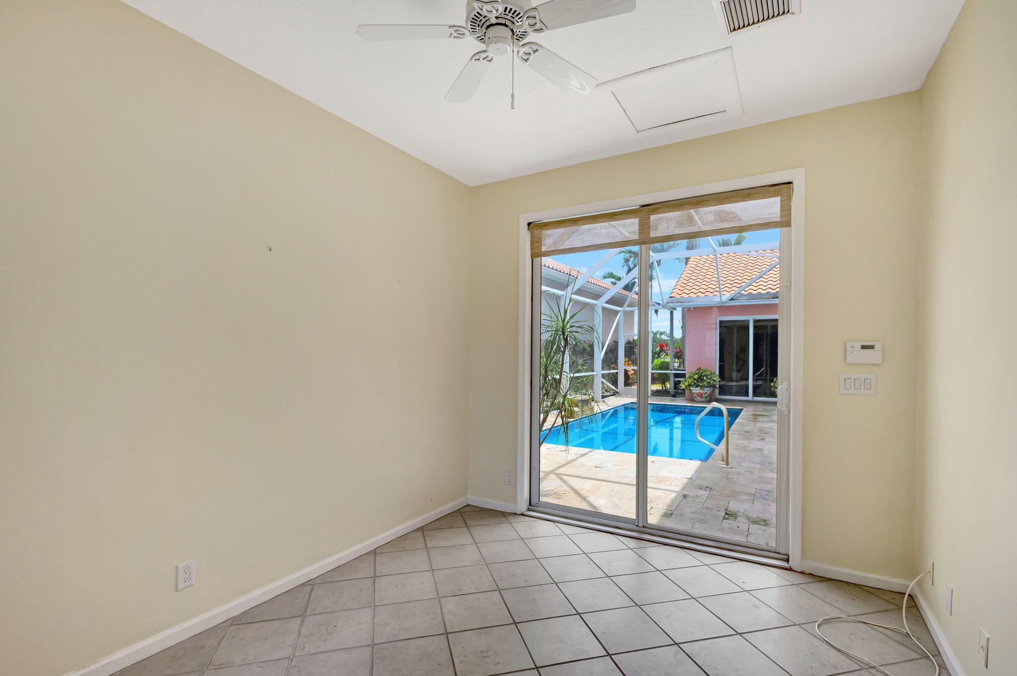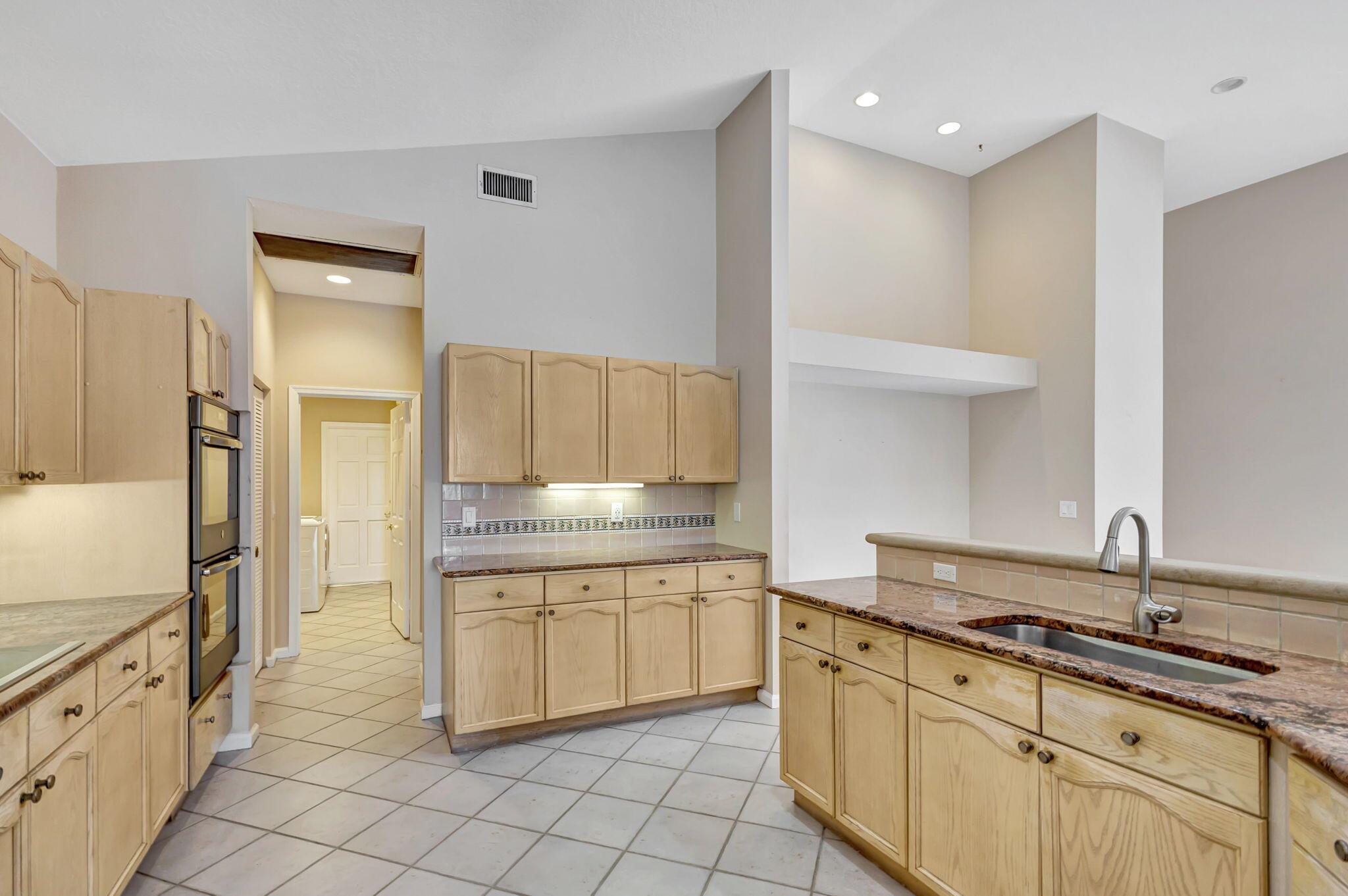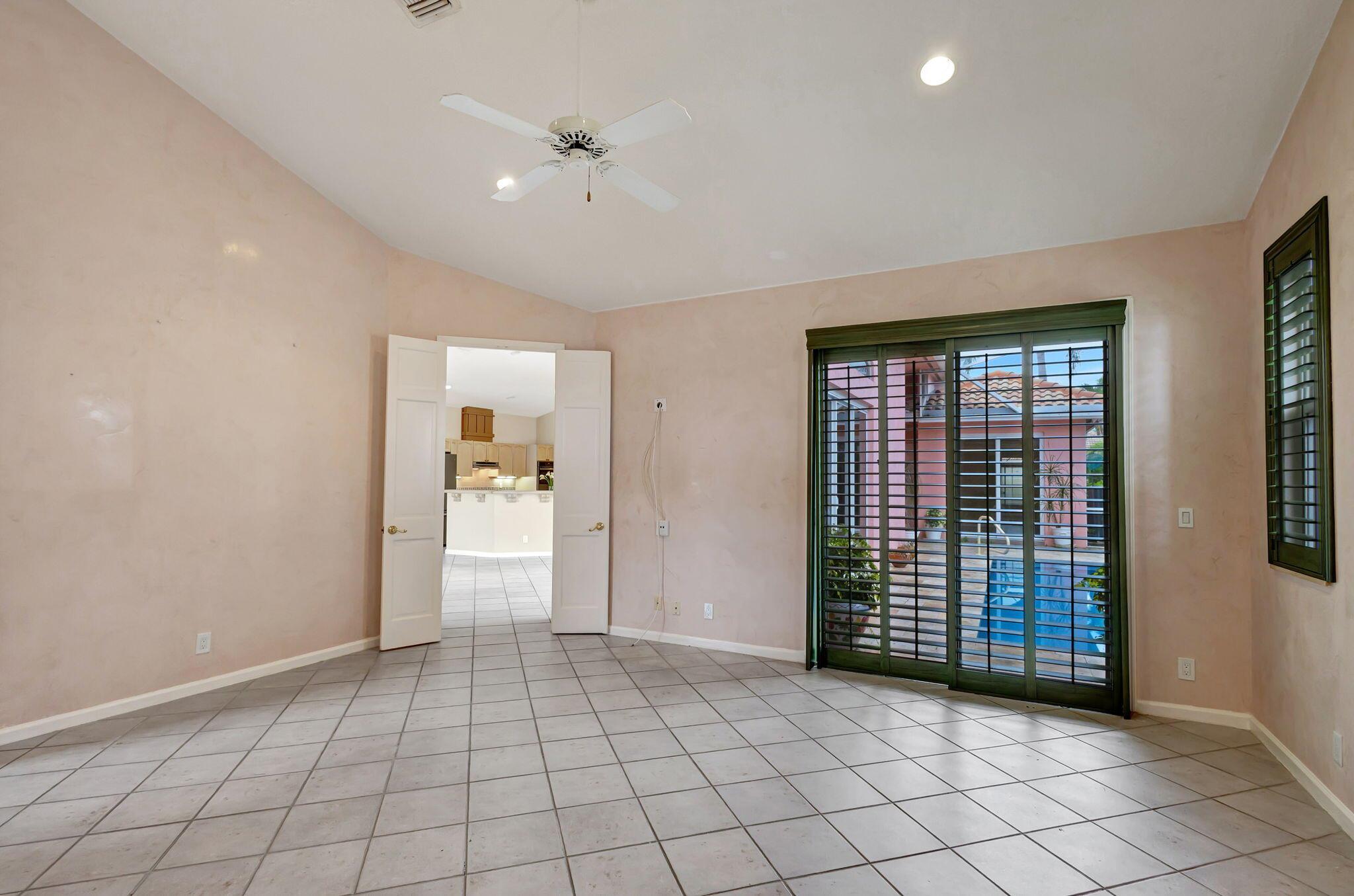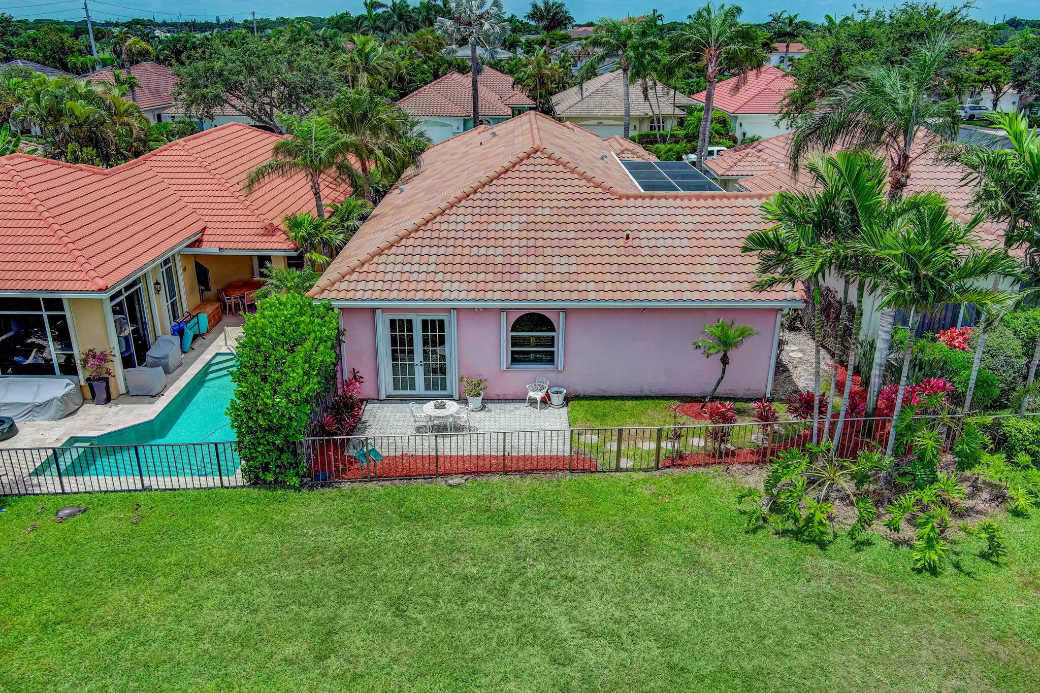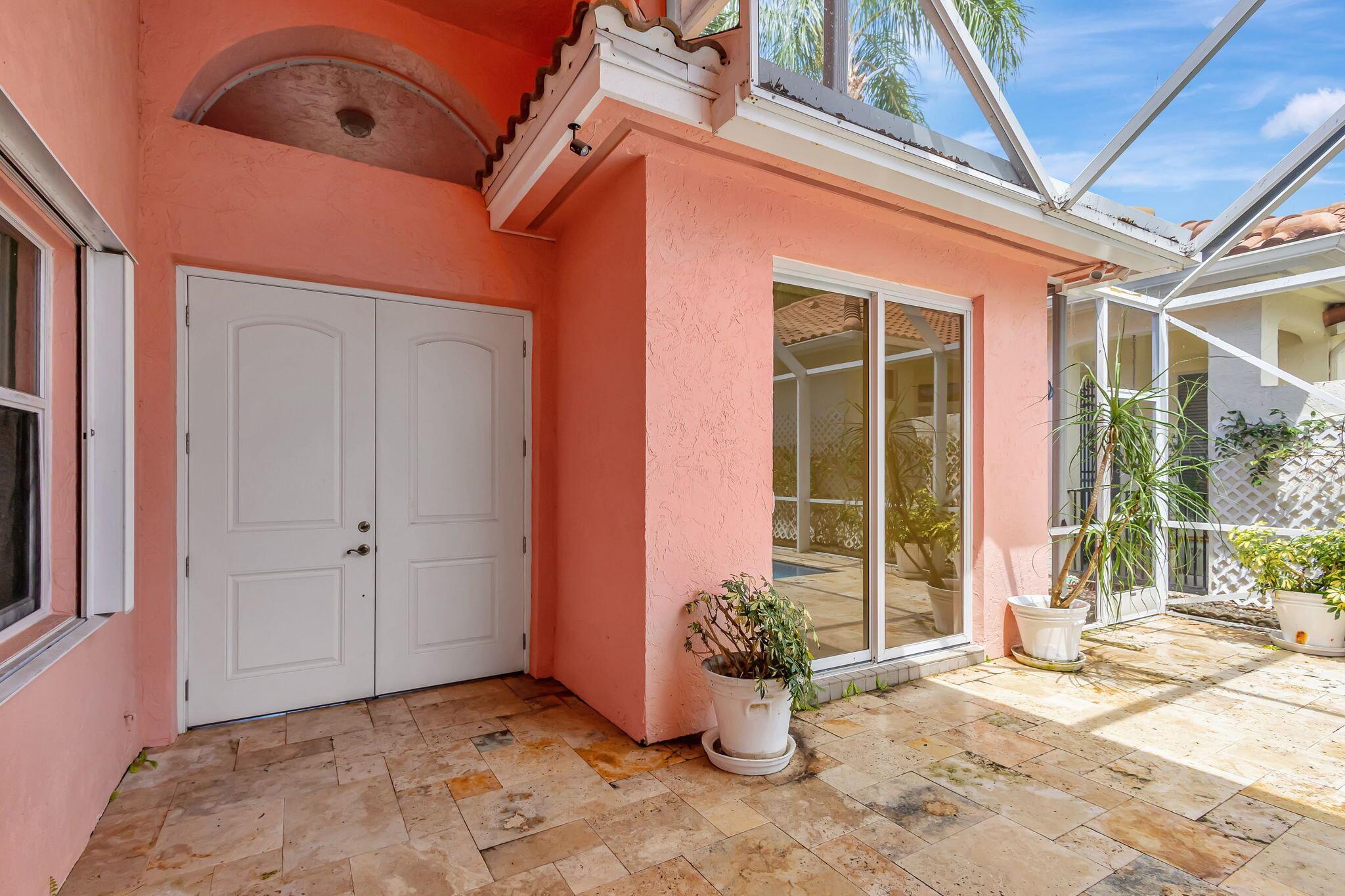 Welcome to this RARELY AVAILABLE courtyard home privately nestled in the exclusive enclave community of Regents Place. This single-story residence is situated on the 11th green of the Bear Lakes Country Club Lakes Course and offers 2 bedrooms and 2 full baths in the main house, 1 bedroom and 1 bath in the guest quarters, nearly 2,300 SF under air, all impact glass, renovated pool, travertine marble driveway and pool deck with sweeping lake and golf views! Spacious open floor plan has vaulted ceilings, tile throughout (no carpet!) built-in shelves with under cabinet lighting, French doors in the family room that lead out to the open patio to enjoy the spectacular views! Generous open kitchen has an abundance of cabinets, granite counter tops, tile backsplash, built-in cooktop