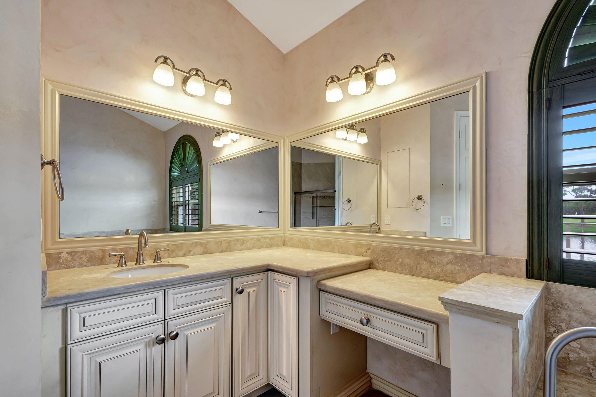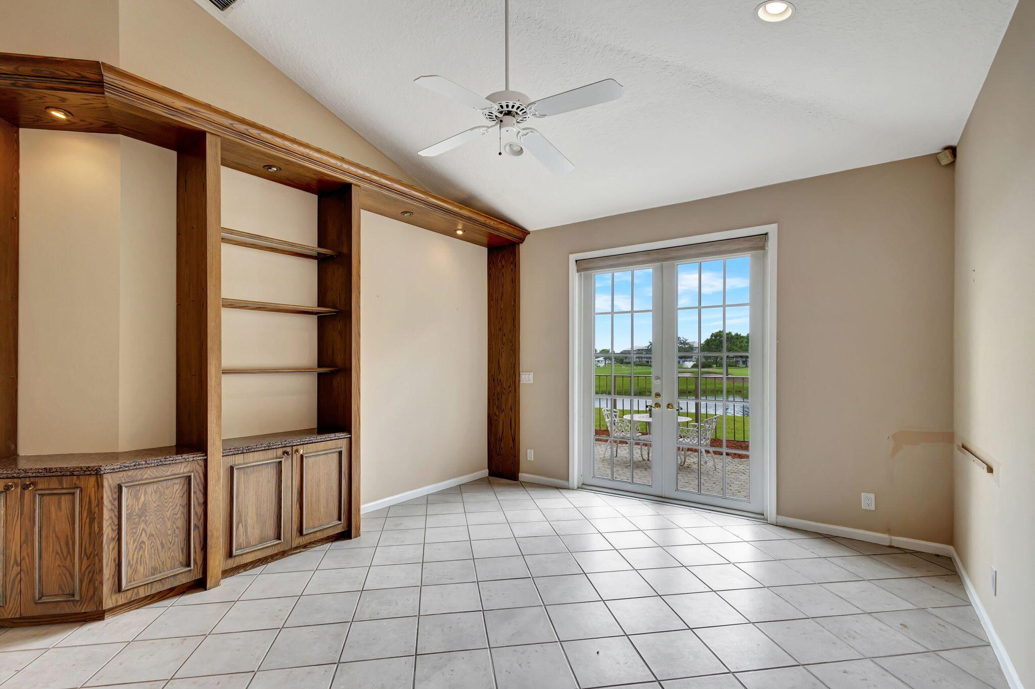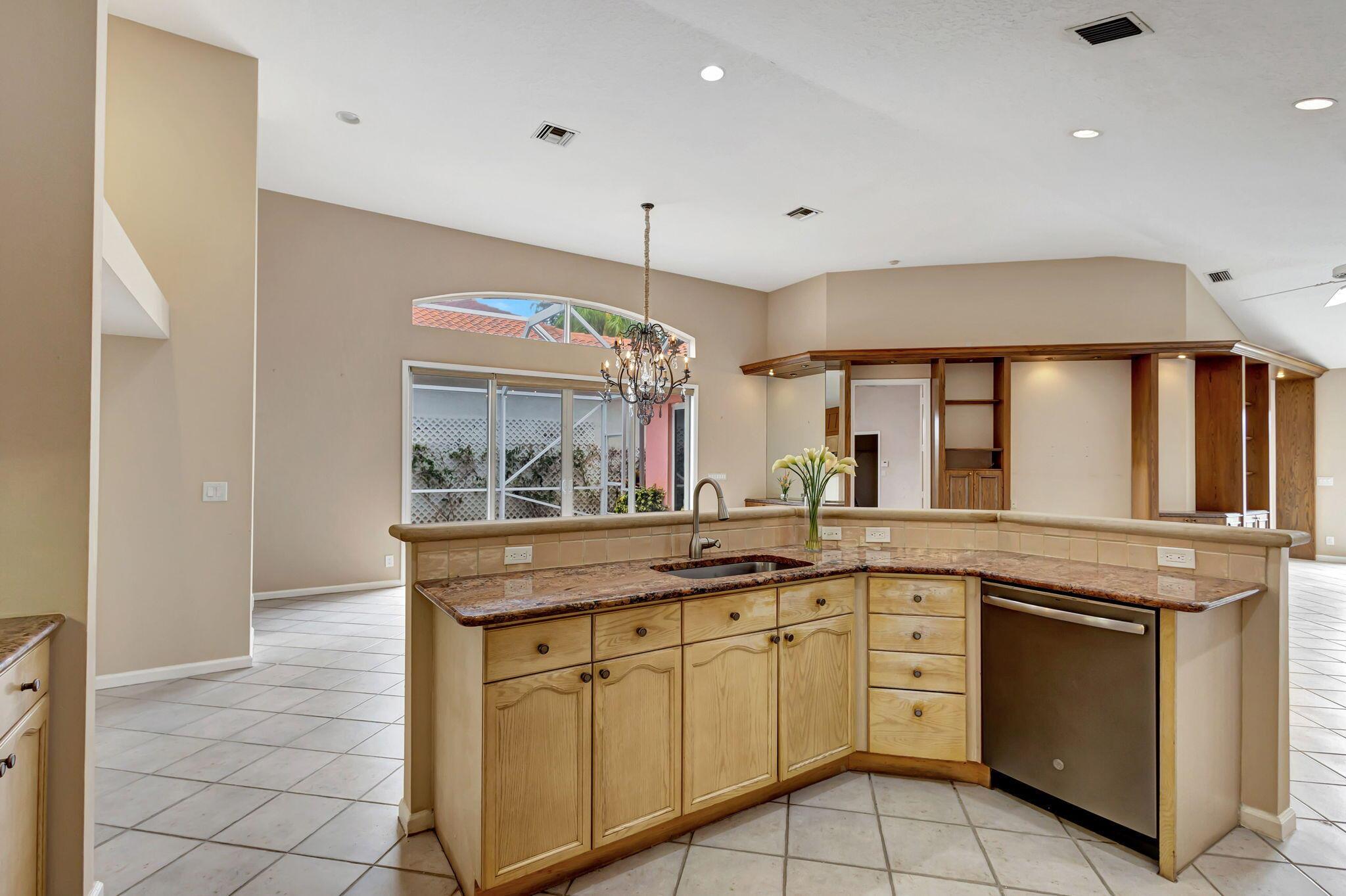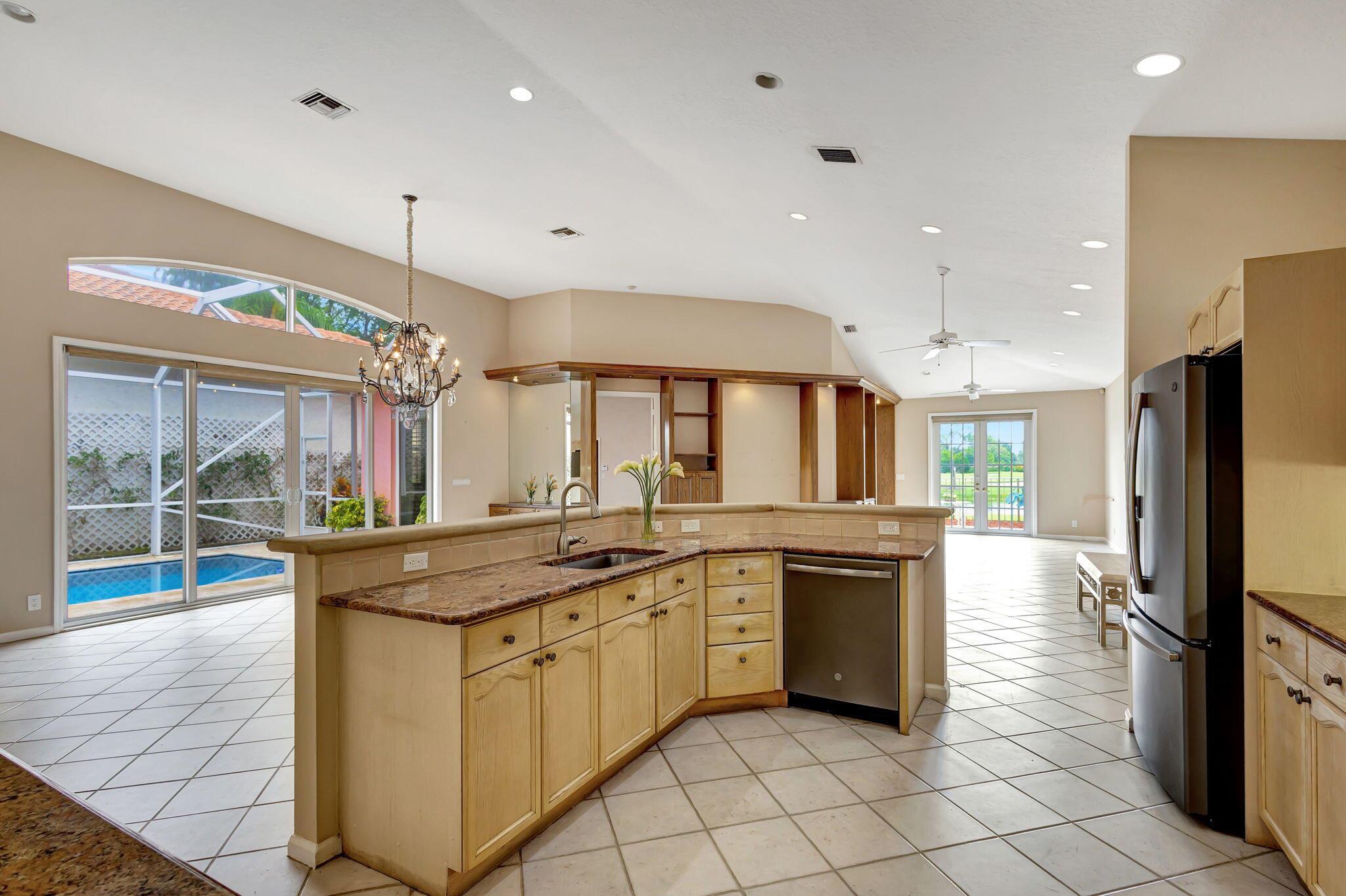 Welcome to this RARELY AVAILABLE courtyard home privately nestled in the exclusive enclave community of Regents Place. This single-story residence is situated on the 11th green of the Bear Lakes Country Club Lakes Course and offers 2 bedrooms and 2 full baths in the main house, 1 bedroom and 1 bath in the guest quarters, nearly 2,300 SF under air, all impact glass, renovated pool, travertine marble driveway and pool deck with sweeping lake and golf views! Spacious open floor plan has vaulted ceilings, tile throughout (no carpet!) built-in shelves with under cabinet lighting, French doors in the family room that lead out to the open patio to enjoy the spectacular views! Generous open kitchen has an abundance of cabinets, granite counter tops, tile backsplash, built-in cooktop
