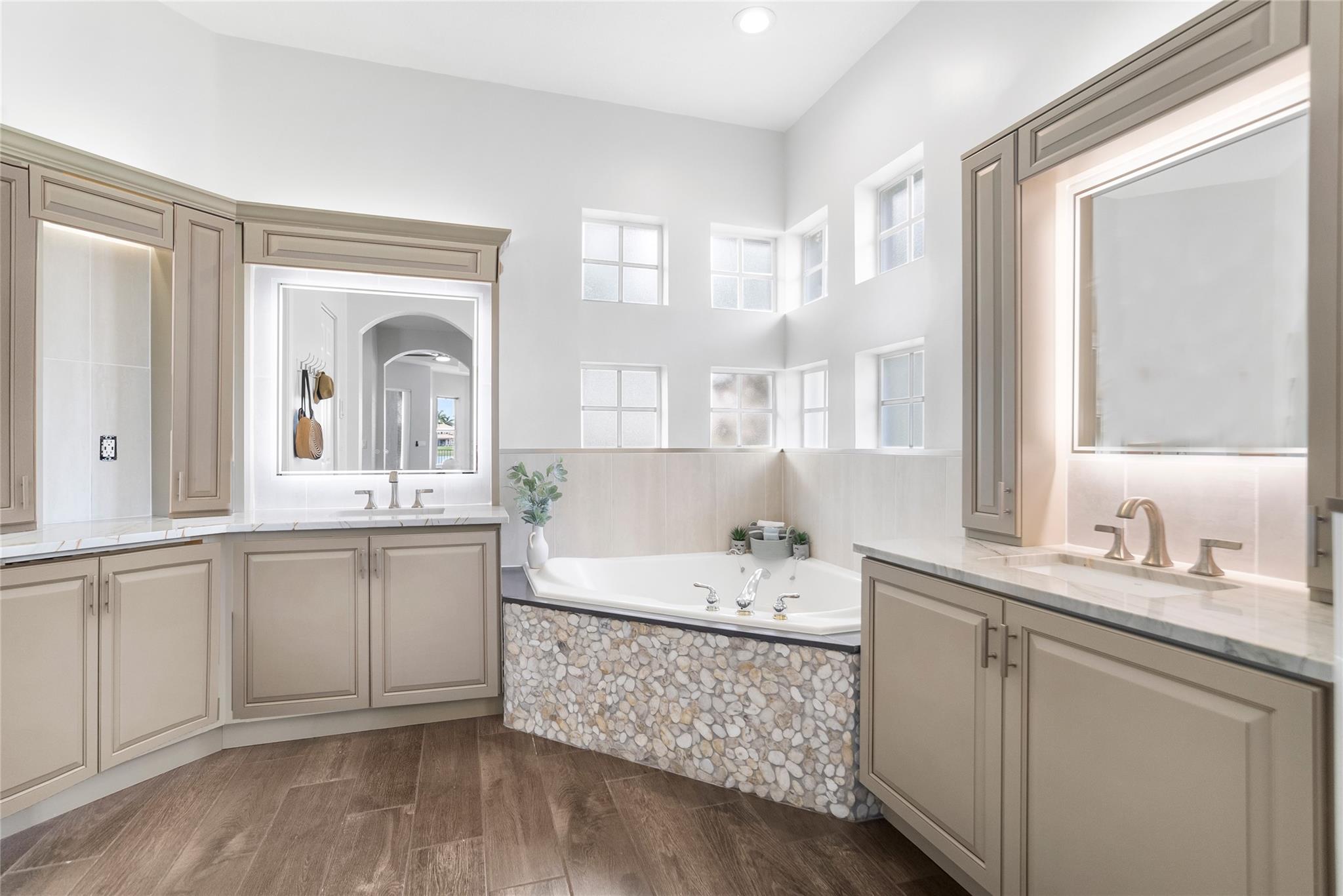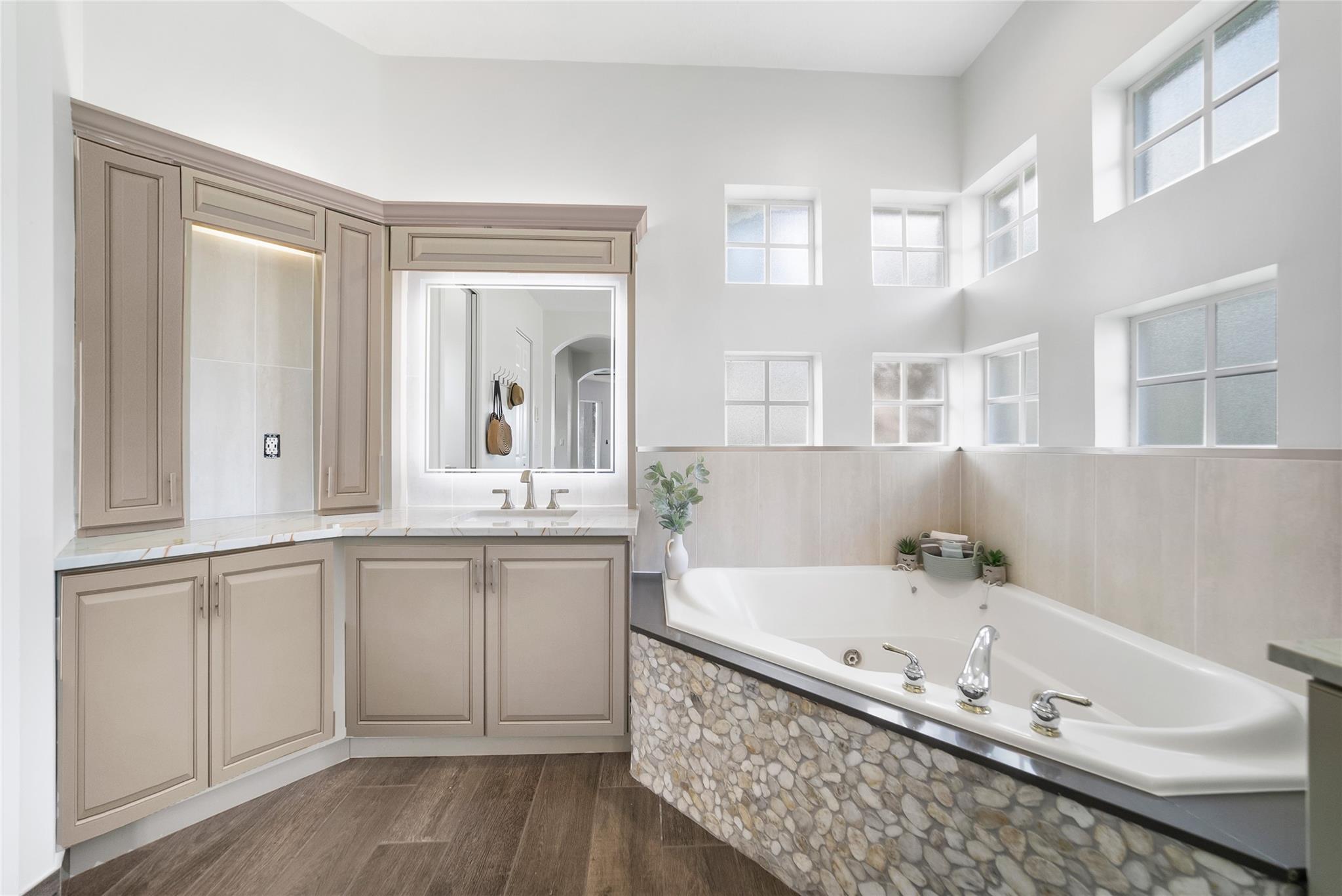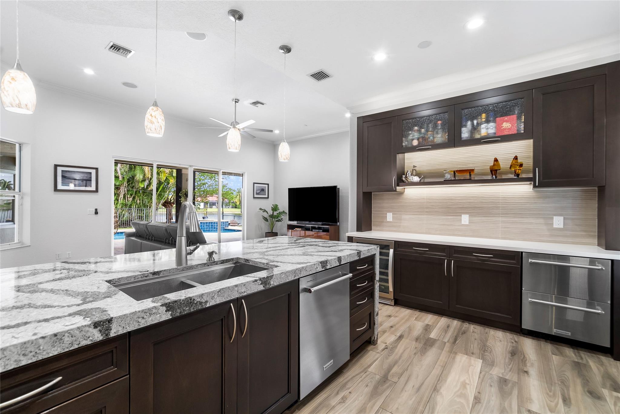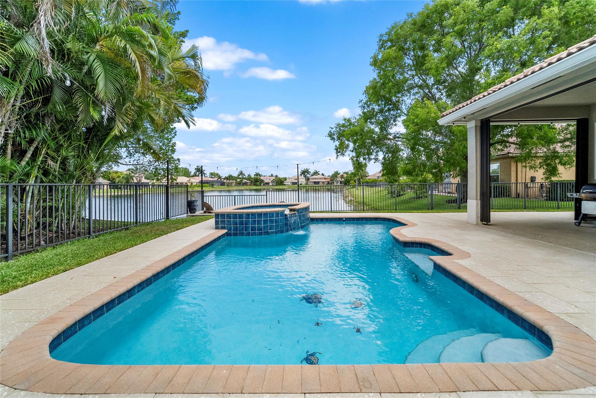 RARELY Available Parkland Isles 5 Beds, 3 Baths Waterfront Pool Home w/3-Car Garage In Bayside Estates Section! Updated Kitchen w/Quartz Counters, Waterfall Island, Stainless Steel Appliances, Wine Cooler, Updated Porcelain Tile In Family Room & Kitchen, Ceramic Tile In All Beds, Upgraded Primary Bath w/Separate Tub & Shower w/2 Shower Heads, Accordion Hurricane Shutters, Newer 2 A/C Units, & Water Heater. Salt-System, Heated Pool & Spa, Spacious Covered Patio Area Ideal For Entertaining, Fenced In-Yard w/Room For Your Family Including Your Dogs! Beautiful Waterfront Views, Low HOA Dues Includes Comcast High-Speed Internet, Basic Cable & ADT Alarm System & Resort Style Amenities w/Clubhouse, Pool, Fitness Center, Tennis, Basketball, 24-Hour Guard Gated, All 3 A+ Schools Border Community!