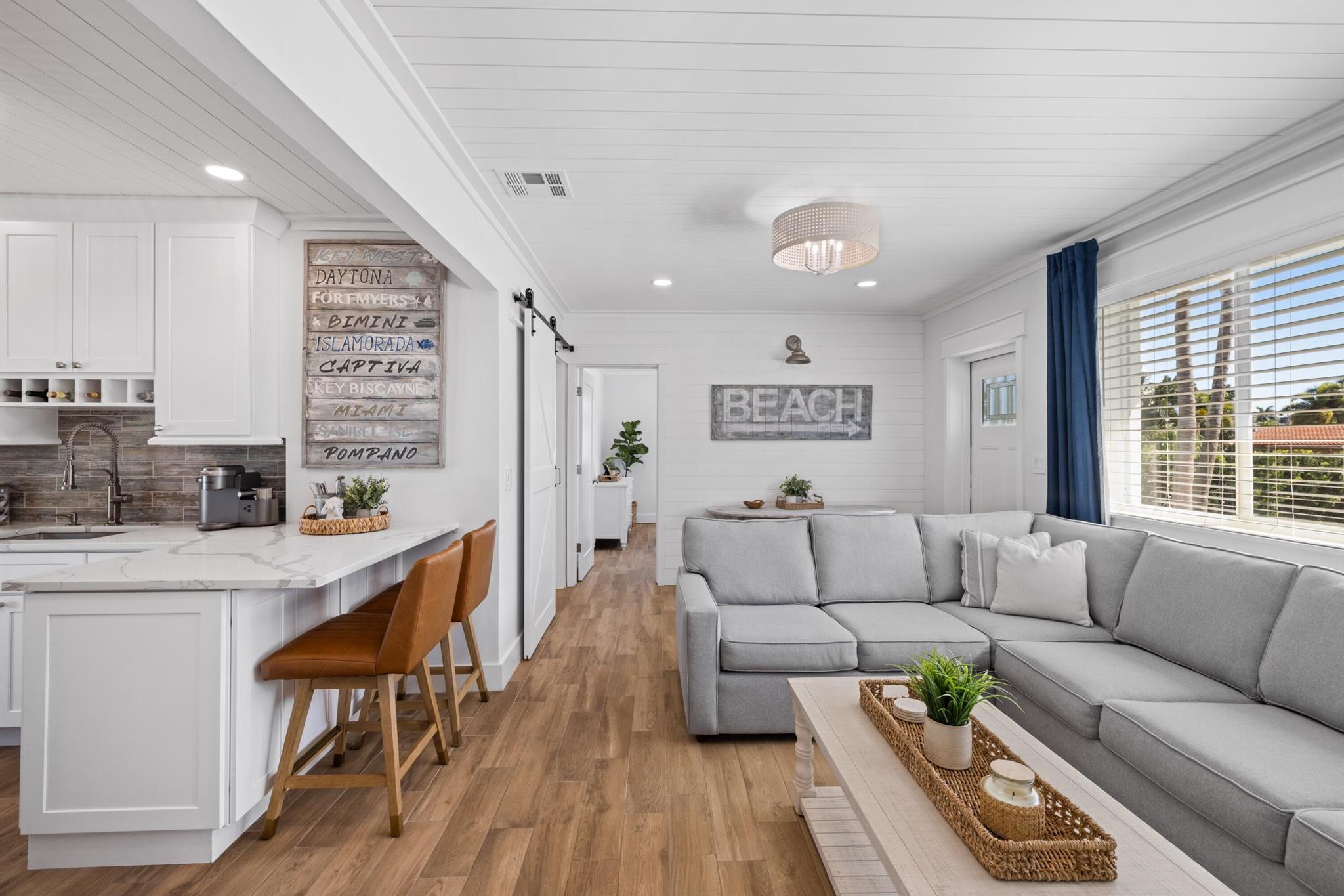 Discover the perfect blend of luxury and coastal living in this exquisite 3-bedroom, 2-bathroom oasis in sought-after Pompano Beach. The bright, open floor plan welcomes you with a modern kitchen, complete with stainless steel appliances, quartz countertops, and elegant white cabinetry. The primary bedroom features an ensuite bath with double vanities and a custom mosaic-tiled shower. Every inch of this home has been beautifully renovated. Outside, the tranquil outdoor space, enclosed by privacy fencing, offers relaxation and potential for a pool. With no HOA restrictions, this property is ideal for investors, winter retreat seekers, or those looking for their forever home. Nestled near waterfront dining and pristine beaches, this residence epitomizes the perfect coastal lifestyle.