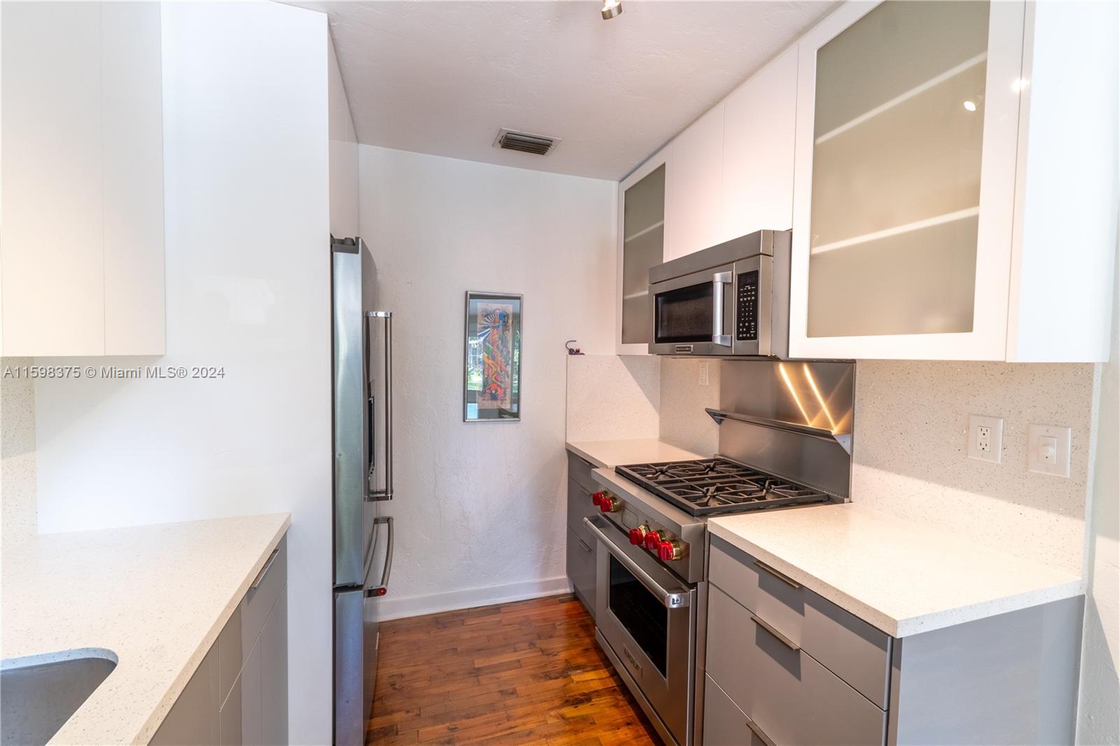 Stunning 4/3 single family pool home boasting 3 renovated full bathrooms, and a renovated kitchen featuring stainless steel appliances, a Wolf gas stove, and a stainless farmhouse sink. A new semi-circular driveway with full-sized authentic street lamp and an EV charging station. Original hardwood floors. Marble bathrooms and a laundry nook. A tankless gas water heater. A privately fenced backyard hiding a pool surrounded by lush landscaping. Impact windows and doors. An energy efficient 2020 barrel tile roof. Central air conditioning. This beautiful home is on a quiet tree lined street minutes away from everything. Embrace the South Florida lifestyle with beaches less than 3 miles away, or shops, restaurants, casinos, and malls, all with easy transit access just moments from home.