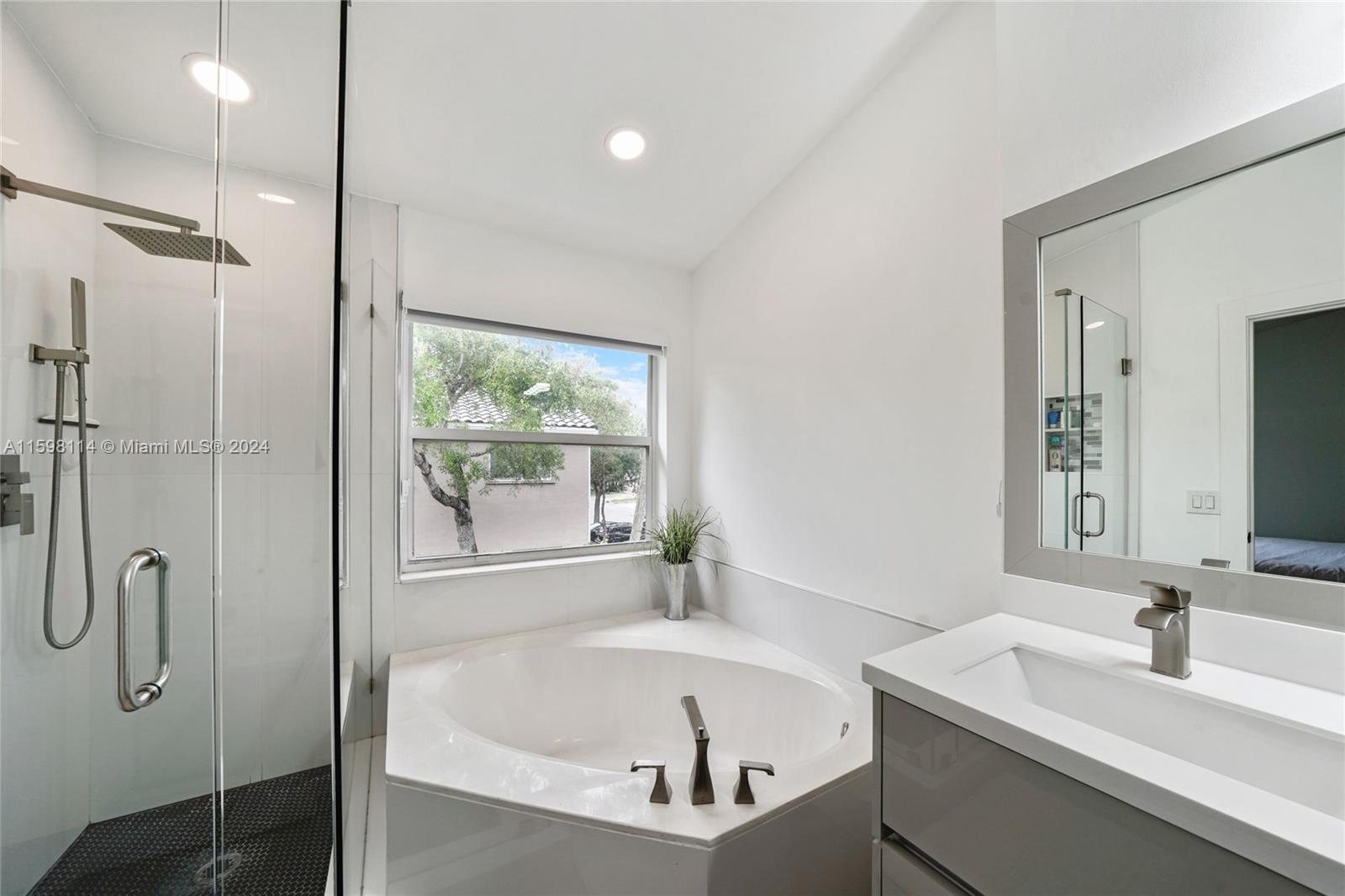 Beautifully remodeled townhouse in mint condition at Plantation Trace. 3 bedrooms and 2.5 baths, with tile floors on the first floor and laminate on the second. The open concept kitchen, living, and dining area is perfect for entertaining. The large master bedroom features walk-in closets, a seating area, with a soaking tub and step-in shower. Roomy guest bedrooms have ample closet space. laundry room, storage, and a one-car garage with a driveway for two cars. The HOA maintains lawn service. An outdoor patio is ideal for grilling and family gatherings. Amenities include the community pool and children’s playground. Excellent school district, the home is moments from Sawgrass Mills Mall and major highways. A new roof was installed on March 8, 2024, new asphalt pavement coming August 2024