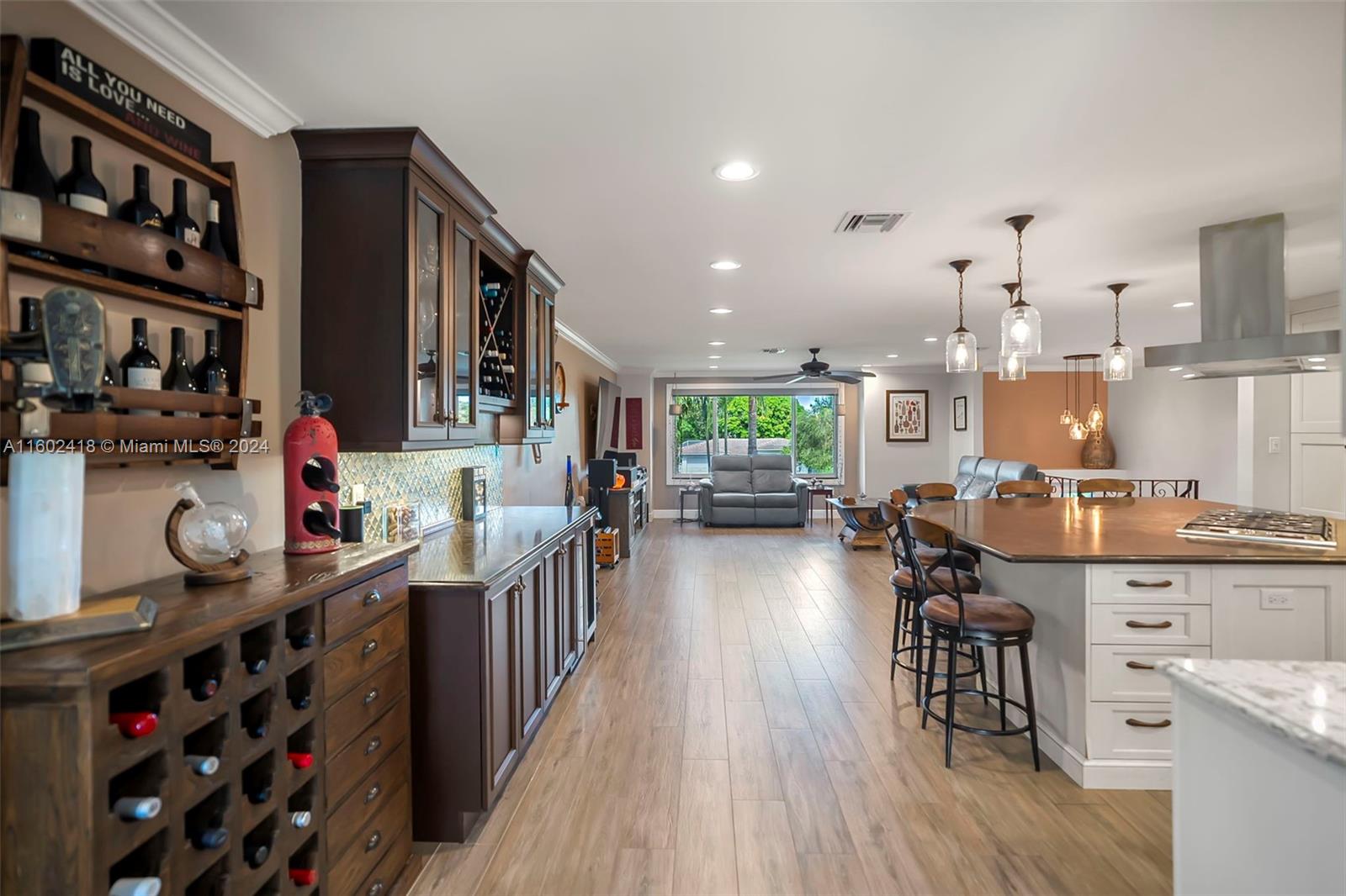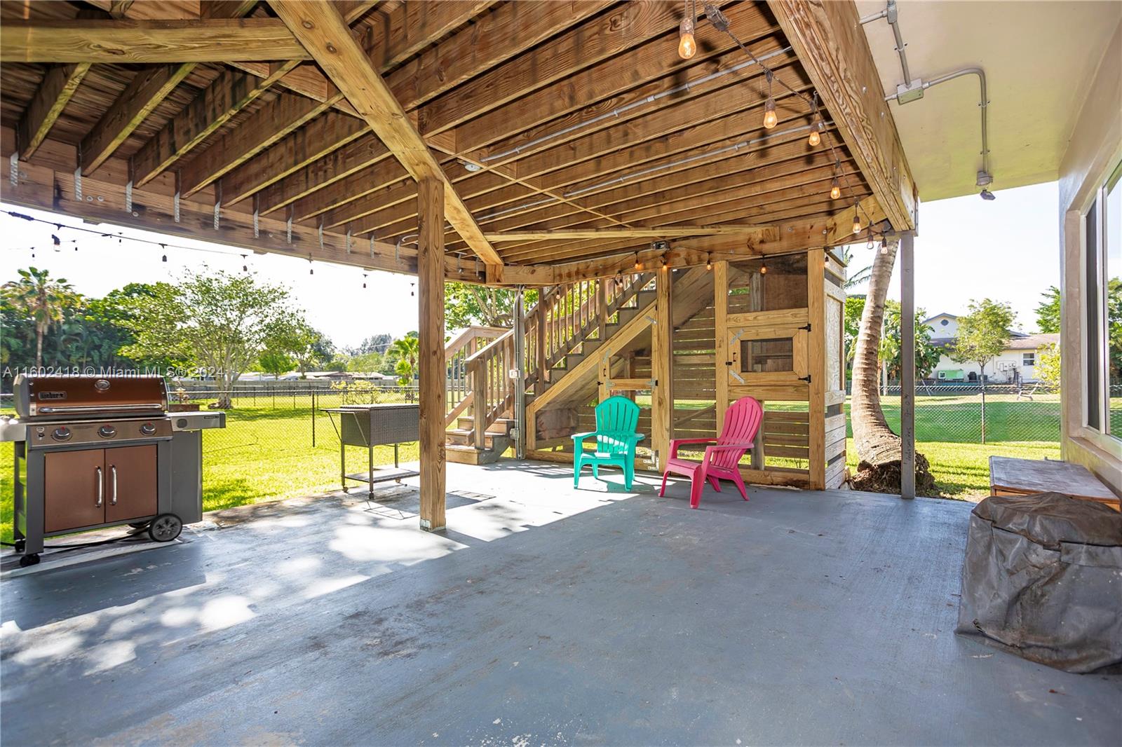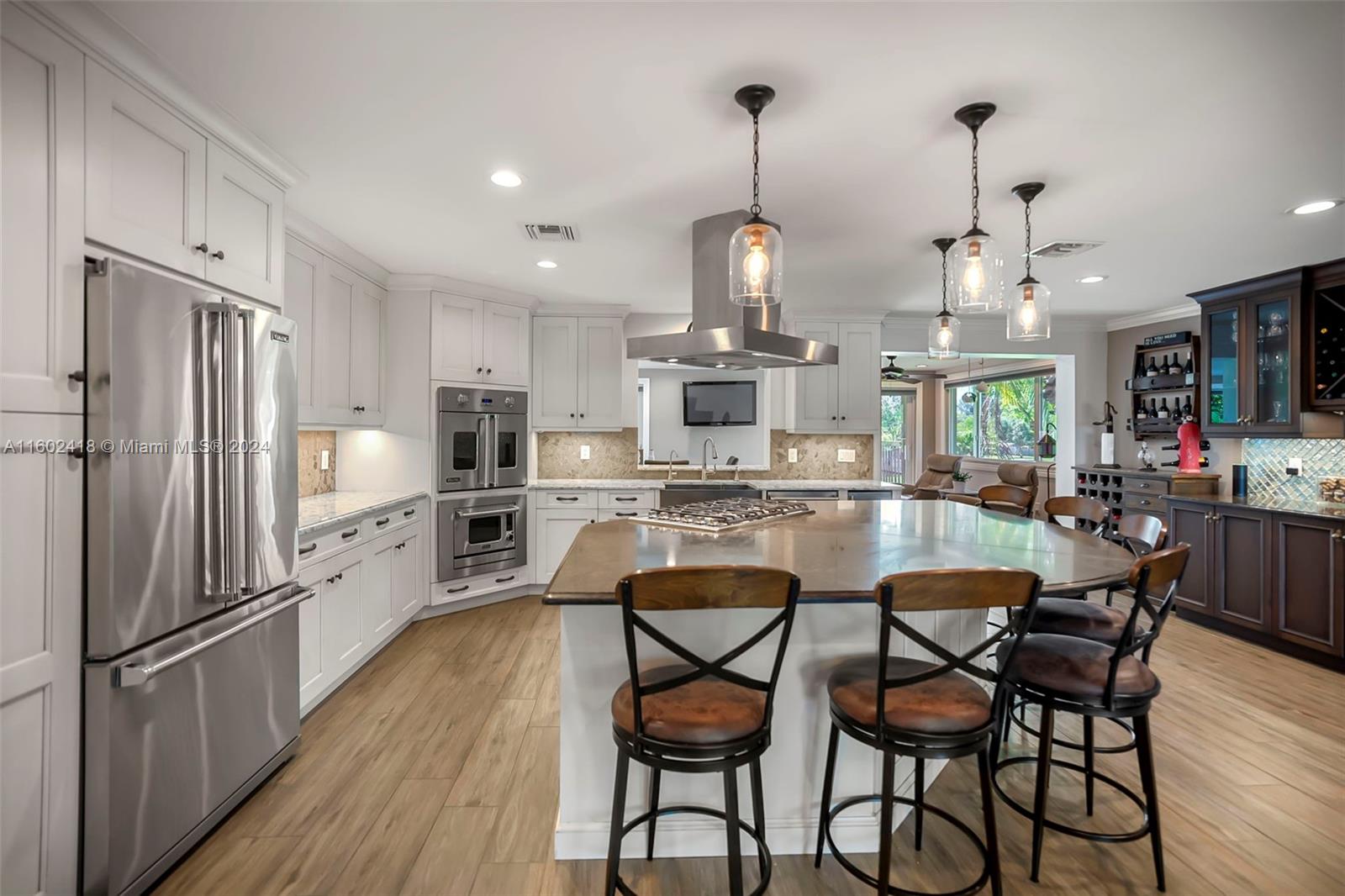 BRAND NEW ROOF COMING SOON!! Welcome to this stunning 5-bedroom, 3-bath home on FULL ACRE in Davie with No HOA! The main level includes a primary suite, 2 bedrooms, 2 baths, and an open-concept kitchen with quartz countertops, Viking appliances, and a wine bar. The lower level offers 2 bedrooms, 1 bath, a living room, game room, and storage. Features include new wood-look tile floors, all impact windows and doors, 2 new AC units, and new light fixtures and electric panels. The 1-acre lot boasts a fenced backyard, extended porch, rear patio, upper deck, 2 ½ car garage, concrete storage shed, and chicken coop. Modern amenities and fiber optic wiring throughout complete this serene home. Jacuzzi conveys!