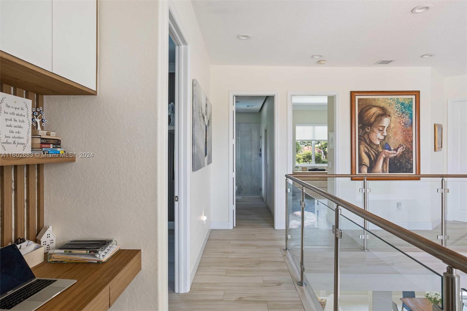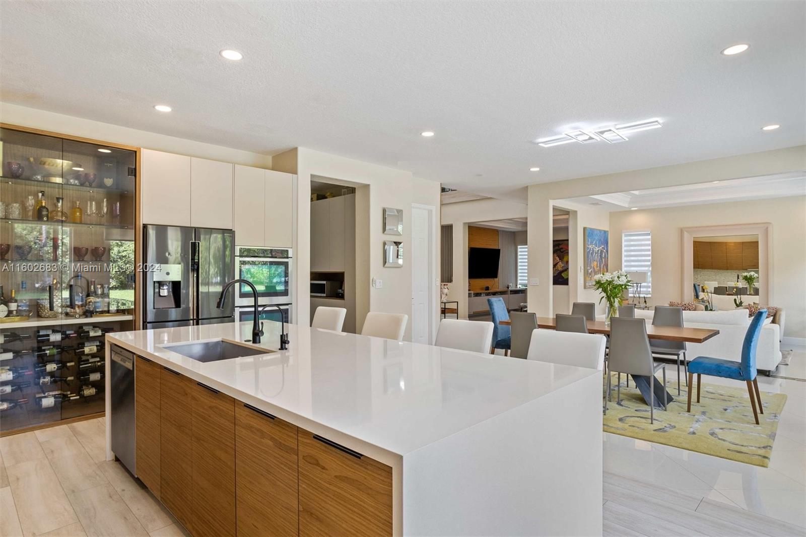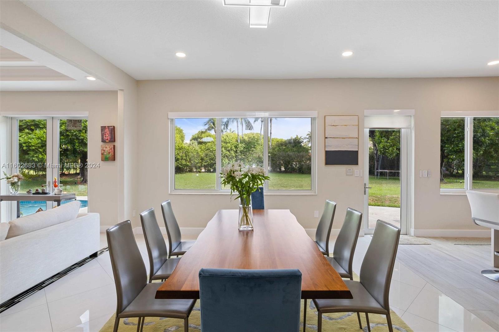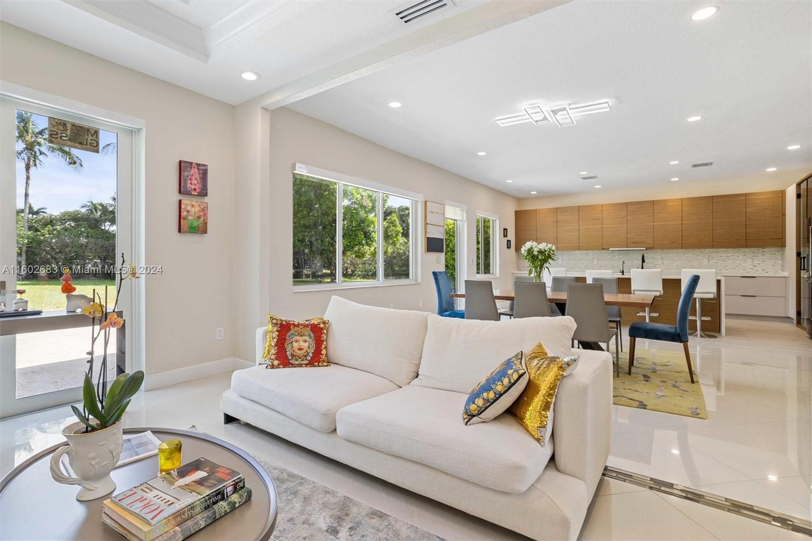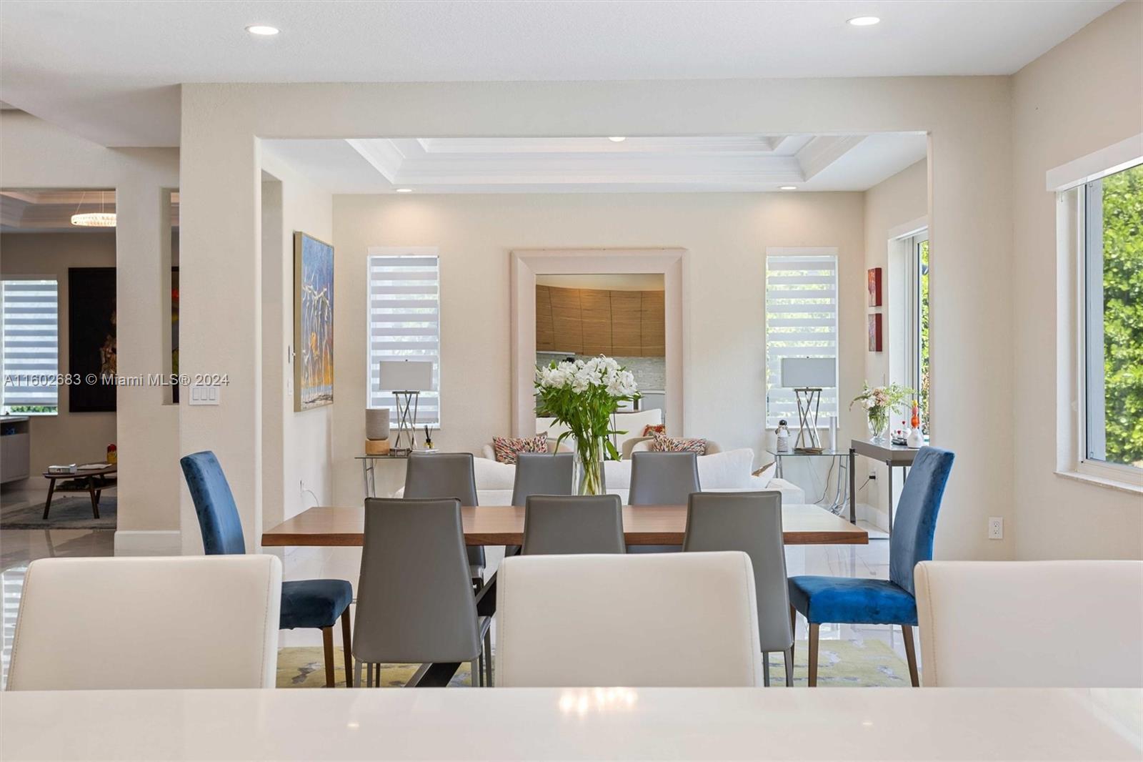 Luxury home in Doral Isles, 3,684 square feet that combines elegance and functionality. 6 bedrooms, including a maid's room, and 4.5 bathrooms, offering comfort and space for the entire family. The ground floor boasts a grand family room and a dining area, creating a perfect space for entertaining and daily living. The kitchen is a showstopper, modern and equipped with top-quality finishes and high-end appliances. Hurricane-resistant windows, Luxurious light fixtures will remain in the property. The master suite includes a large sitting area, extensive closets, and ample storage. The expansive backyard includes a heated saltwater pool and a jacuzzi. The garage accommodates two vehicles, with outdoor space for four additional vehicles, ensuring ample parking for guests and family alike.
