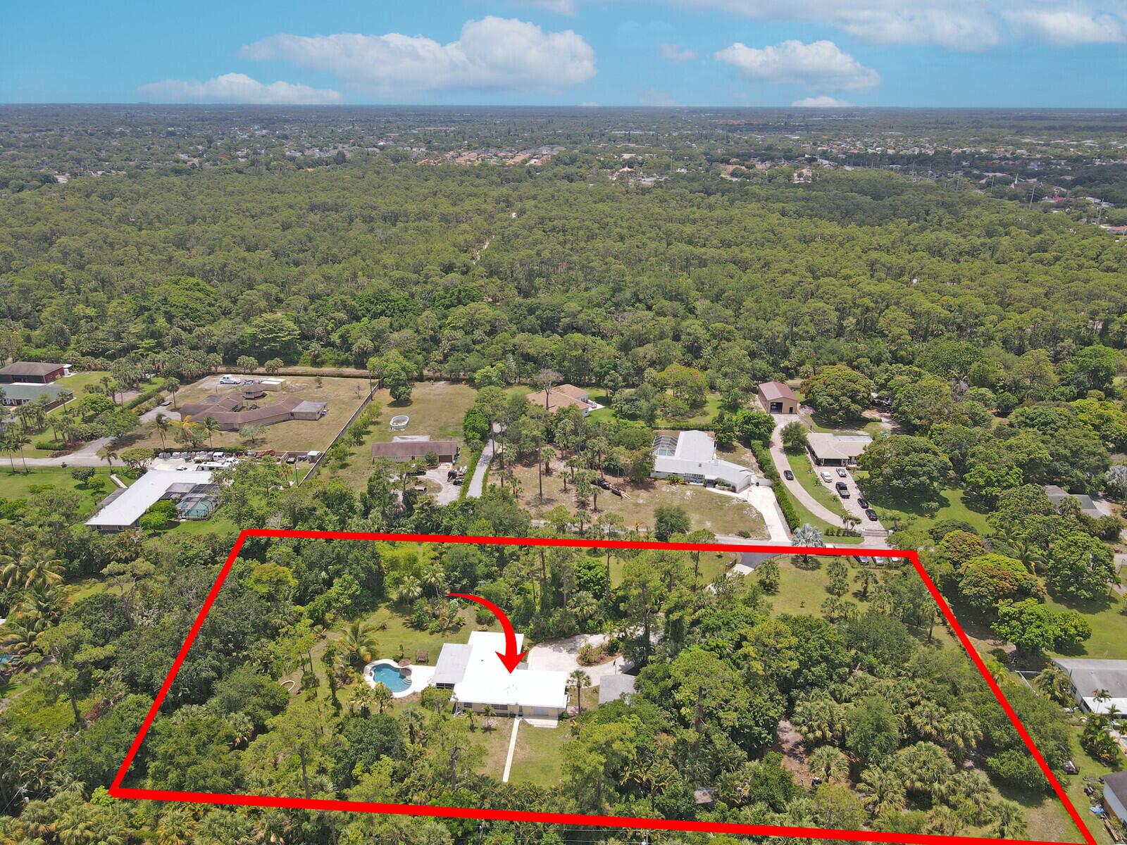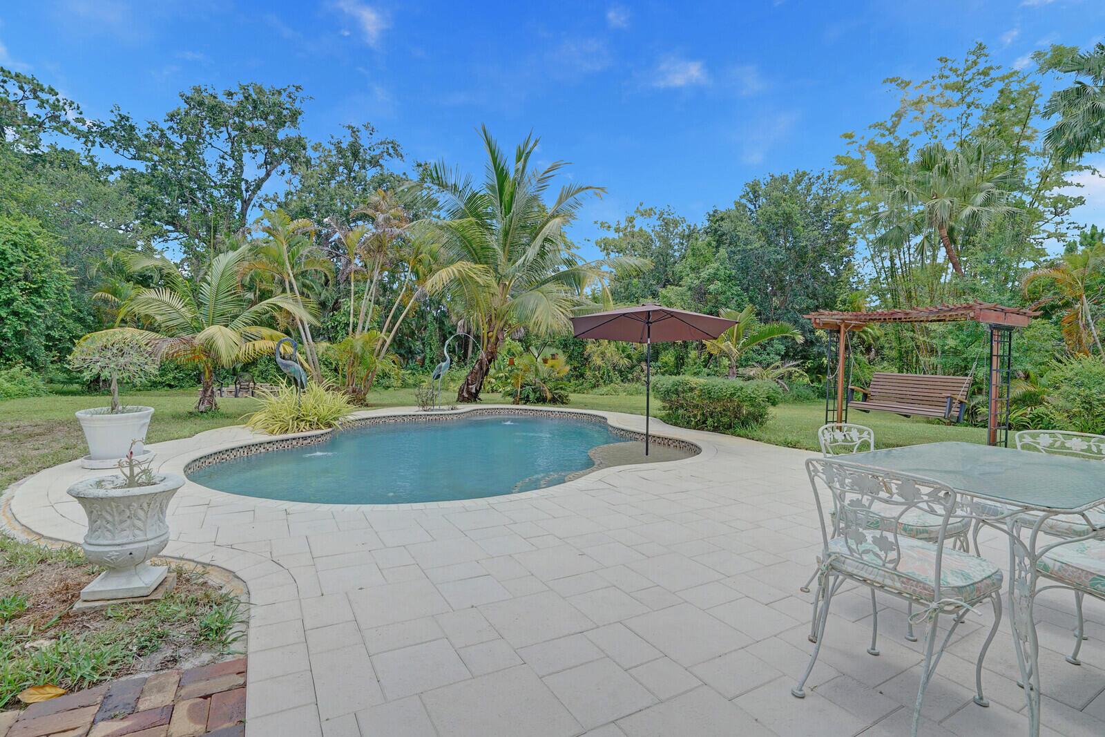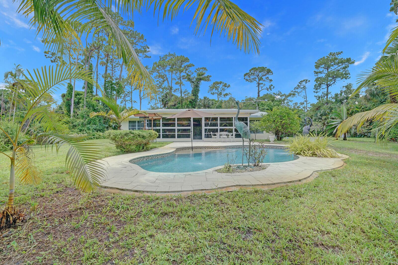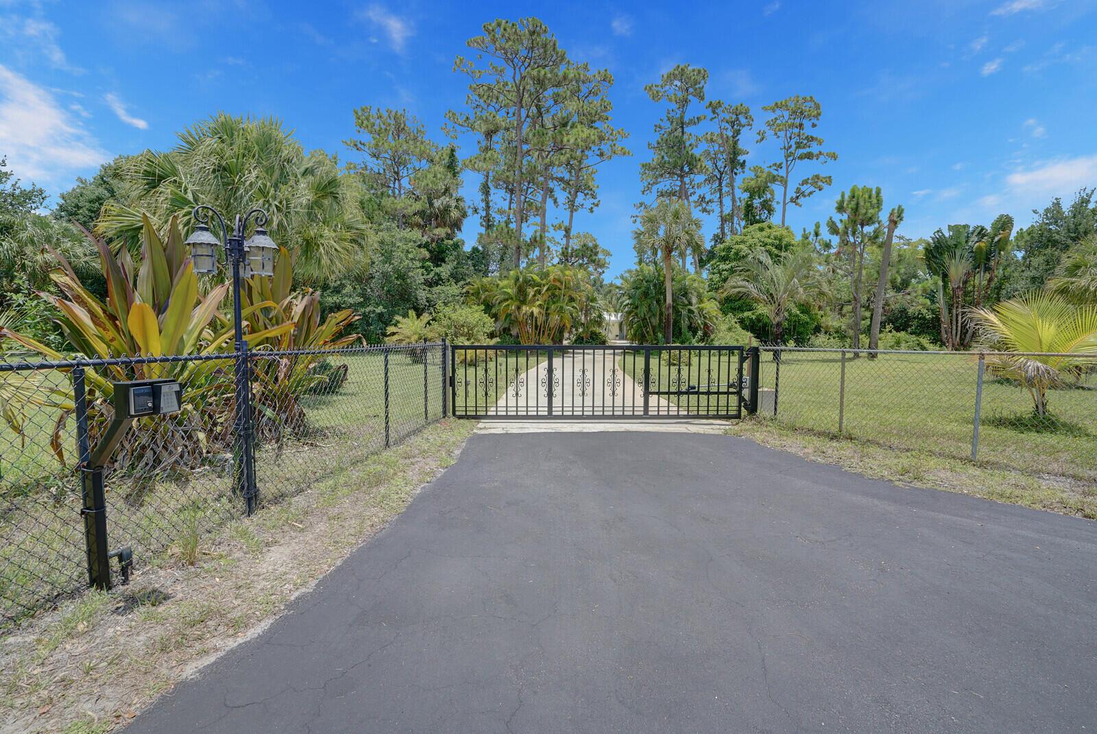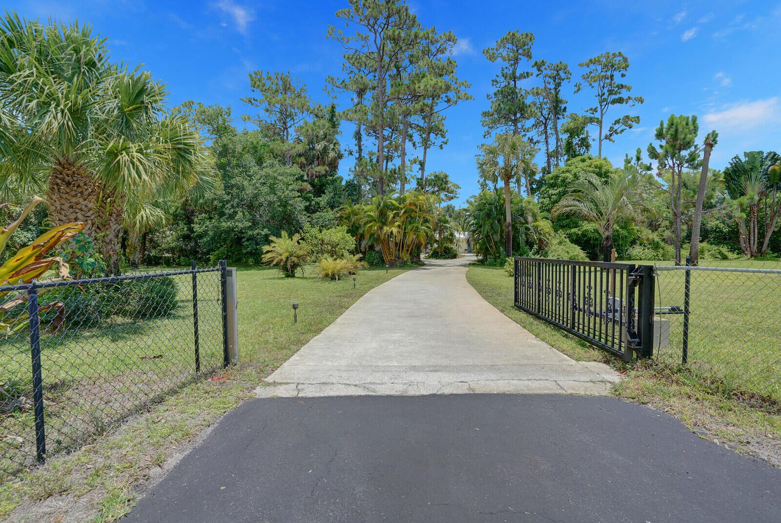 Rarely Seen in Our Area! 3BR/2BA Single Family Home on 3+ Acres of Private Land in West Palm Beach! This gated oasis-situated at the end of a private road-boasts 1990 Sq Ft under air. Split bedroom floor plan. Large, glass-enclosed florida room w/views out to resort-style pool area. In addition to the home's garage, property offers oversized, detached 2-car garage. Plenty of outdoor space for entertaining, including wonderful, varied greenspace full of palm & fruit trees. For weather emergencies home has complete set of hurricane panels & generator w/1000 gallon propane tank. Conveniently located between I95 & the Florida Turnpike for easy access to the area's great shopping, restaurants & ocean beaches. Come check out this unique opportunity to create your own slice of paradise!
