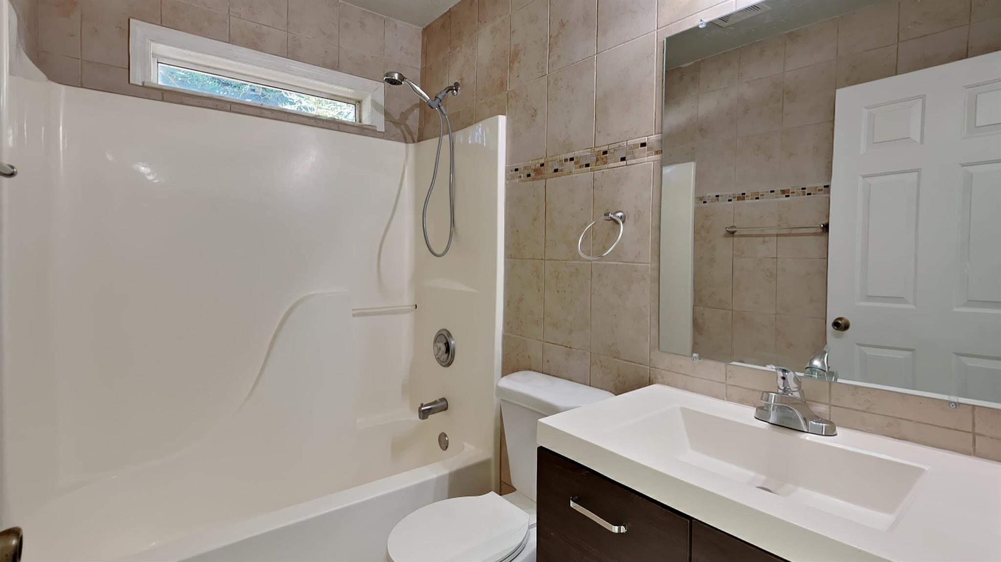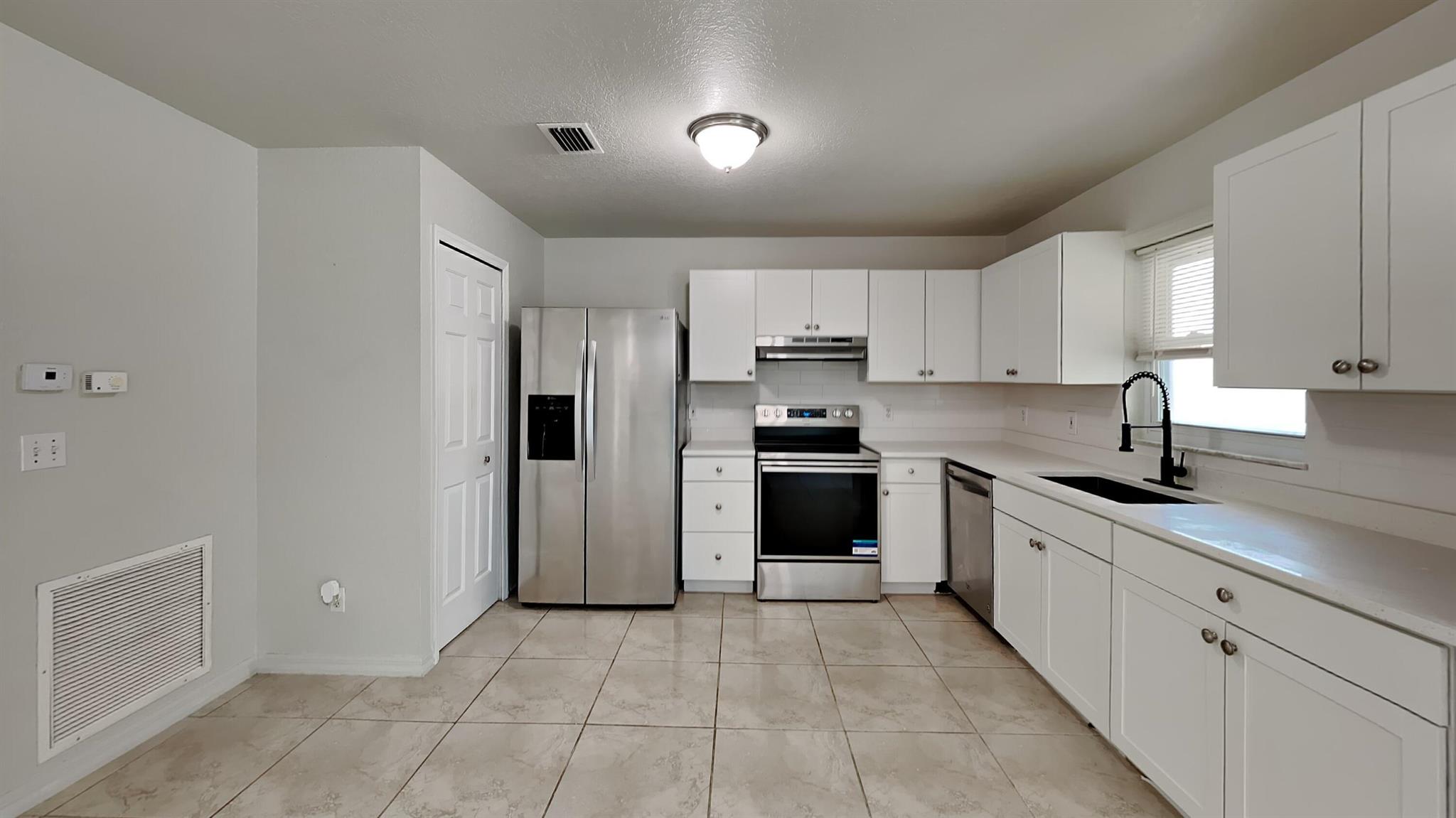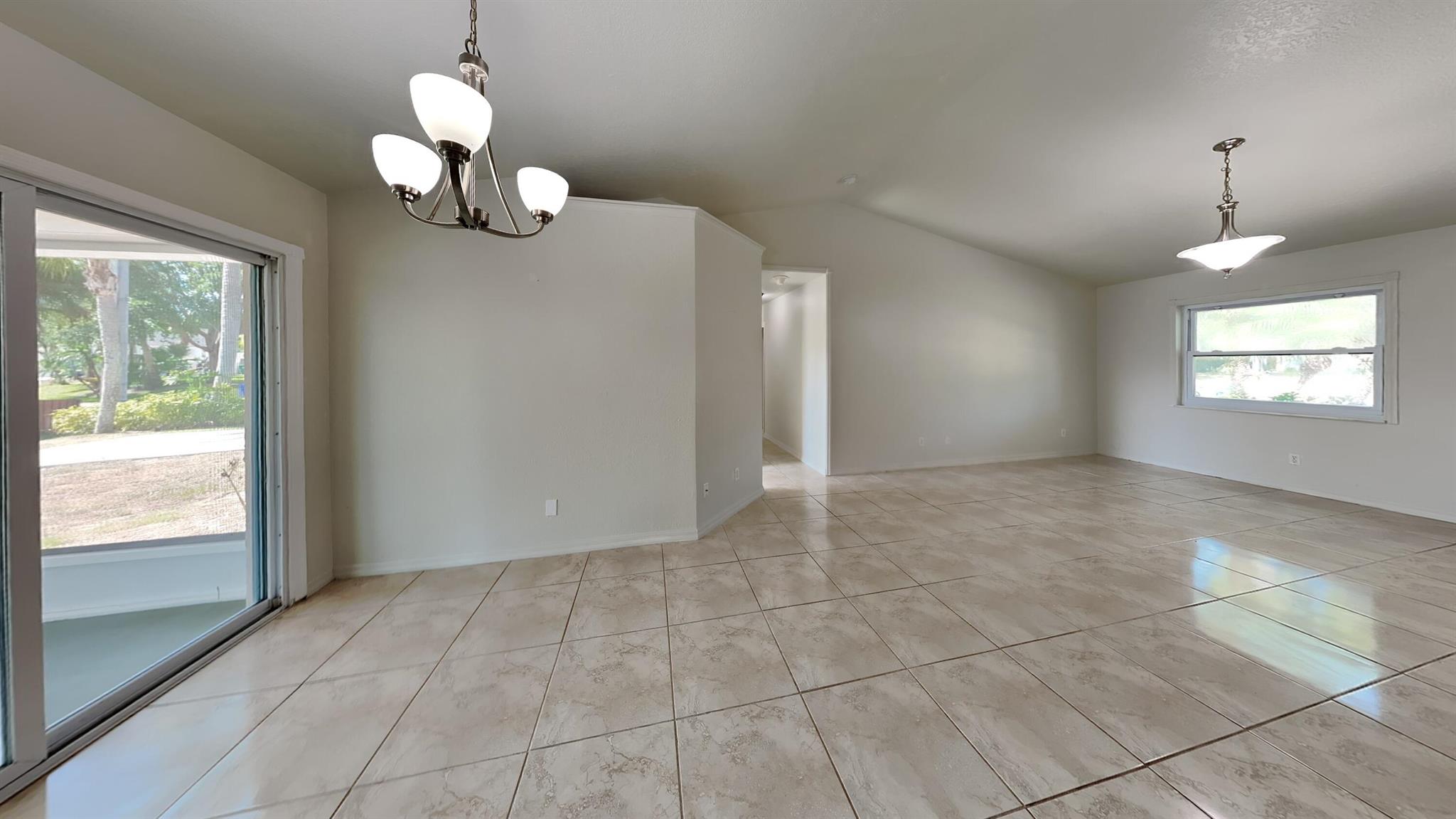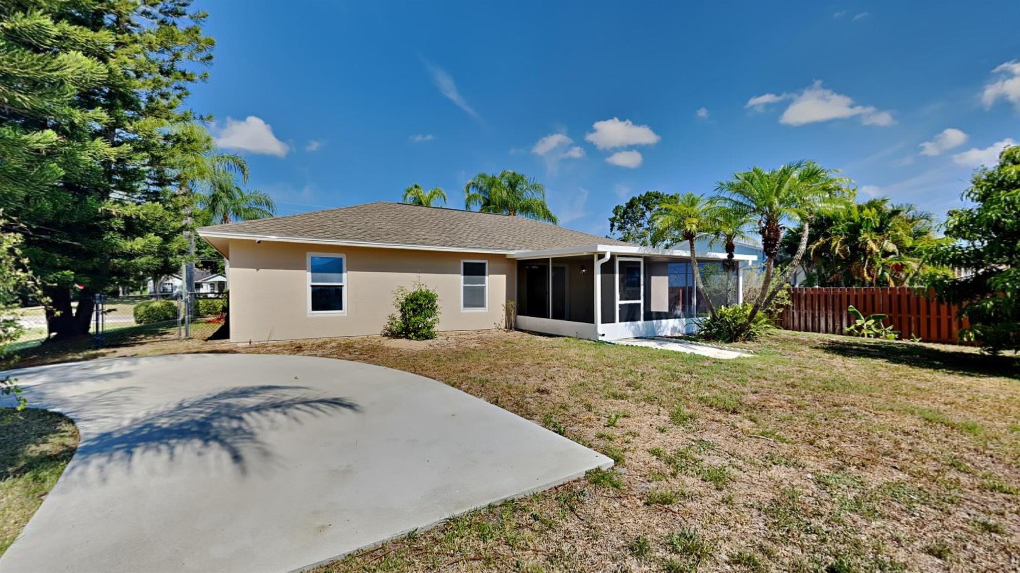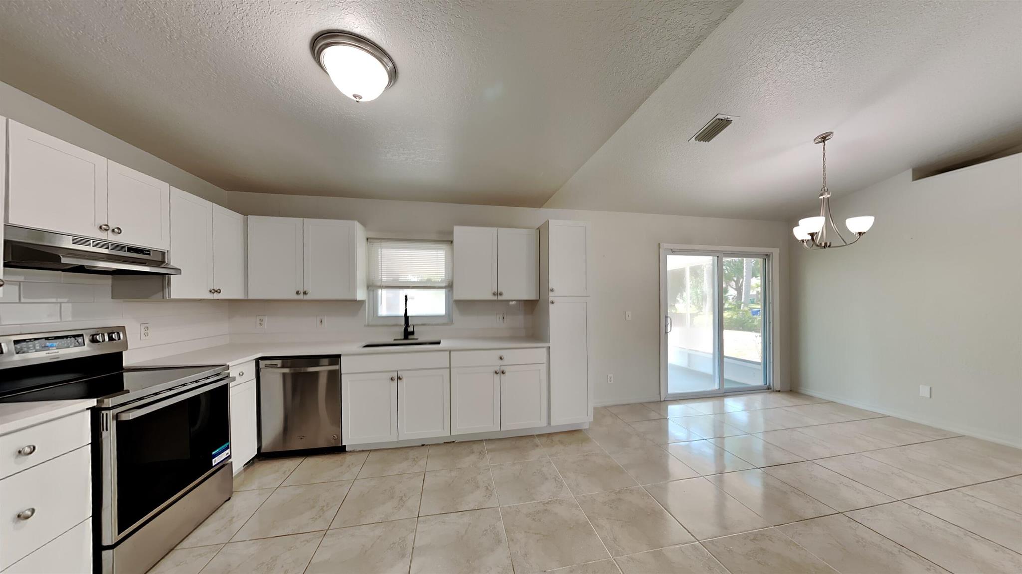 This charming three-bedroom, two-bathroom home boasts a bright and inviting kitchen equipped with sleek stainless steel appliances, perfect for culinary enthusiasts. Its open floor plan seamlessly integrates the kitchen with the spacious living and dining areas, enhanced by vaulted ceilings that create an airy and expansive ambiance. Natural light floods the interiors, accentuating the modern design elements throughout. Step outside onto the screened porch, offering a serene retreat to enjoy the surrounding greenery and gentle breezes, making it an ideal space for relaxation and entertainment alike.