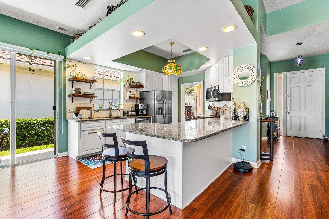 Welcome to your Divosta built home that truly offers South Florida living at its finest. Step inside to find the expansive open floor plan that flows seamlessly room to room while you enjoy the abundance of natural light & breathtaking views of your custom resort style pool & lake. This home is unique in that it has 4 bedrooms, an updated kitchen, newer floors & high ceilings. These are just a few of the many reasons you will want to call this place home. As if that wasn't enough, the amenities in the community are unmatched including an on site restaurant, fitness center, tennis courts & clubhouse w/ an activities director. This home & community have it all! Centrally located to shops, restaurants, highways, beaches, downtown & more. Call today & schedule your showing!