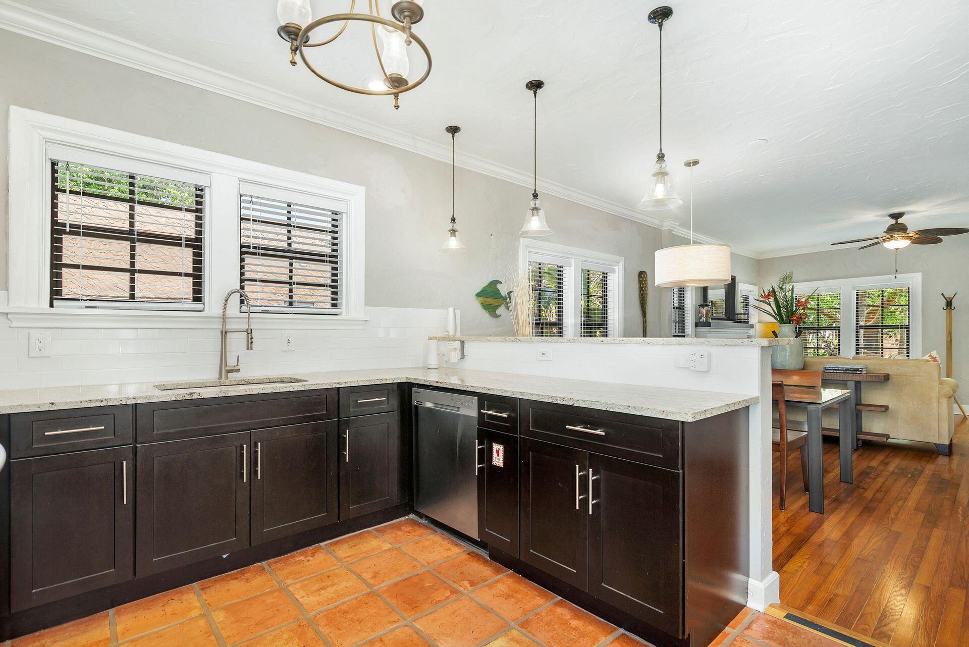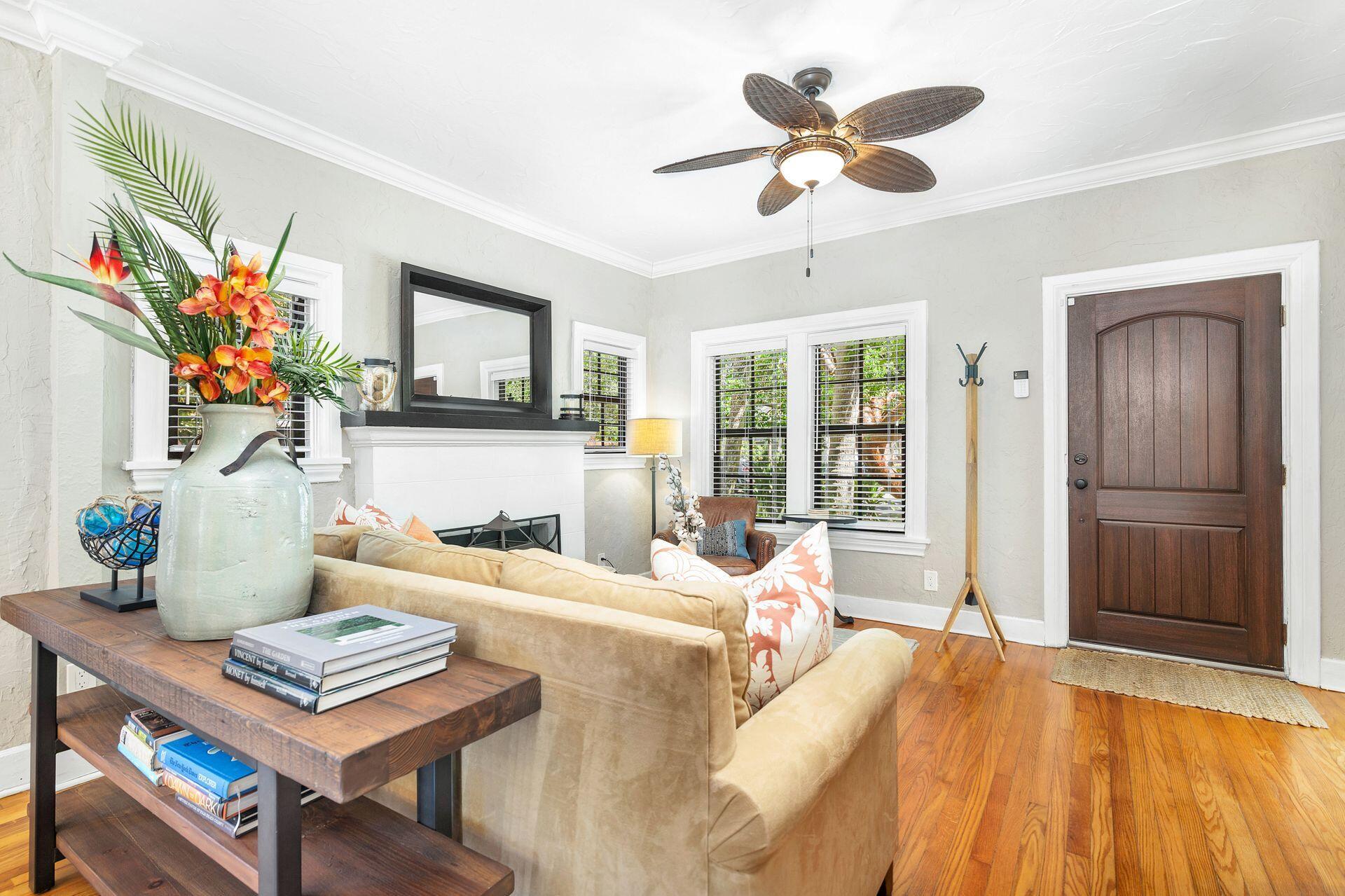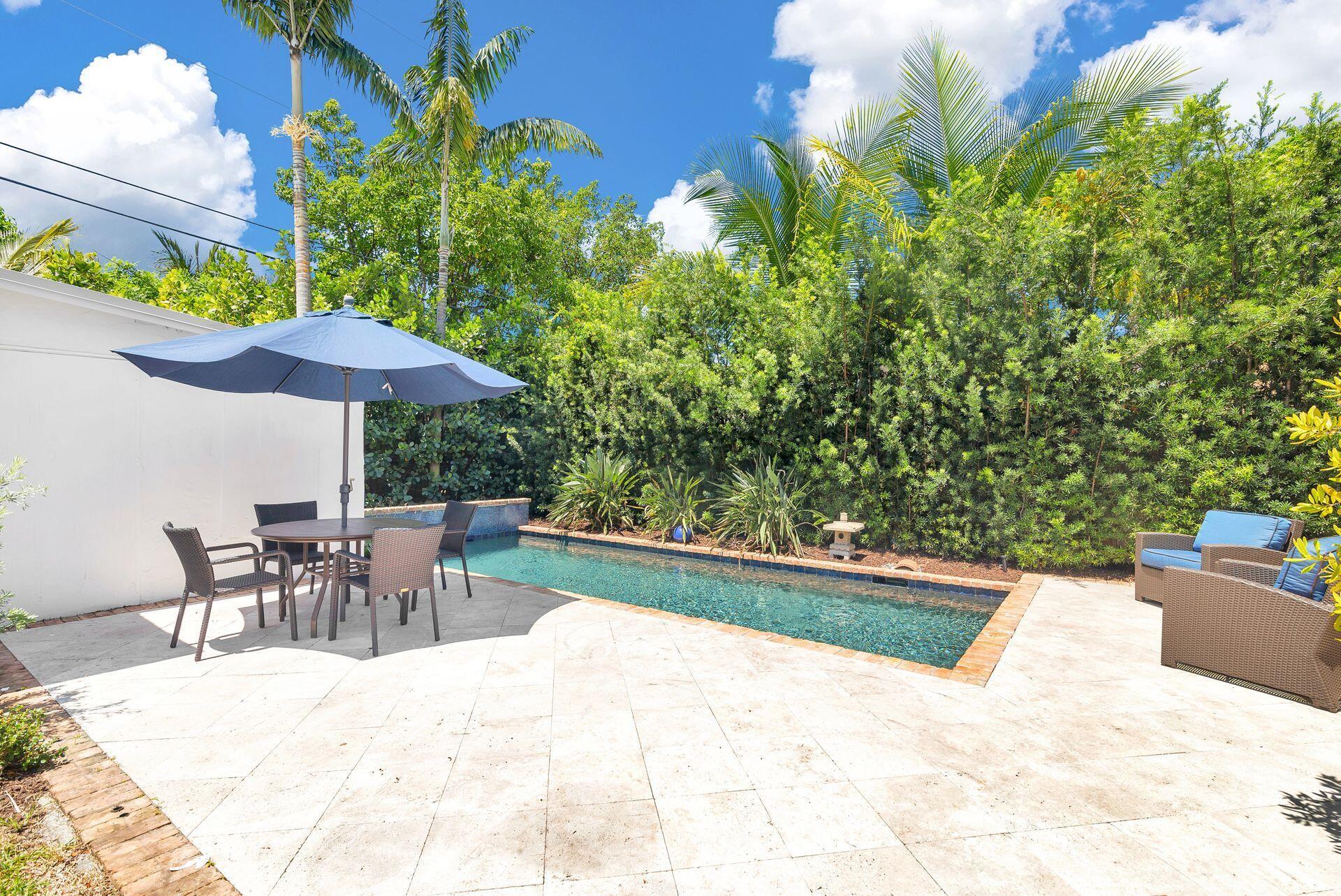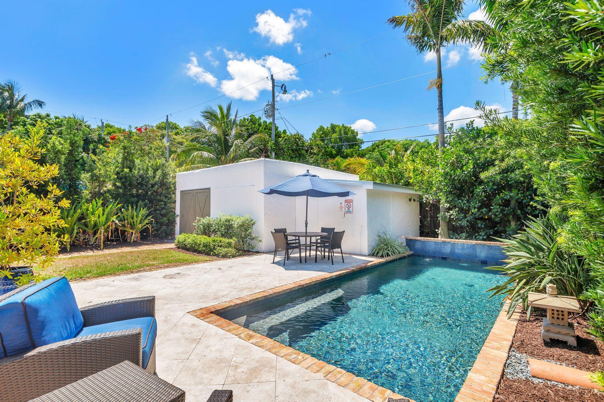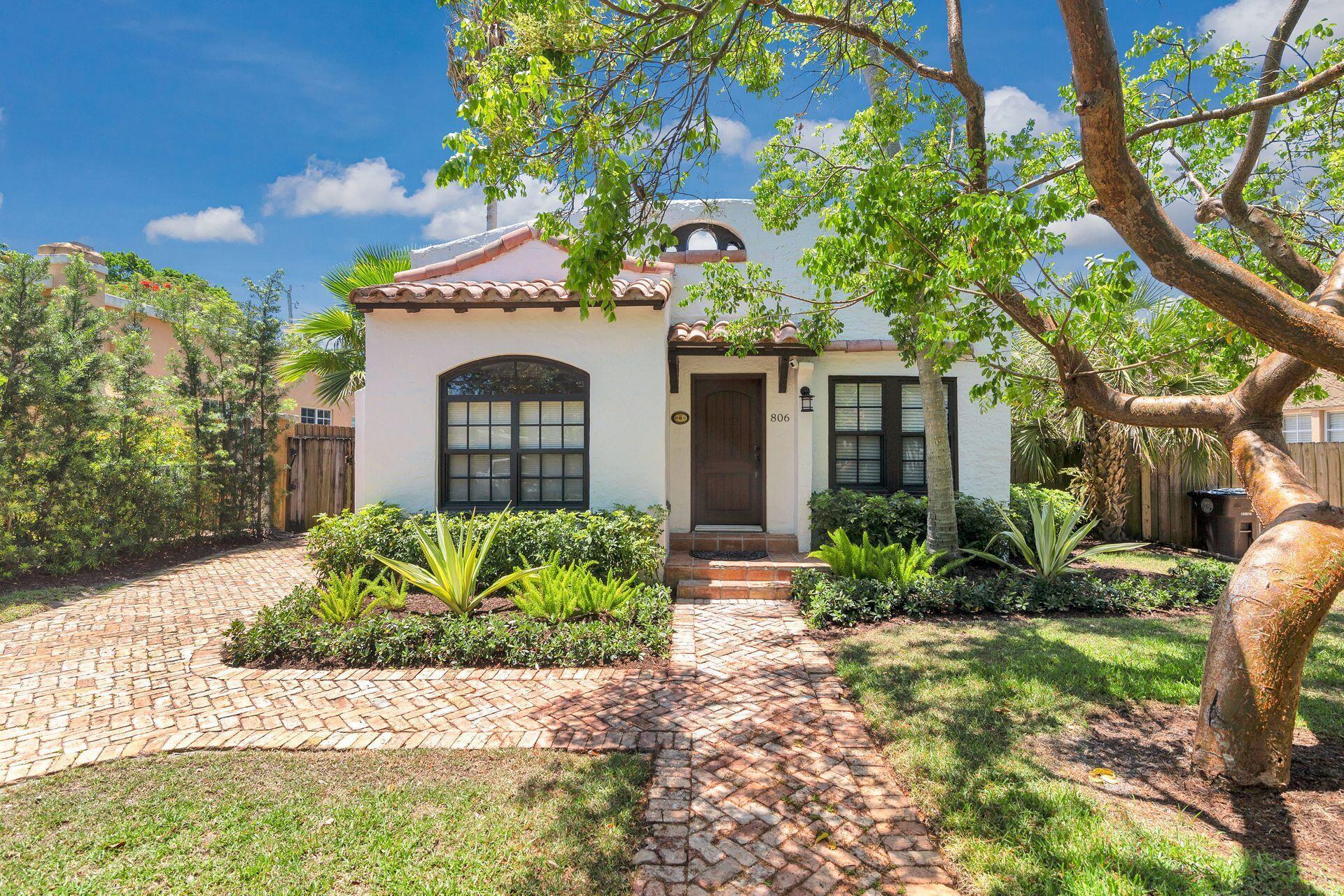 Curb, Curb, Curb Appeal!!! This charming 2BR/1BTH Spanish style home is on a beautiful tree canopied street in the heart of Historic Flamingo Park. Well appointed with full impact windows & doors, bright and airy interiors boasting 9 foot ceilings, open floor plan, and hardwood floors throughout. Stunning interiors with gorgeous fireplace mantel in living room and a cozy den with beautifully proportioned arched windows. Spacious dinning area and large breakfast bar opening up the kitchen featuring shaker cabinets, granite countertops and stainless steel appliances. Private backyard, patio and the heated pool are surrounded by lush tropical landscaping. Paver driveway & 2-car garage. Close proximity to Palm Beach, CityPlace, Norton Art Museum, Antique Row & Palm Beach International Airport
