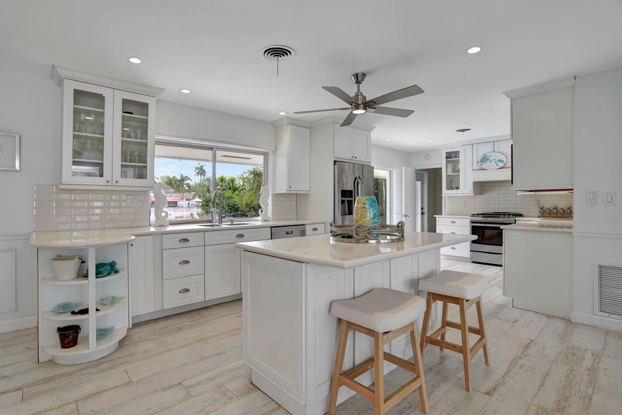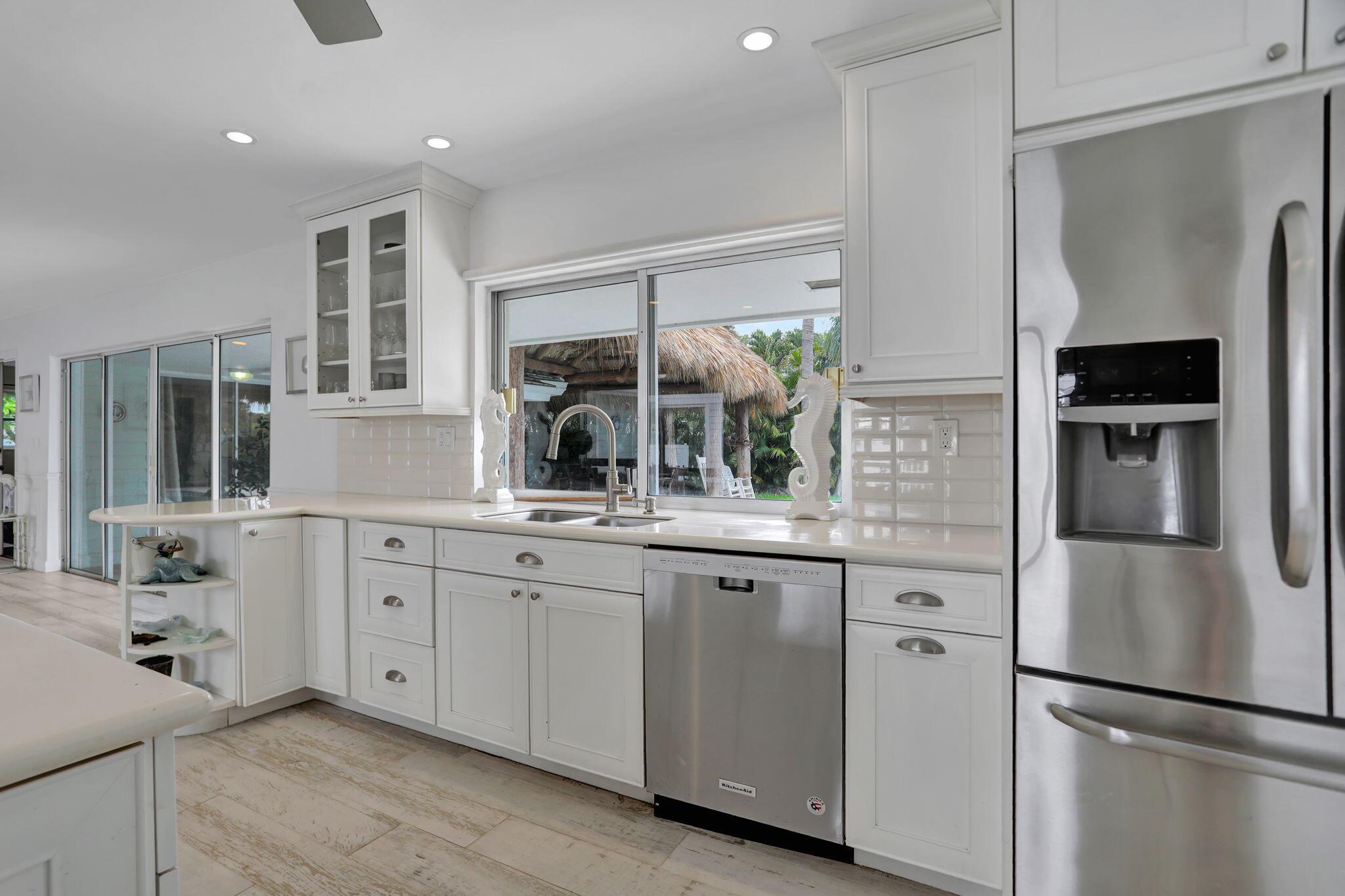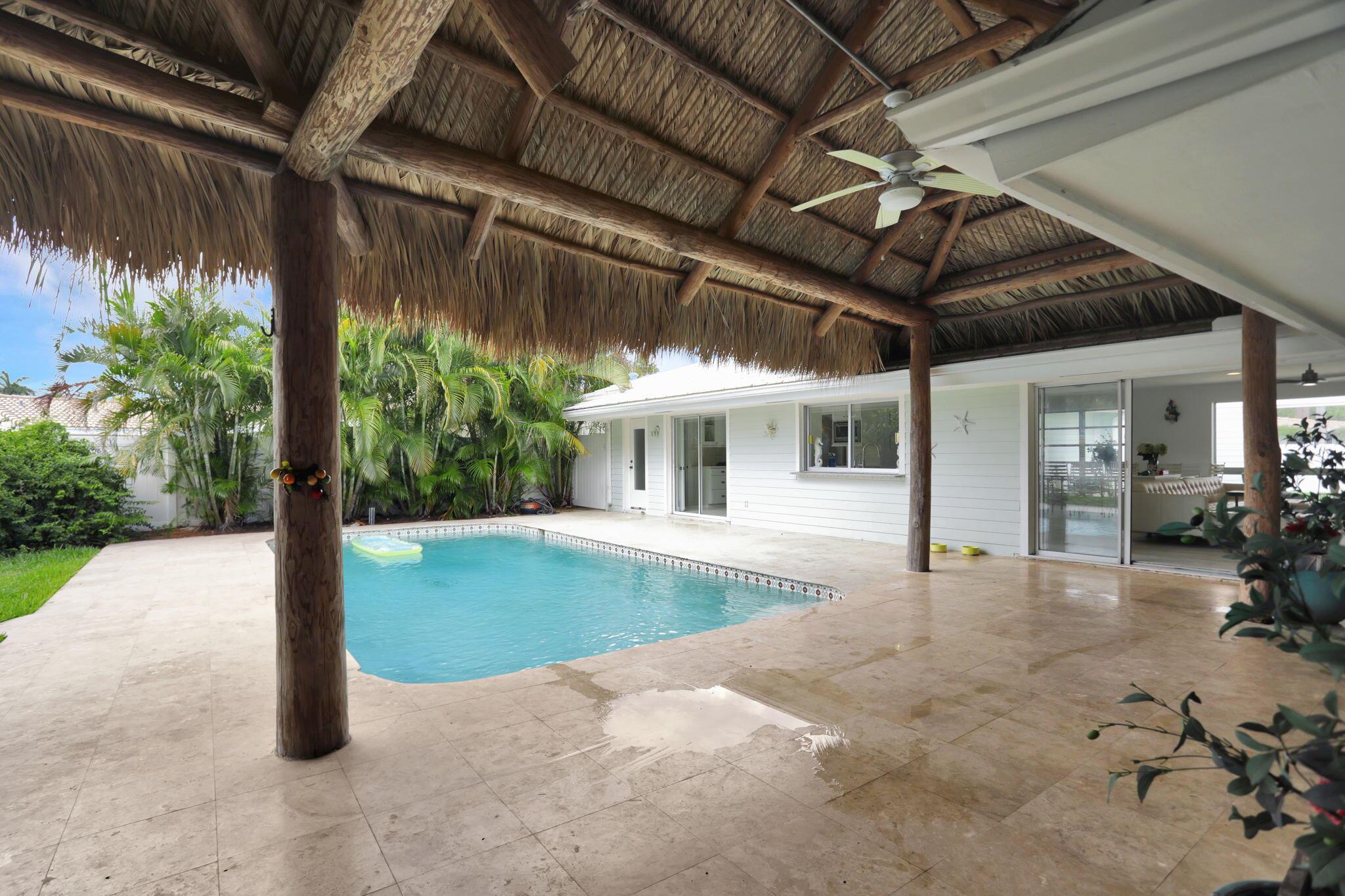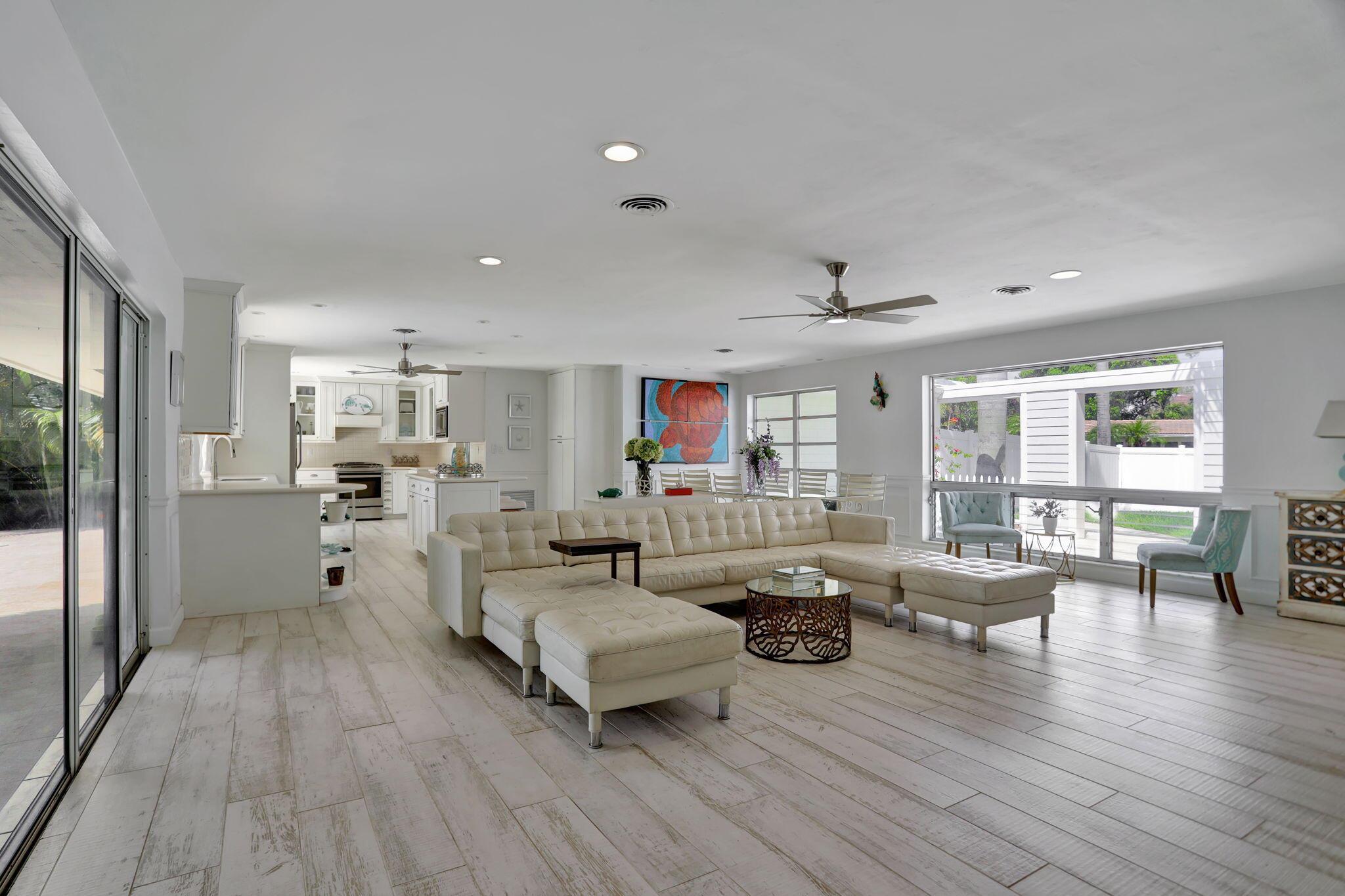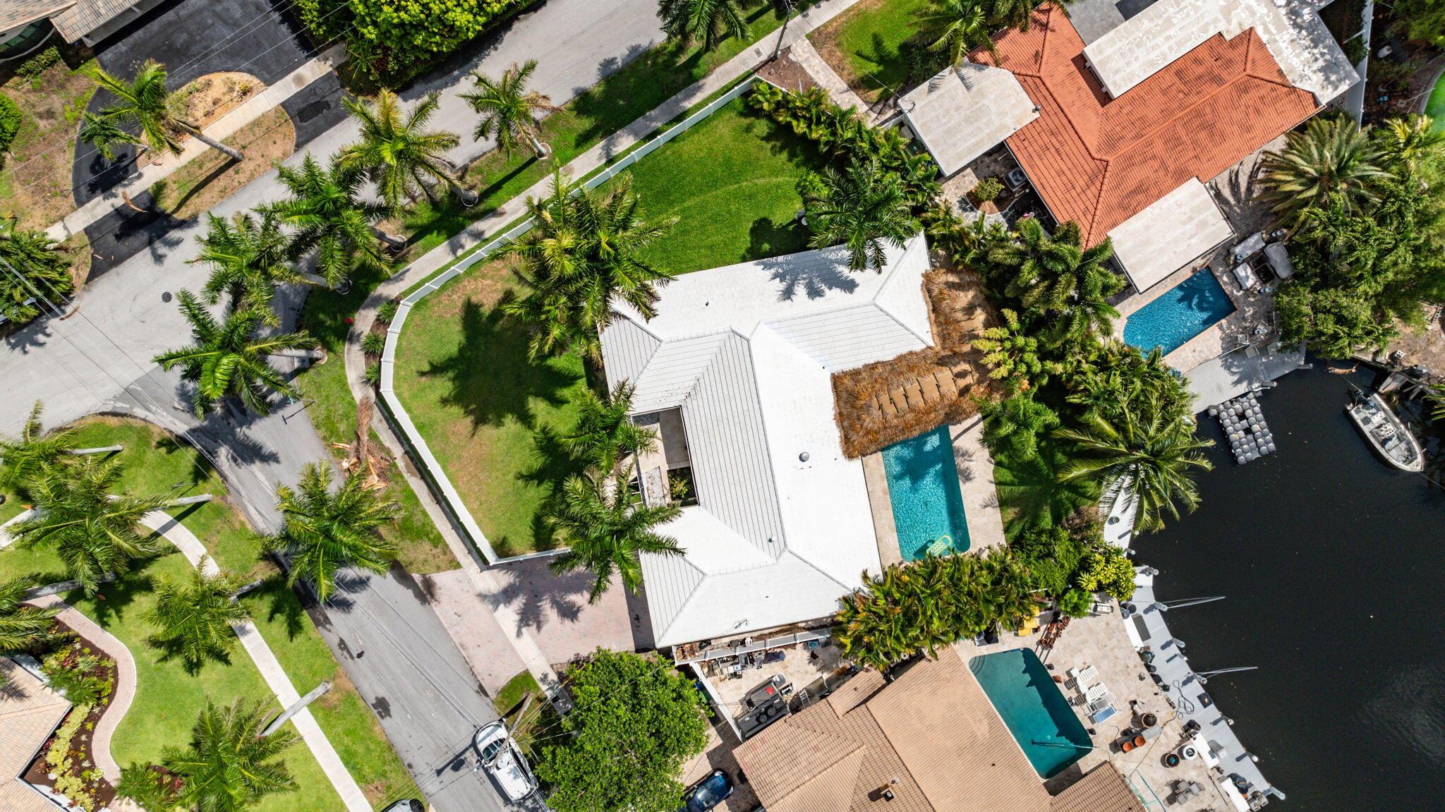 Take advantage of the opportunity to make this remarkable 4 bedroom 3 bathroom waterfront property your new home. The large 2-car garage was converted into the 4th bedroom making this beautifully updated home a spacious and wide split floorplan with an expansive 2313 sq foot adjusted living space. The house sits on an oversized corner lot that offers plenty of private space completely fenced in. Unwind under the huge tiki hut overlooking the sparkling pool and canal with access to the intracoastal, which creates a stunning oasis of relaxation fun for entertaining guests or just enjoying the Florida lifestyle. Just minutes away from the beach, airport, restaurants, just a few blocks away from the prestigious Pinecrest school, and is nestled in the highly desirable Coral Ridge Isles.