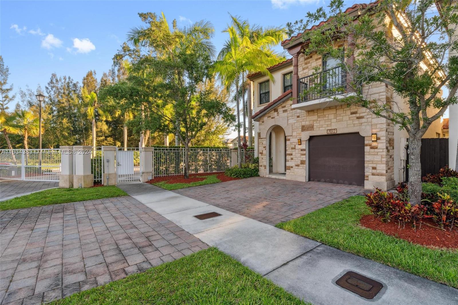 Beautiful remodeled 4 bedroom/3.5 bathroom 2 story home in the private & prestigious gated community of Vintage Place in the city of Doral. This home offers an excellent distribution with TWO suites. Modern open concept kitchen, quartz countertops, ceramic floor all throughout 1st floor, stainless steel glass stairs, impact windows, ZEBRA blinds, beautiful & large backyard w/ a custom aluminum pergola, perfect for having friends & family over. NEW A/C (replaced in 2022). There is a 1 garage & a driveway for 3 cars. The HOA fee includes cable, alarm, high-speed internet/fiber optics & a Clubhouse with pool, gym, sauna, game room, playground, & new BBQ area overlooking the lake. Excellent & quiet community. Near shopping centers, highways and excellent schools. Call for a private tour!