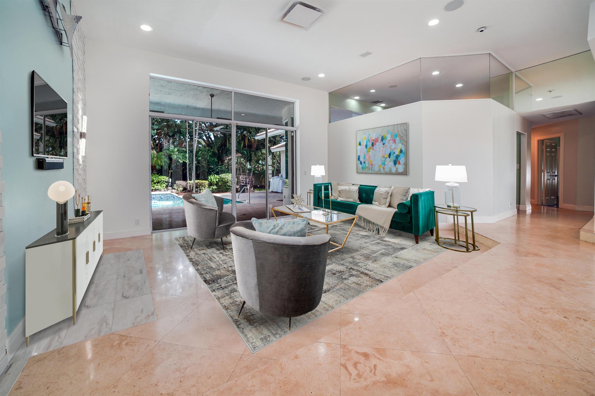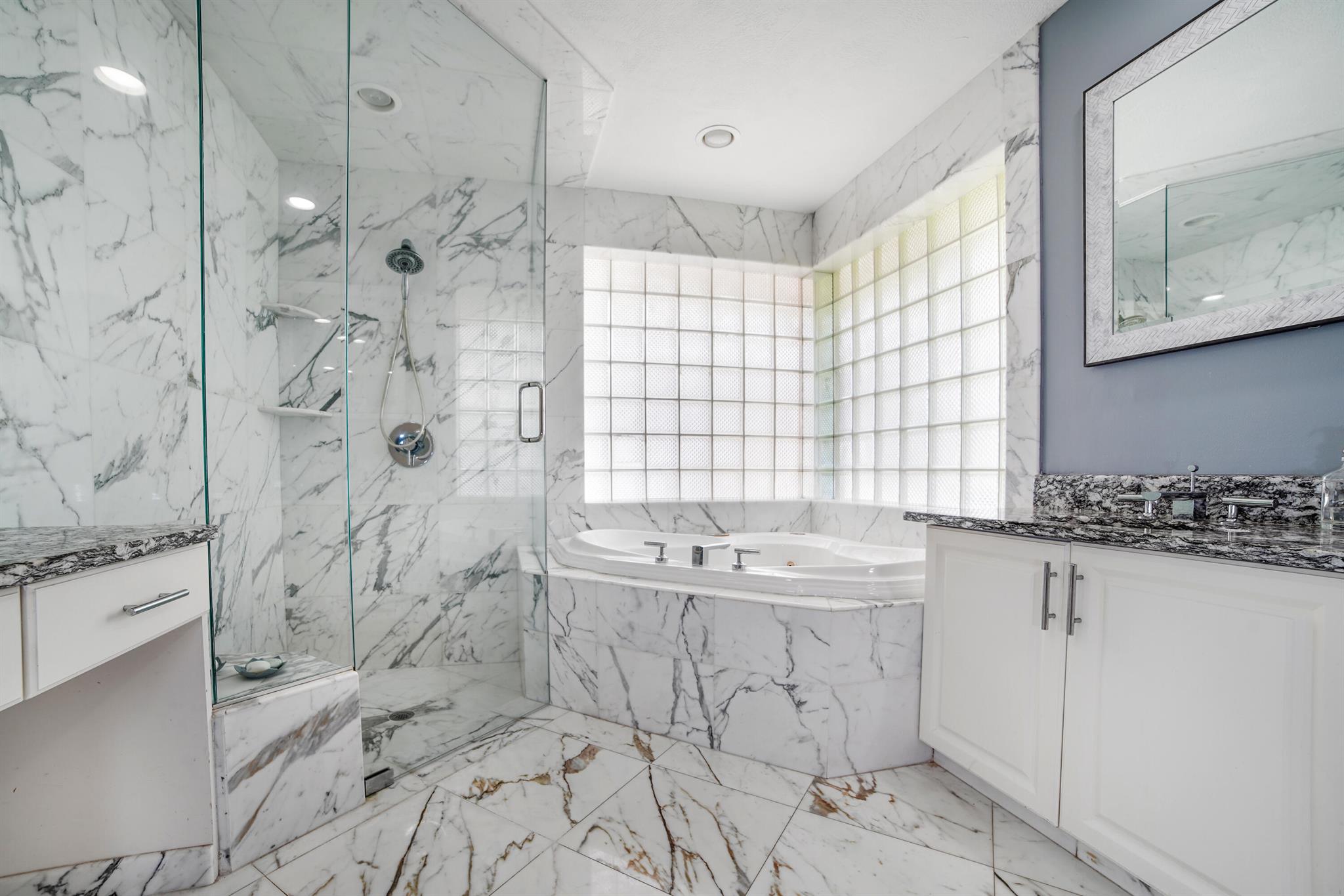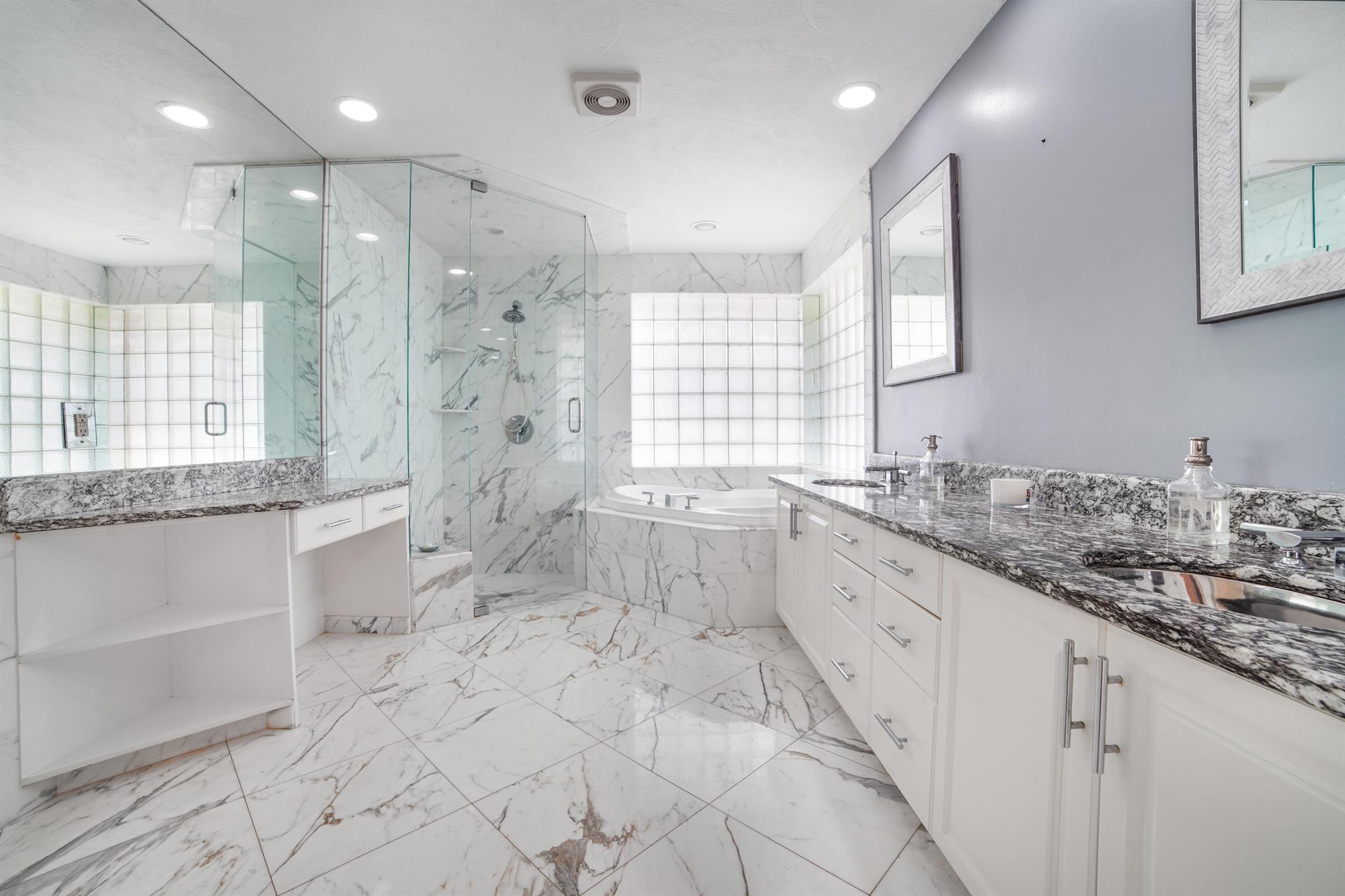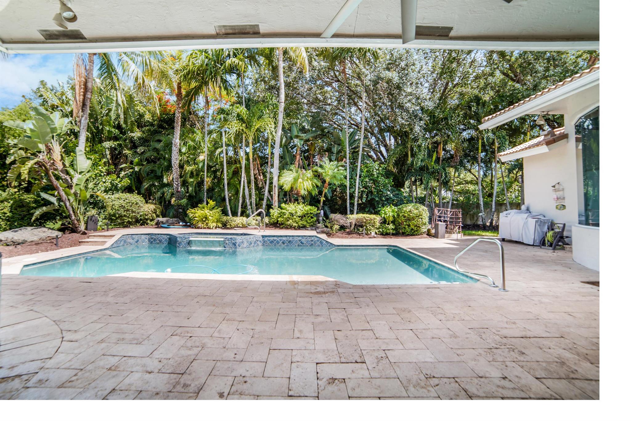 New Price: $60,000 less than Nov appraisal! Elegant executive pool home on a fully-fenced HALF ACRE LOT with mature LUXURY landscaping, including valuable Canary Palm in front yard. Three-way split floor plan provides options for privacy, guests, & entertaining. Adding to the elegance are polished Italian Travertine tile floors, volume ceilings & modern lighting. Be wowed by the primary bedroom's luxury bath, custom his & hers closet/dressing area, & access to the pool patio. Enjoy the gourmet kitchen with lots of storage, top of the line stainless appliances, double stove, wine cooler & breakfast bar. Windows galore overlook the pool & spa! The RECENTLY RESURFACED SALTWATER POOL features color-changing lighting, waterfall spa, outdoor shower & new pump. It's surrounded by brick...