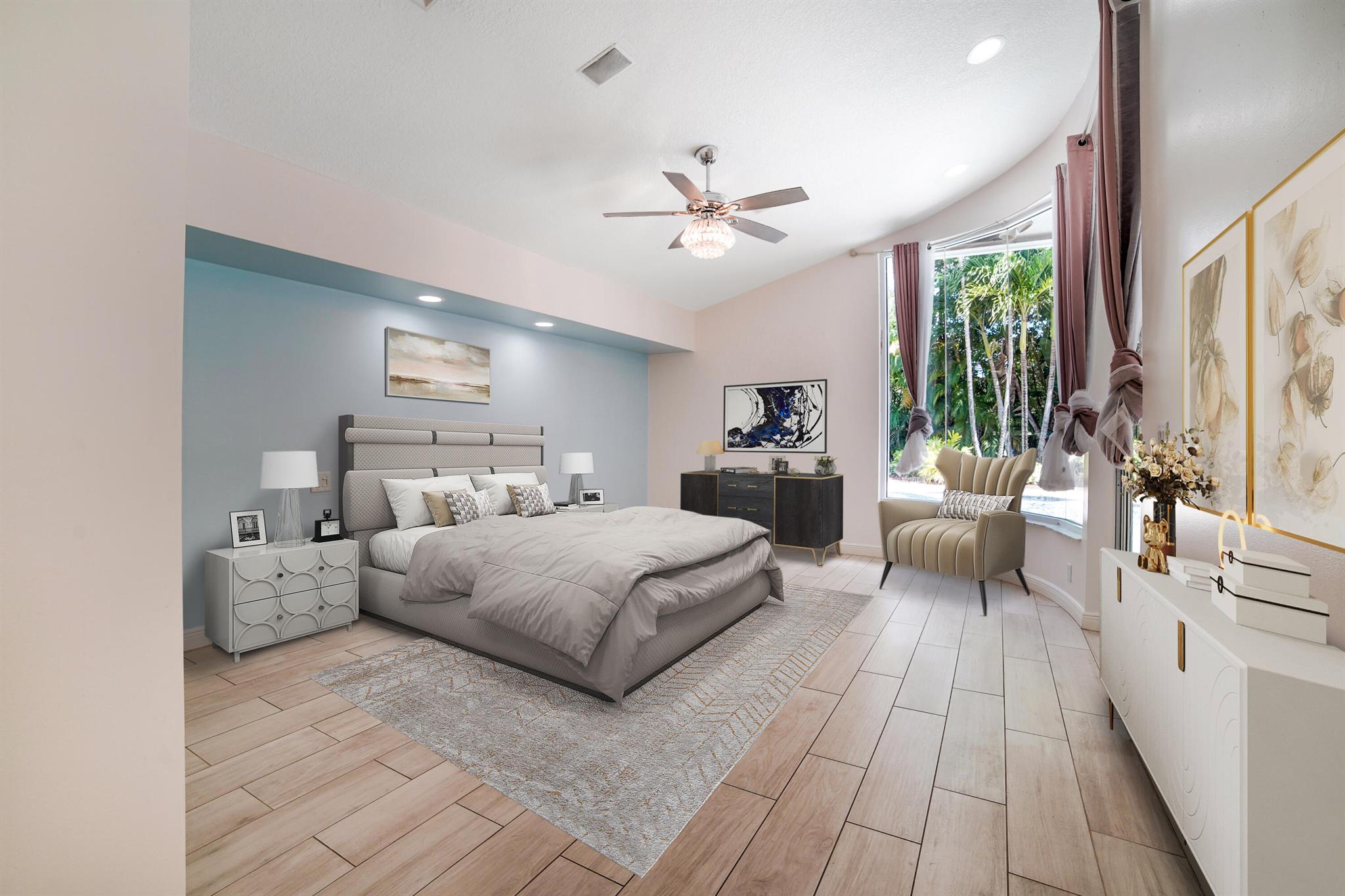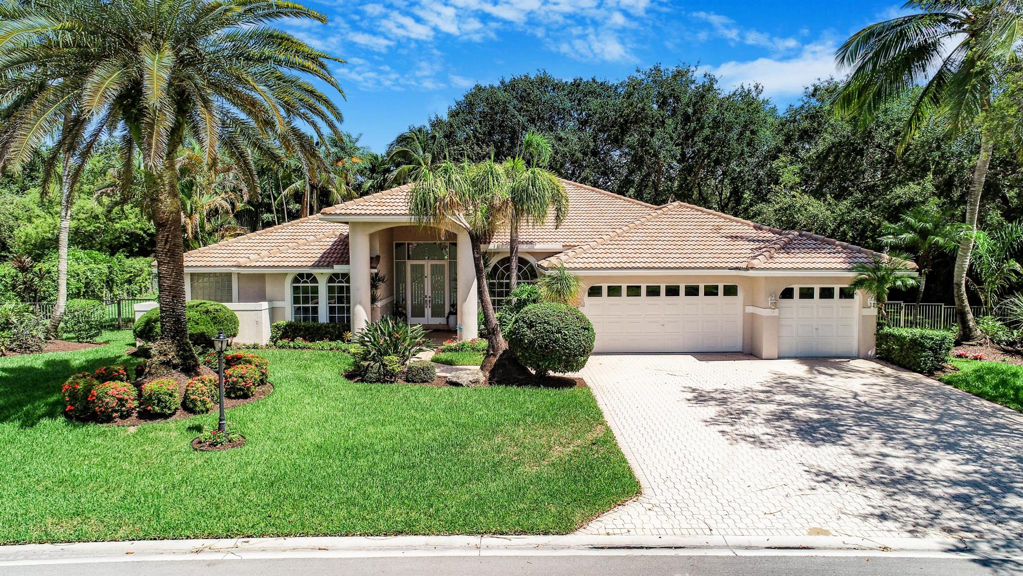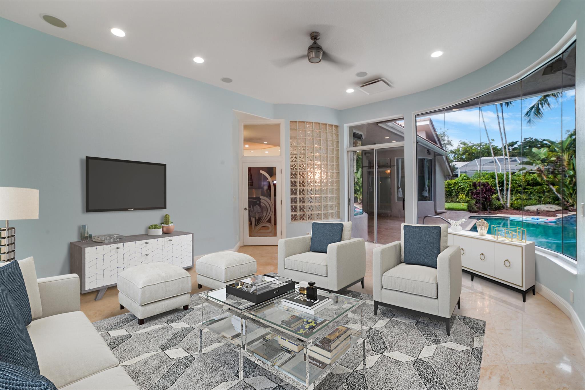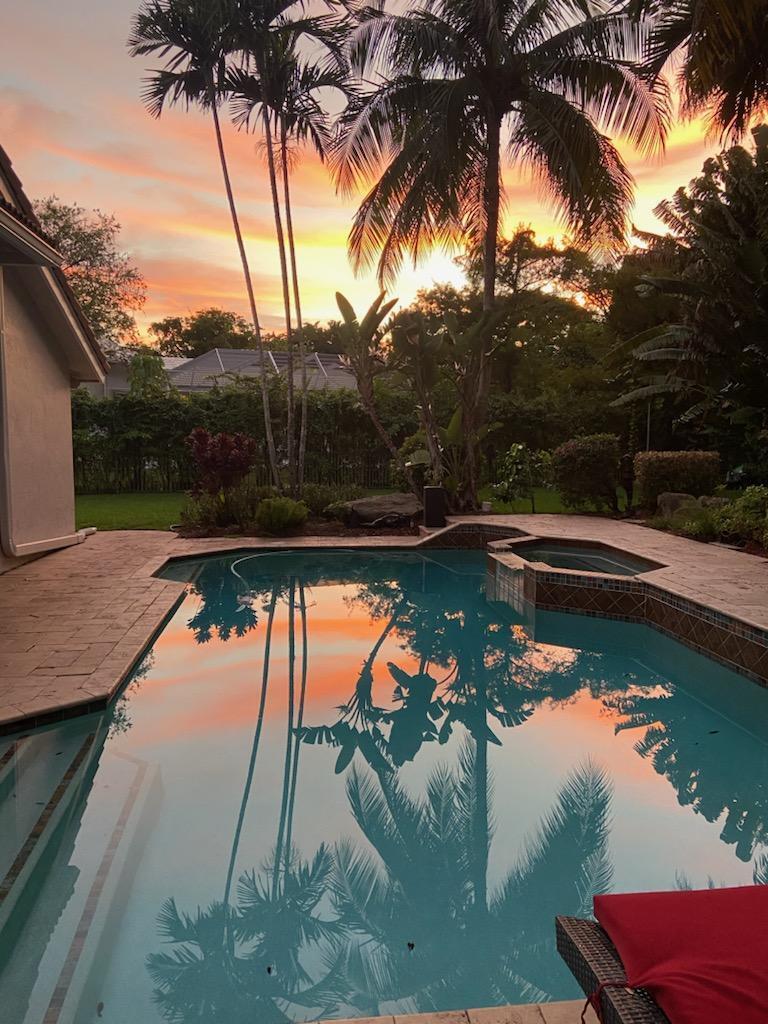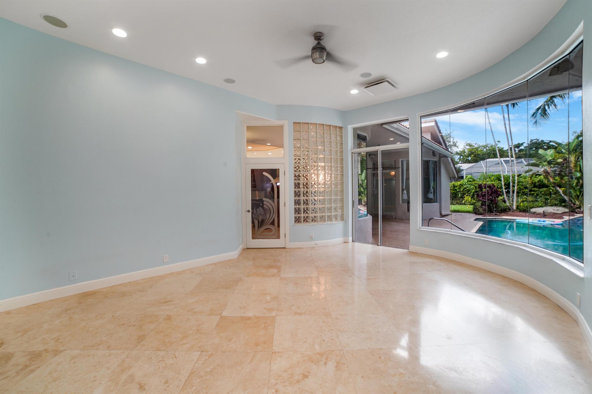 New Price: $60,000 less than Nov appraisal! Elegant executive pool home on a fully-fenced HALF ACRE LOT with mature LUXURY landscaping, including valuable Canary Palm in front yard. Three-way split floor plan provides options for privacy, guests, & entertaining. Adding to the elegance are polished Italian Travertine tile floors, volume ceilings & modern lighting. Be wowed by the primary bedroom's luxury bath, custom his & hers closet/dressing area, & access to the pool patio. Enjoy the gourmet kitchen with lots of storage, top of the line stainless appliances, double stove, wine cooler & breakfast bar. Windows galore overlook the pool & spa! The RECENTLY RESURFACED SALTWATER POOL features color-changing lighting, waterfall spa, outdoor shower & new pump. It's surrounded by brick...