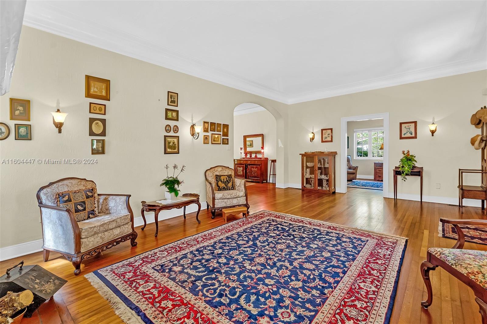 This classic Old Spanish is a true must see starting from roofed front porch entry! Gracious 36x15 ft living area with original fireplace opens to 20x13 ft dining room ideal for entertaining plus chef’s kitchen completely remodeled in 2009 with new expanded kitchen cabinets and island with granite counters. First floor includes 15x12 family room and 14x13 primary suite. Original oak floors. Second floor includes open area ideal for office/crafts/playroom, 2 large bedrooms and bath. Corner property has side street entry to 2 car garage building with upstairs 1/1 guest/in-law quarters. Just 3 blocks to Biltmore Hotel, golf and tennis, Youth Center and Venetian Pool. Short distance to Miracle Mile, Merrick Park and airport.