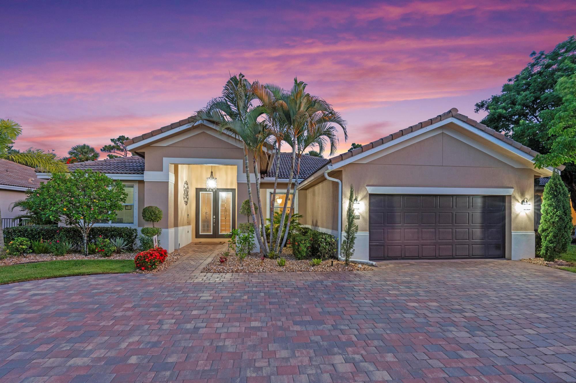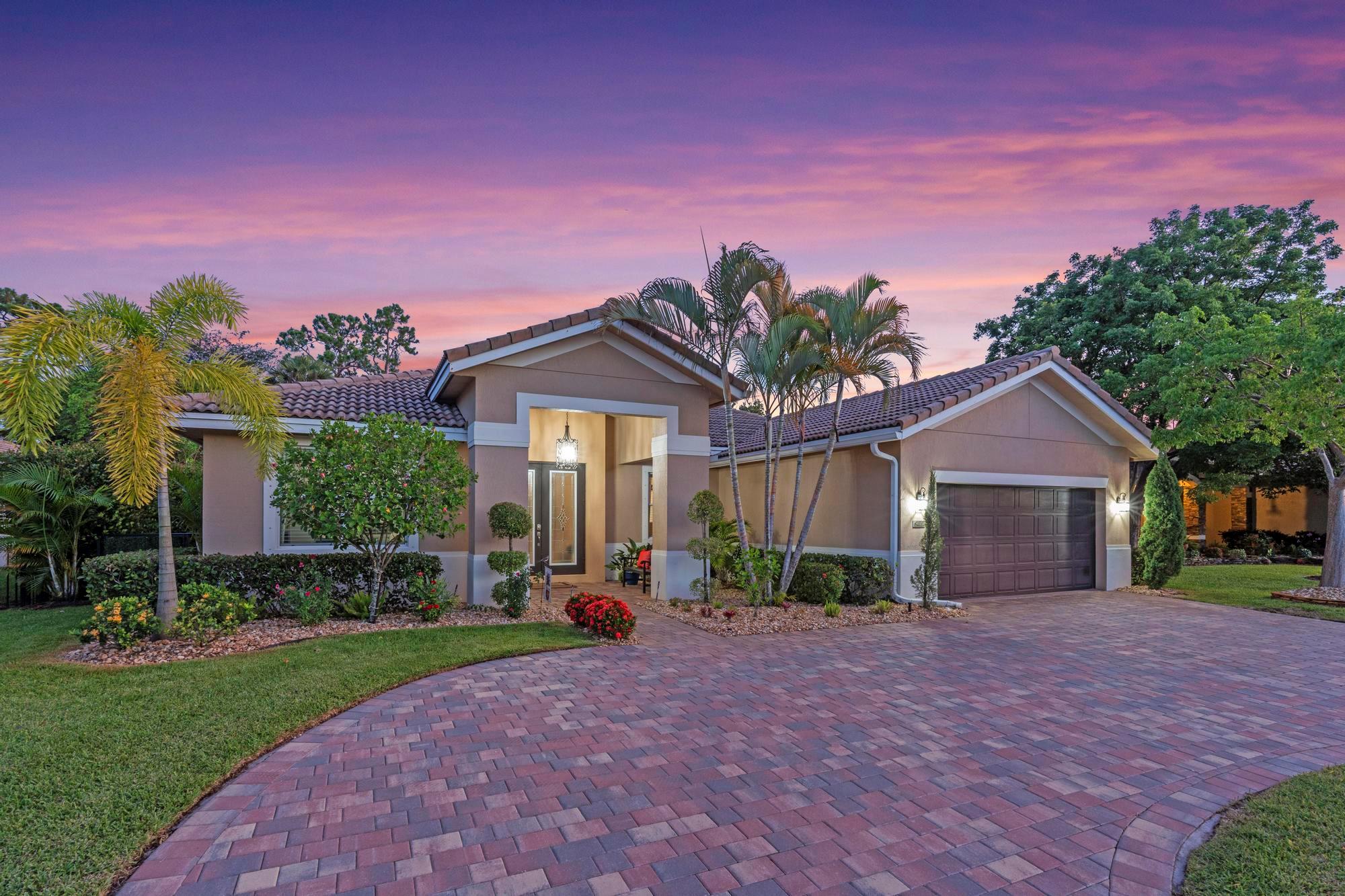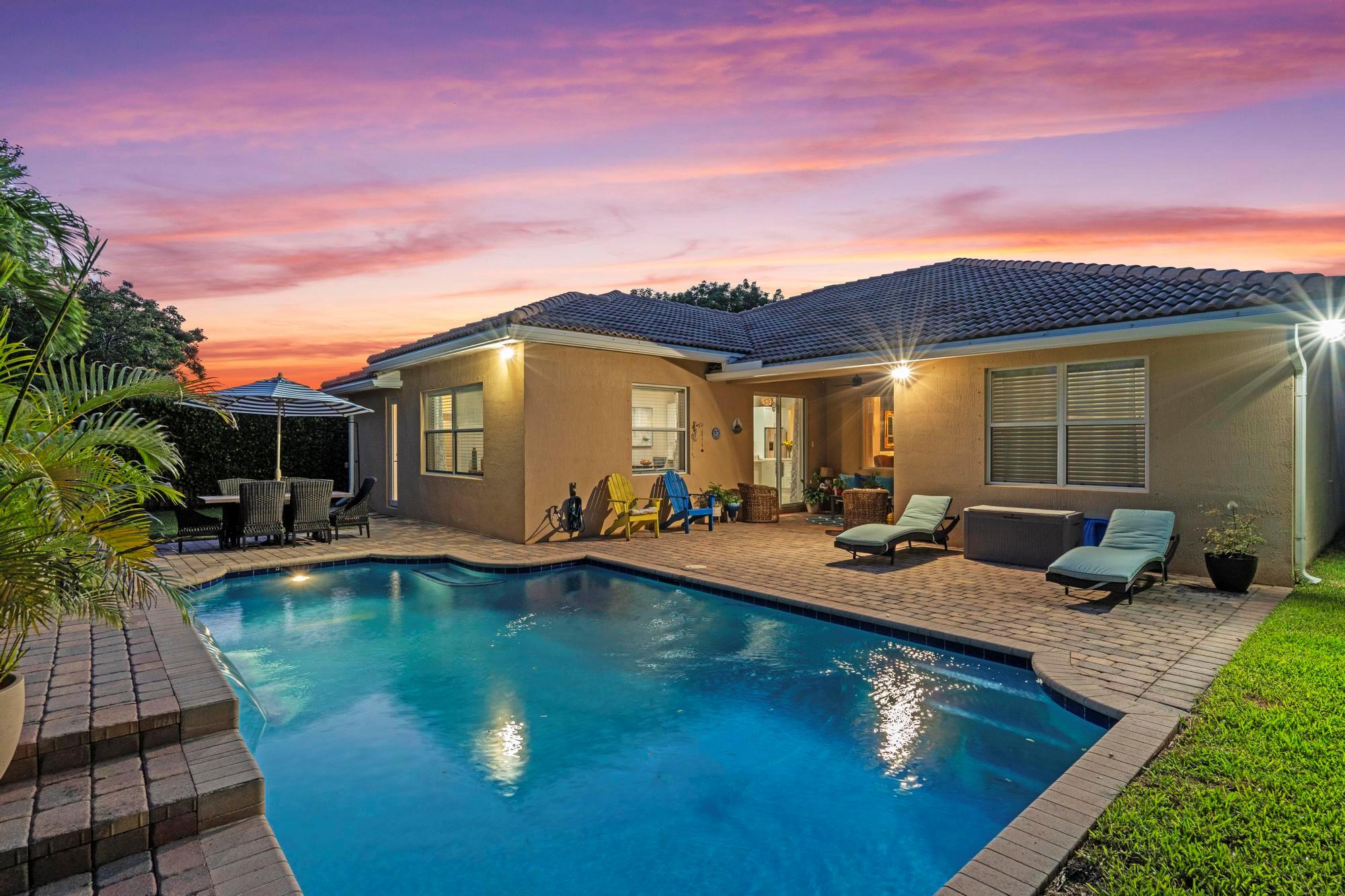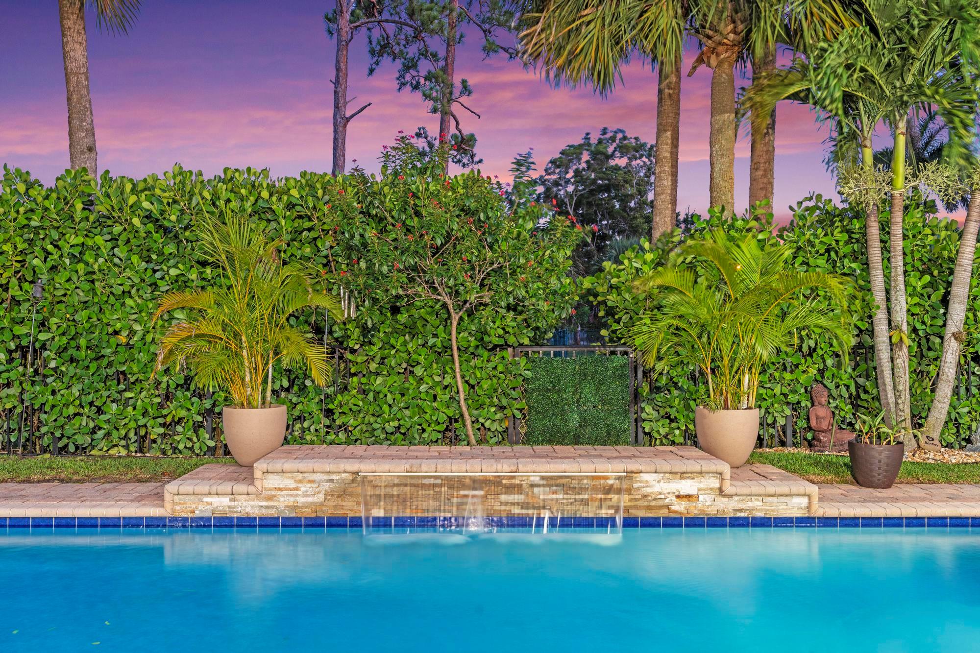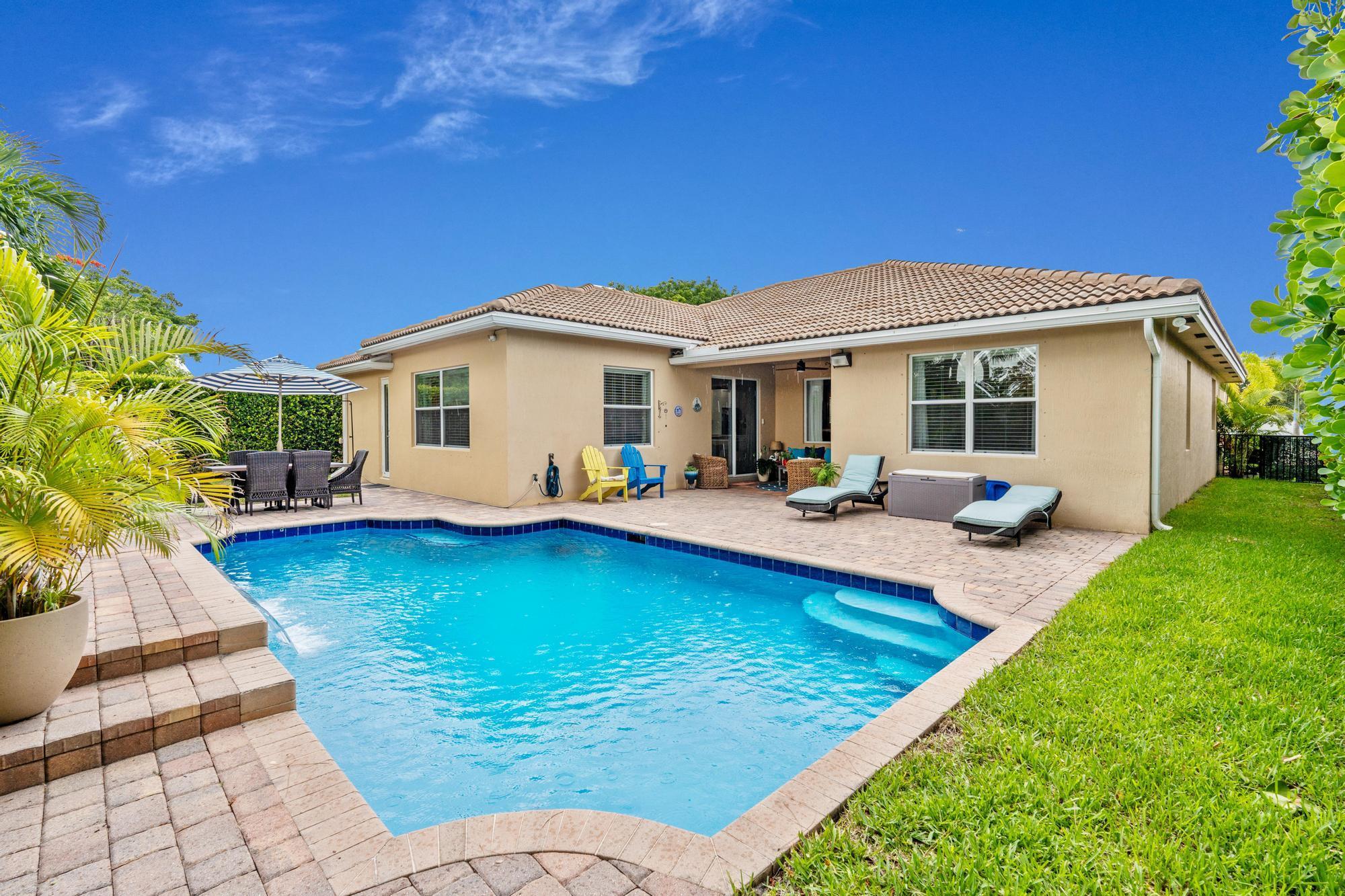 Welcome Home to Luxury! 4 Beds PLUS a huge DEN to make it a 5th Bedroom. With over $50,000 in upgrades, this residence boasts a brick paver circular driveway, lush landscaping, and a hurricane impact glass front door. Inside crown molding adorns every living space. Tile flooring throughout and laminate in all bedrooms. The renovated kitchen features Bosch appliances, with a a Zline drawer microwave and pantry with pull-out drawers. Step through cabana doors to a private oasis, well maintained pool with its own waterfall. The master bedroom offers 2 new California closets, and newly installed master bath double vanity. Plus, enjoy the comfort of newer AC. Nestled in a Low HOA gated community. PBI Airport is 10 mins away, and short proximity to all main Highways. All ''A'' rated schools!
