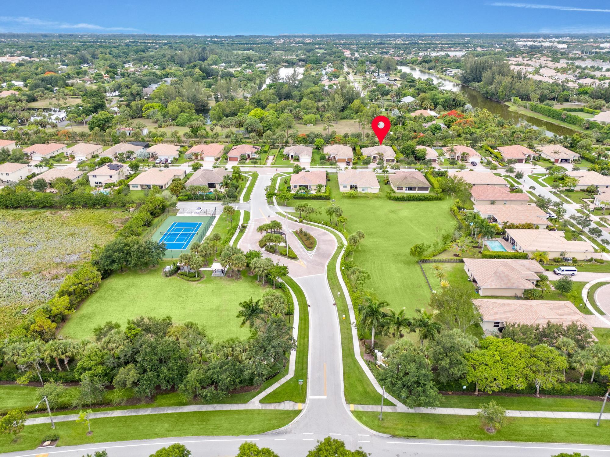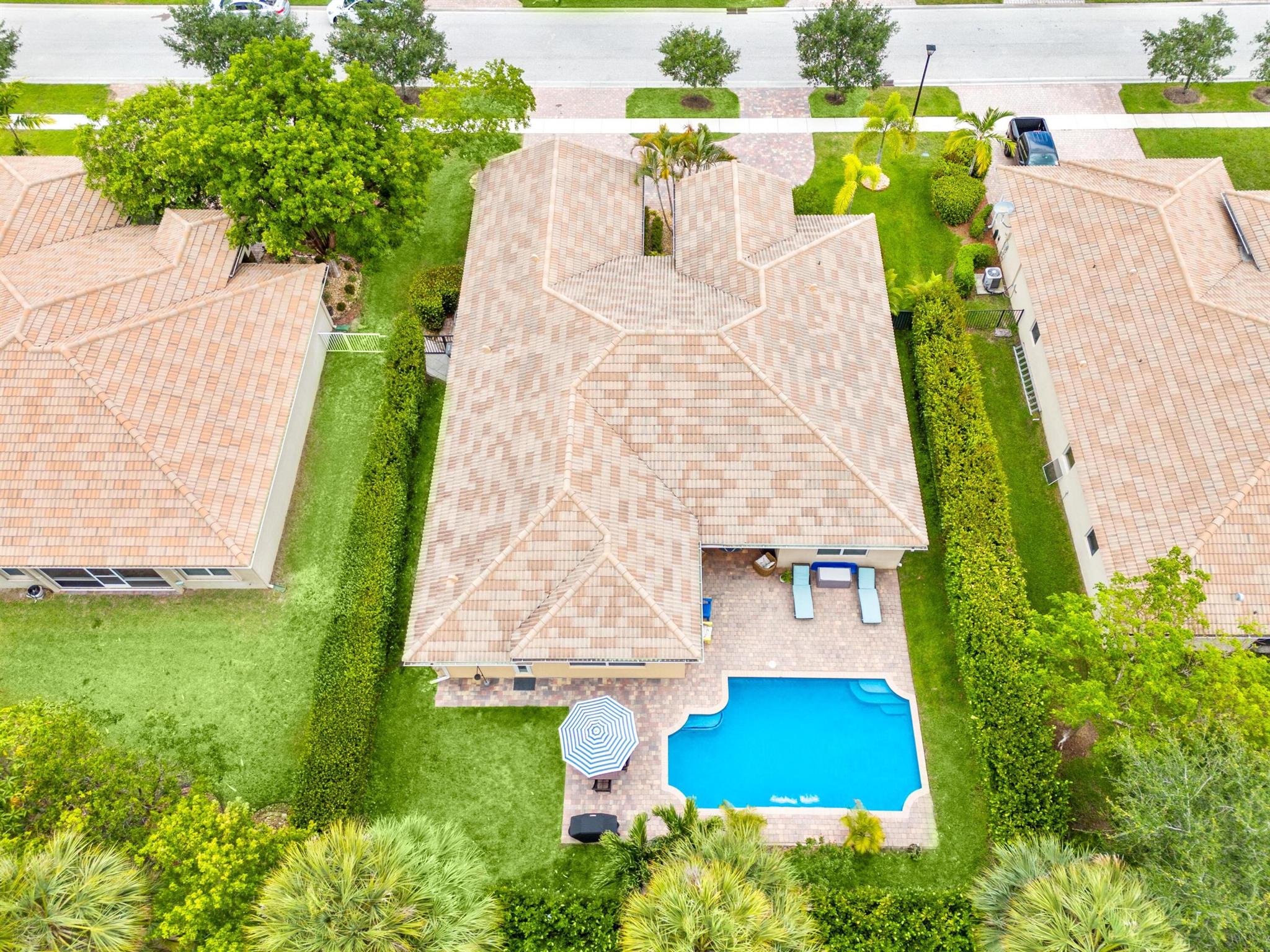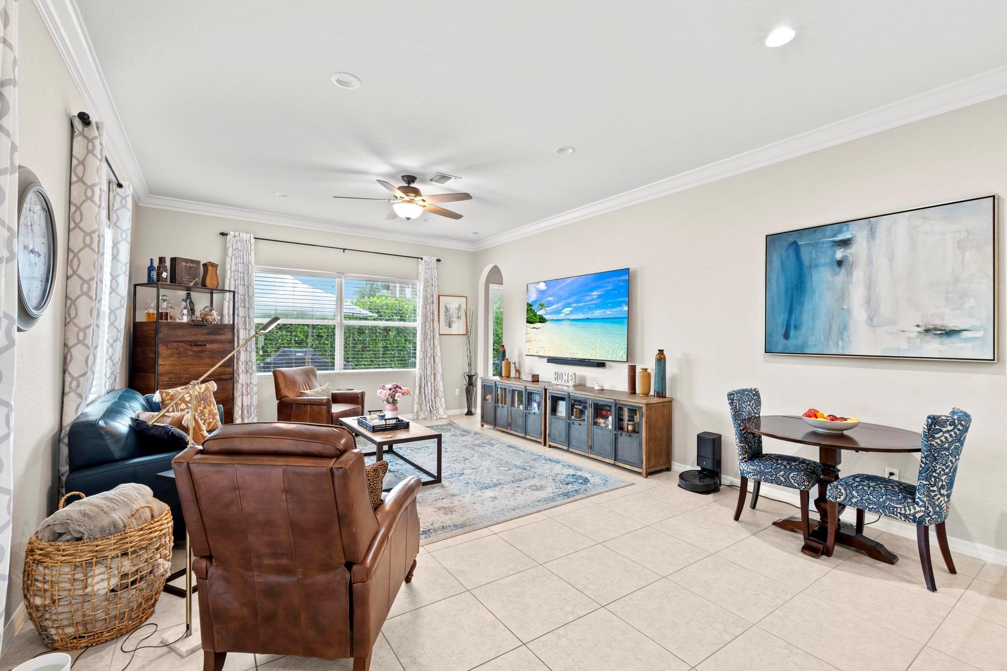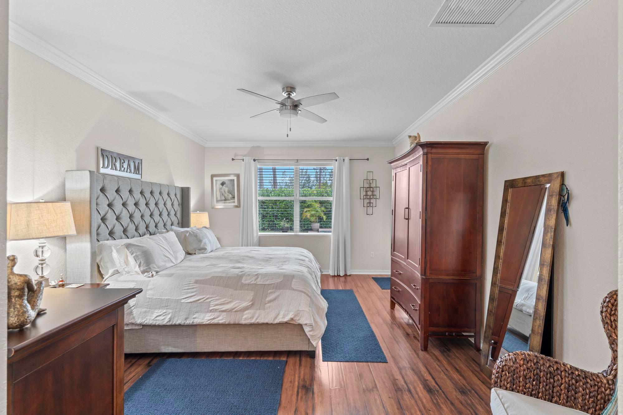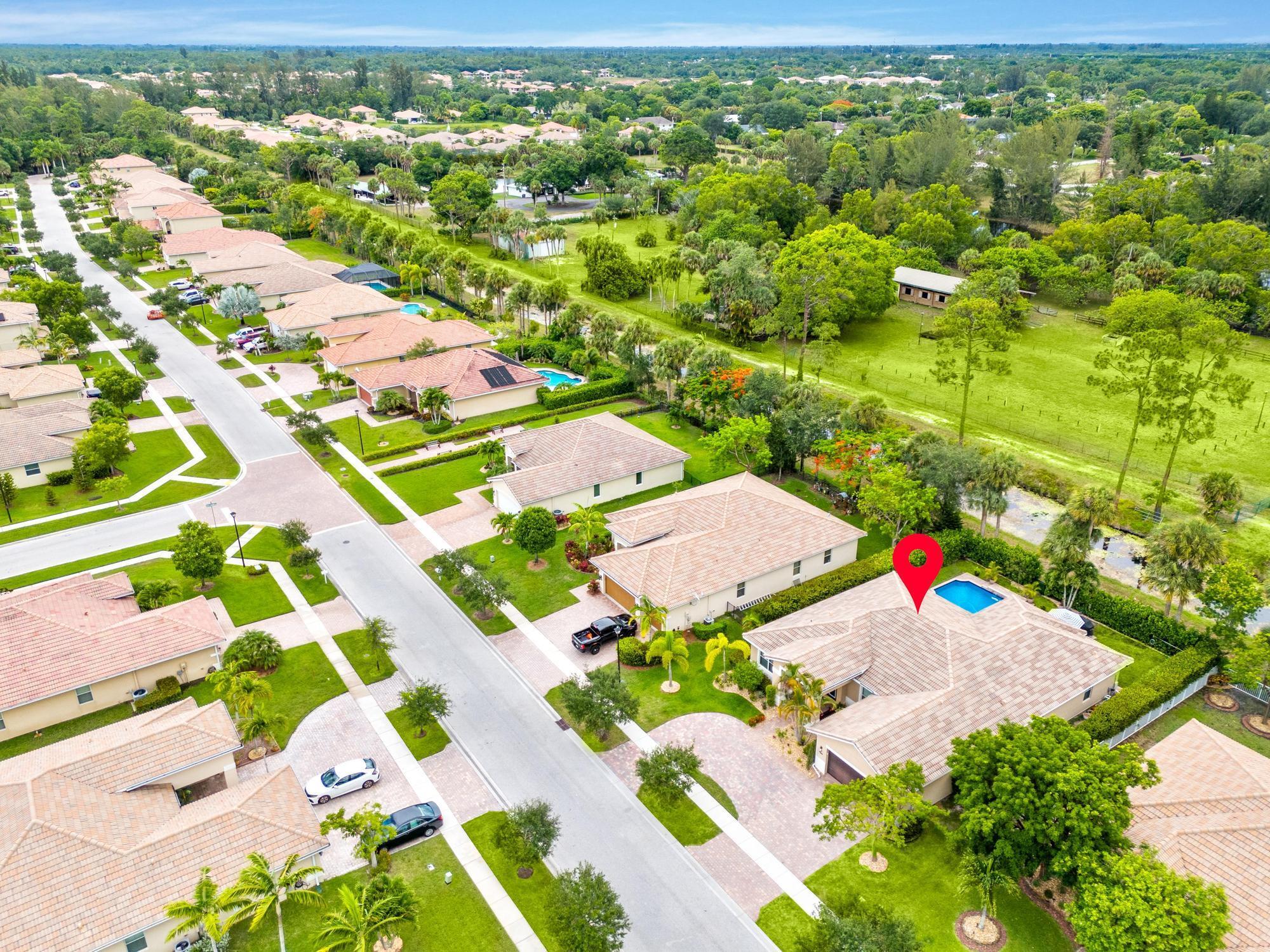 Welcome Home to Luxury! 4 Beds PLUS a huge DEN to make it a 5th Bedroom. With over $50,000 in upgrades, this residence boasts a brick paver circular driveway, lush landscaping, and a hurricane impact glass front door. Inside crown molding adorns every living space. Tile flooring throughout and laminate in all bedrooms. The renovated kitchen features Bosch appliances, with a a Zline drawer microwave and pantry with pull-out drawers. Step through cabana doors to a private oasis, well maintained pool with its own waterfall. The master bedroom offers 2 new California closets, and newly installed master bath double vanity. Plus, enjoy the comfort of newer AC. Nestled in a Low HOA gated community. PBI Airport is 10 mins away, and short proximity to all main Highways. All ''A'' rated schools!