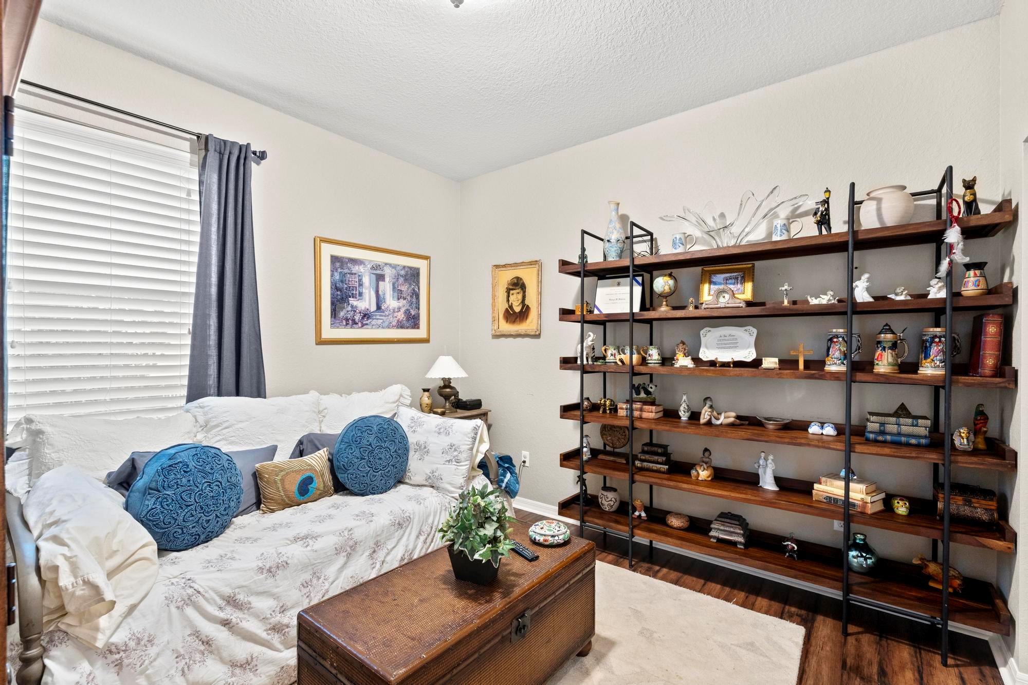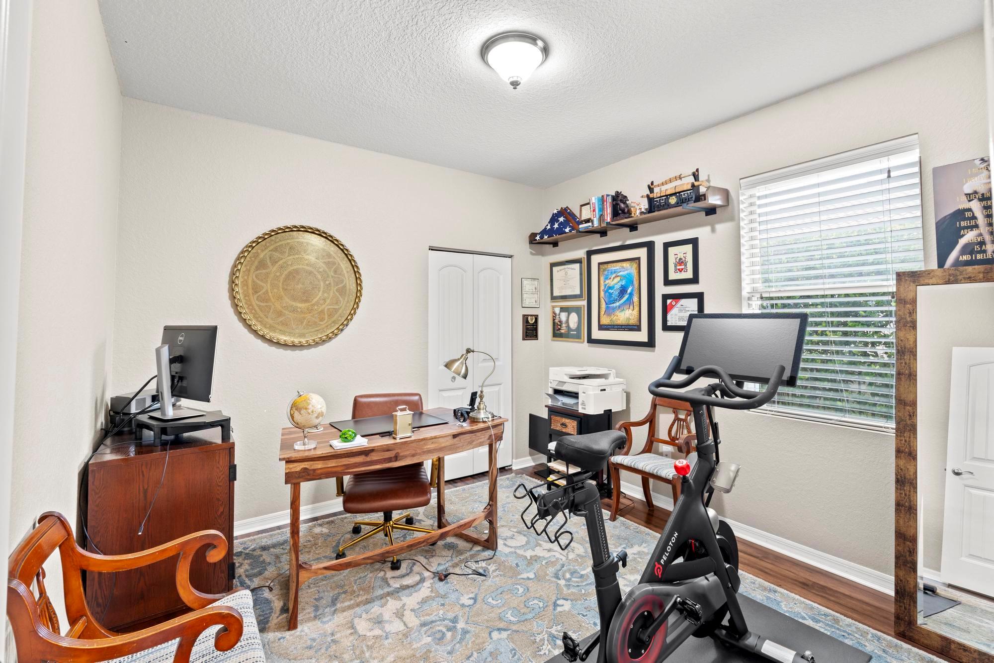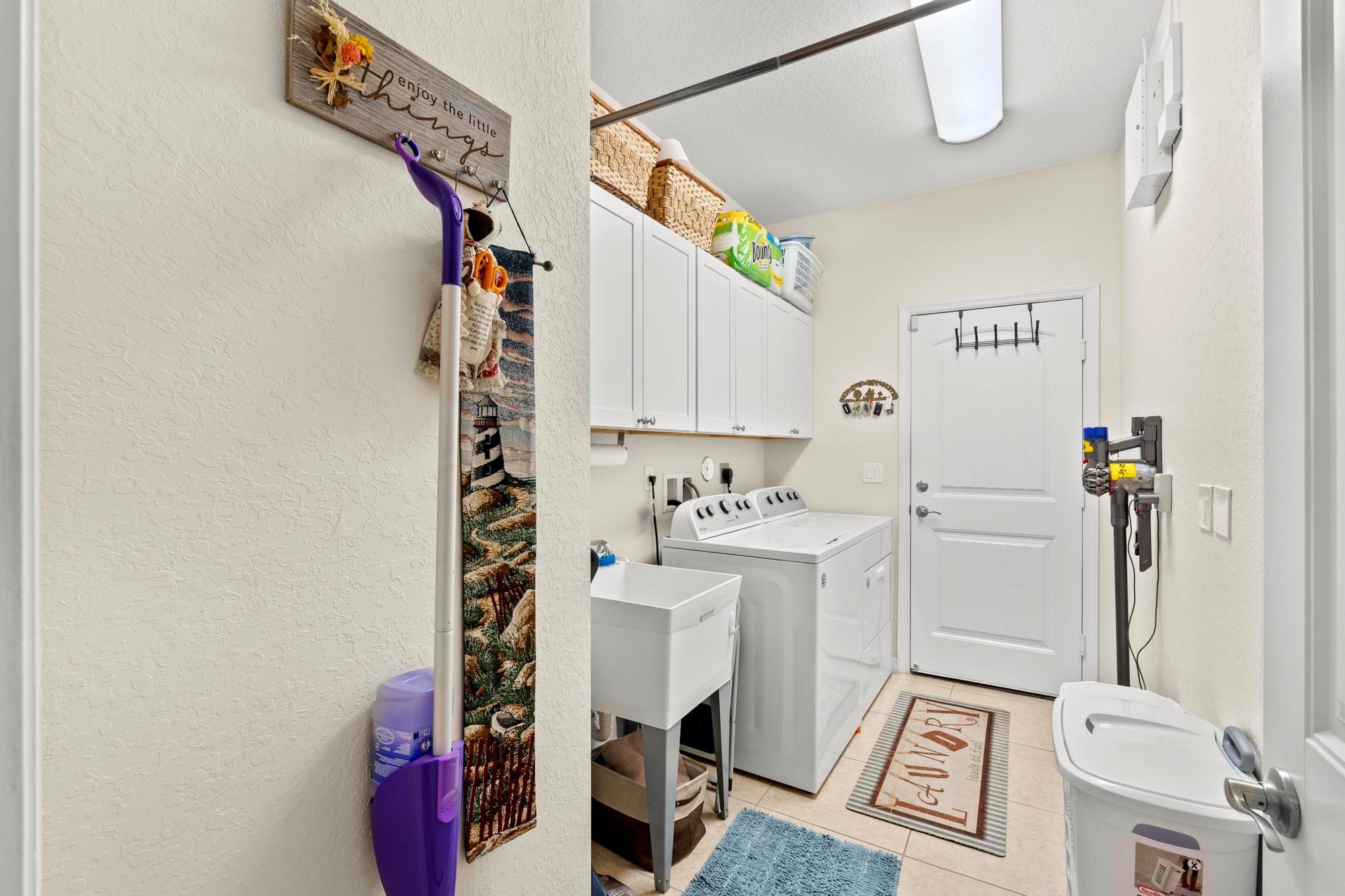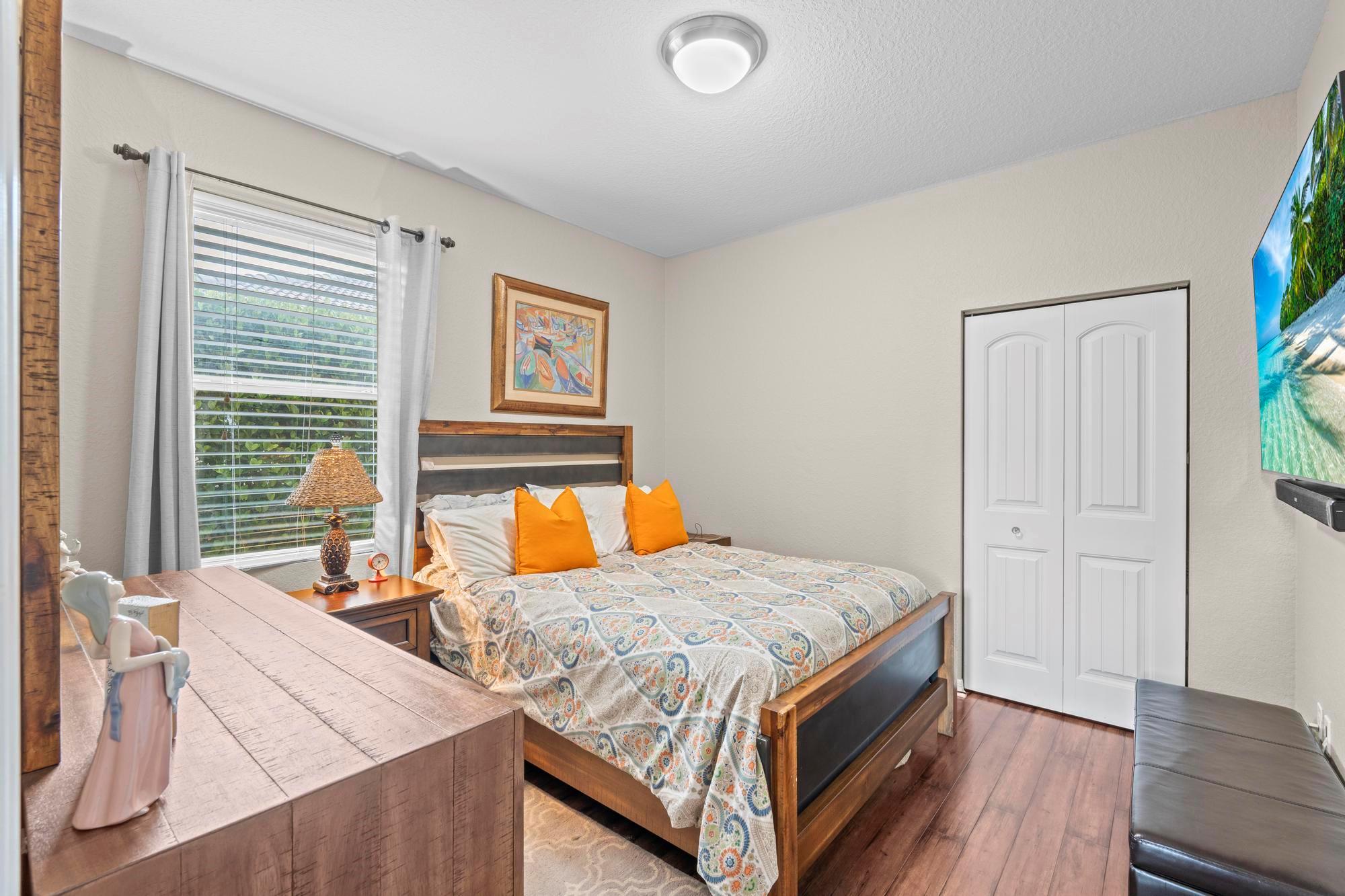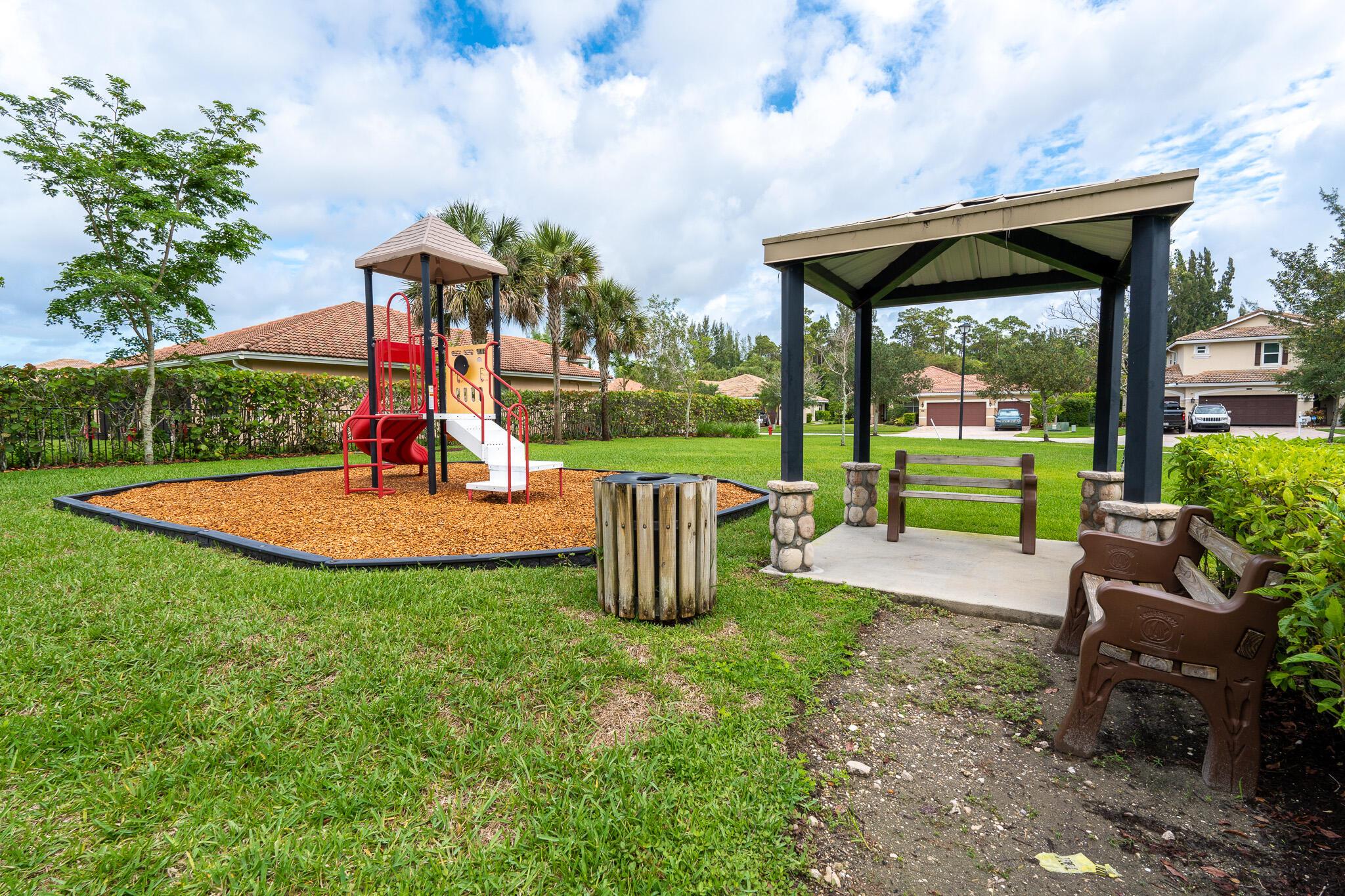 Welcome Home to Luxury! 4 Beds PLUS a huge DEN to make it a 5th Bedroom. With over $50,000 in upgrades, this residence boasts a brick paver circular driveway, lush landscaping, and a hurricane impact glass front door. Inside crown molding adorns every living space. Tile flooring throughout and laminate in all bedrooms. The renovated kitchen features Bosch appliances, with a a Zline drawer microwave and pantry with pull-out drawers. Step through cabana doors to a private oasis, well maintained pool with its own waterfall. The master bedroom offers 2 new California closets, and newly installed master bath double vanity. Plus, enjoy the comfort of newer AC. Nestled in a Low HOA gated community. PBI Airport is 10 mins away, and short proximity to all main Highways. All ''A'' rated schools!