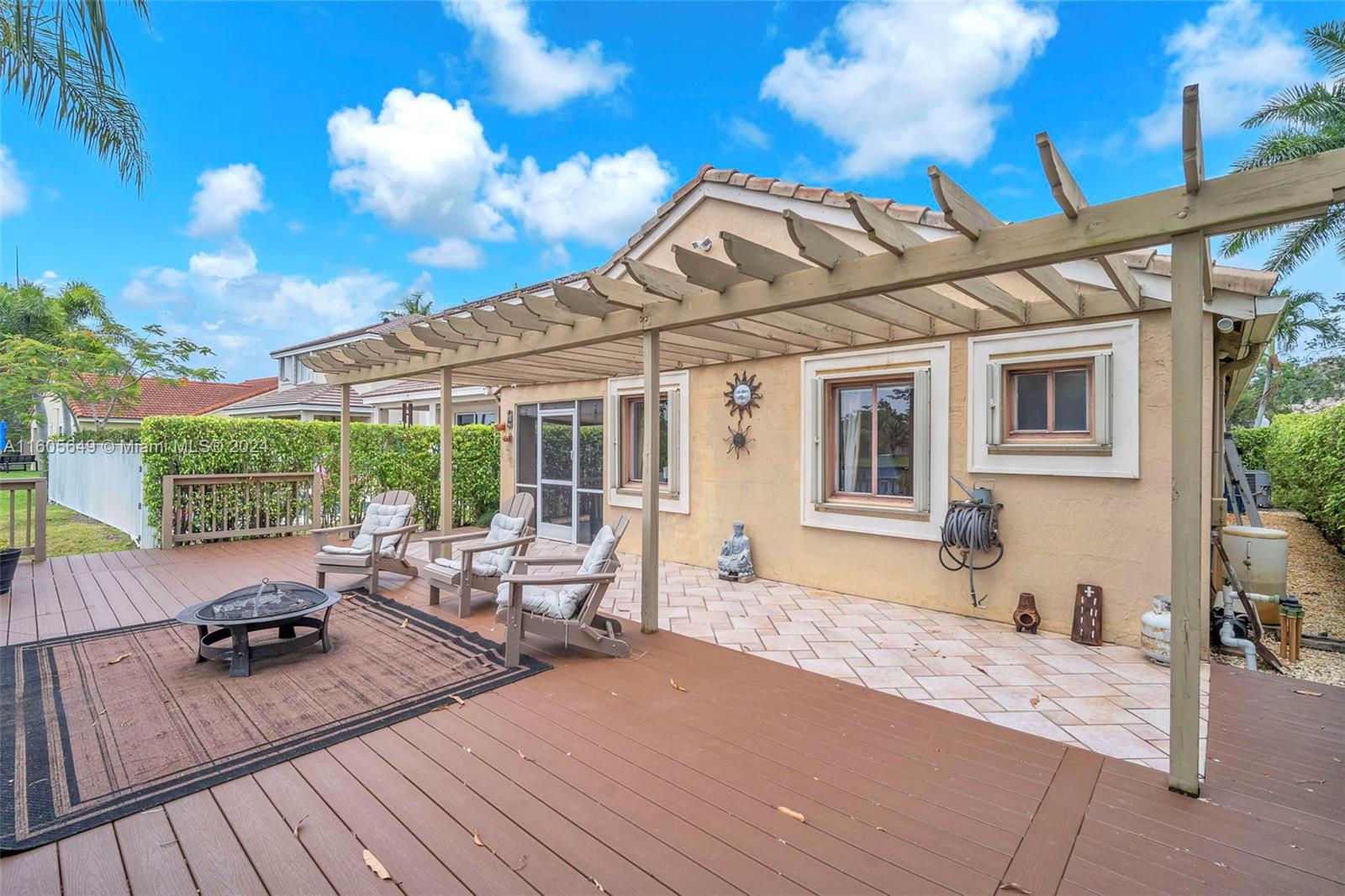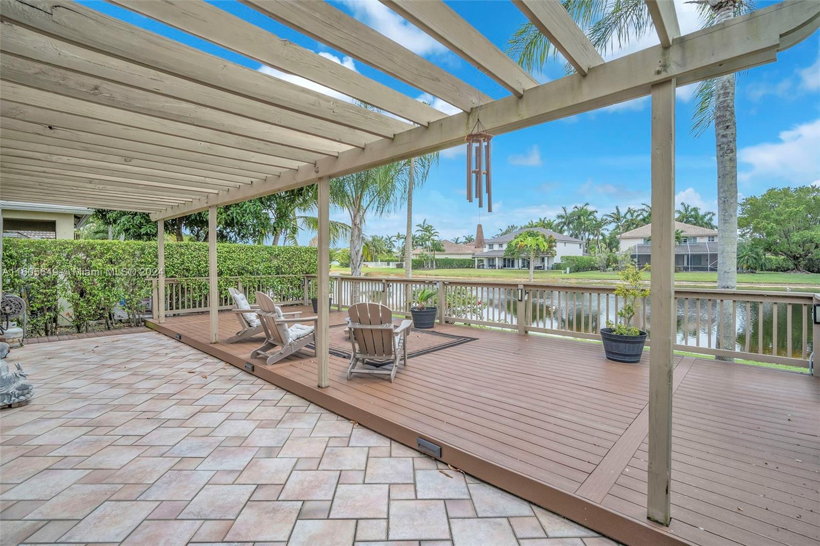This elegant 3 bed, 2 bath home offers a blend of luxury and comfort, with a range of high-end features and finishes throughout. All living areas feature large 18x18 neutral Italian marble providing a sophisticated and timeless look. All three bedrooms feature beautiful hardwood floors, adding warmth and elegance to these private spaces. The kitchen features top of the line stainless steel appliances along with wood cabinets and granite countertops. The bathrooms are covered in Italian tumbled marble, wood cabinets and granite countertops. The patio features an oversized deck complete with pergola overlooking a tranquil lake. This home combines luxury finishes with practical design elements, making it a perfect choice for those seeking both style and functionality in a beautiful setting.