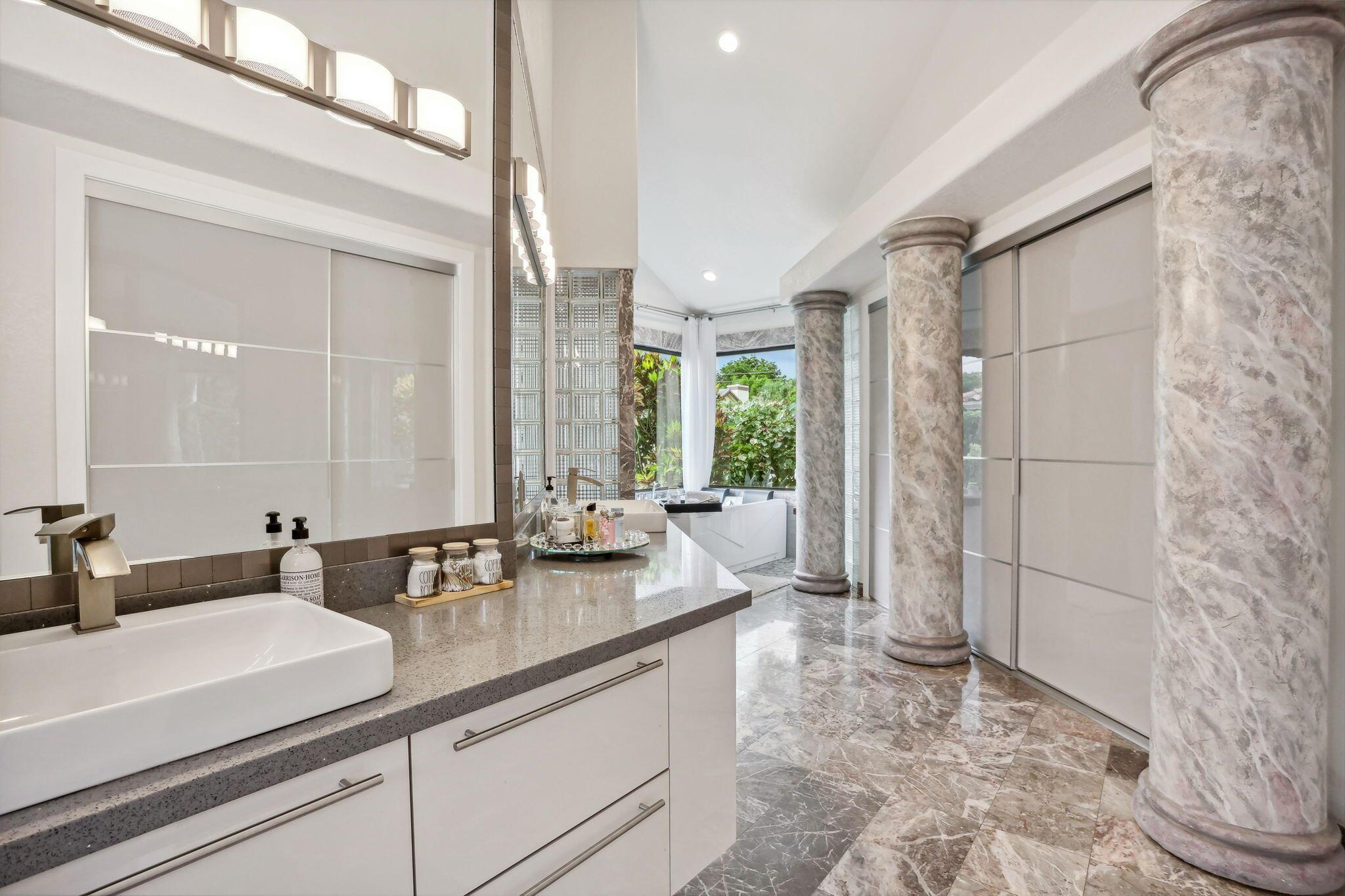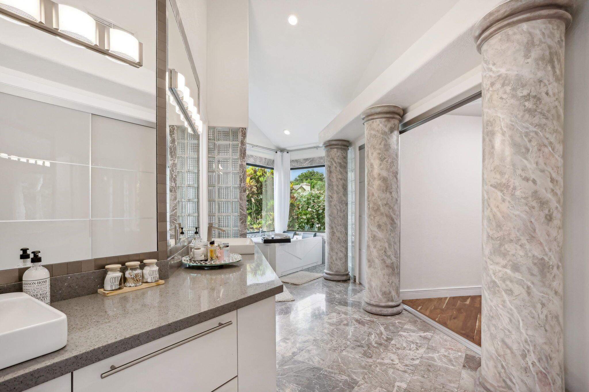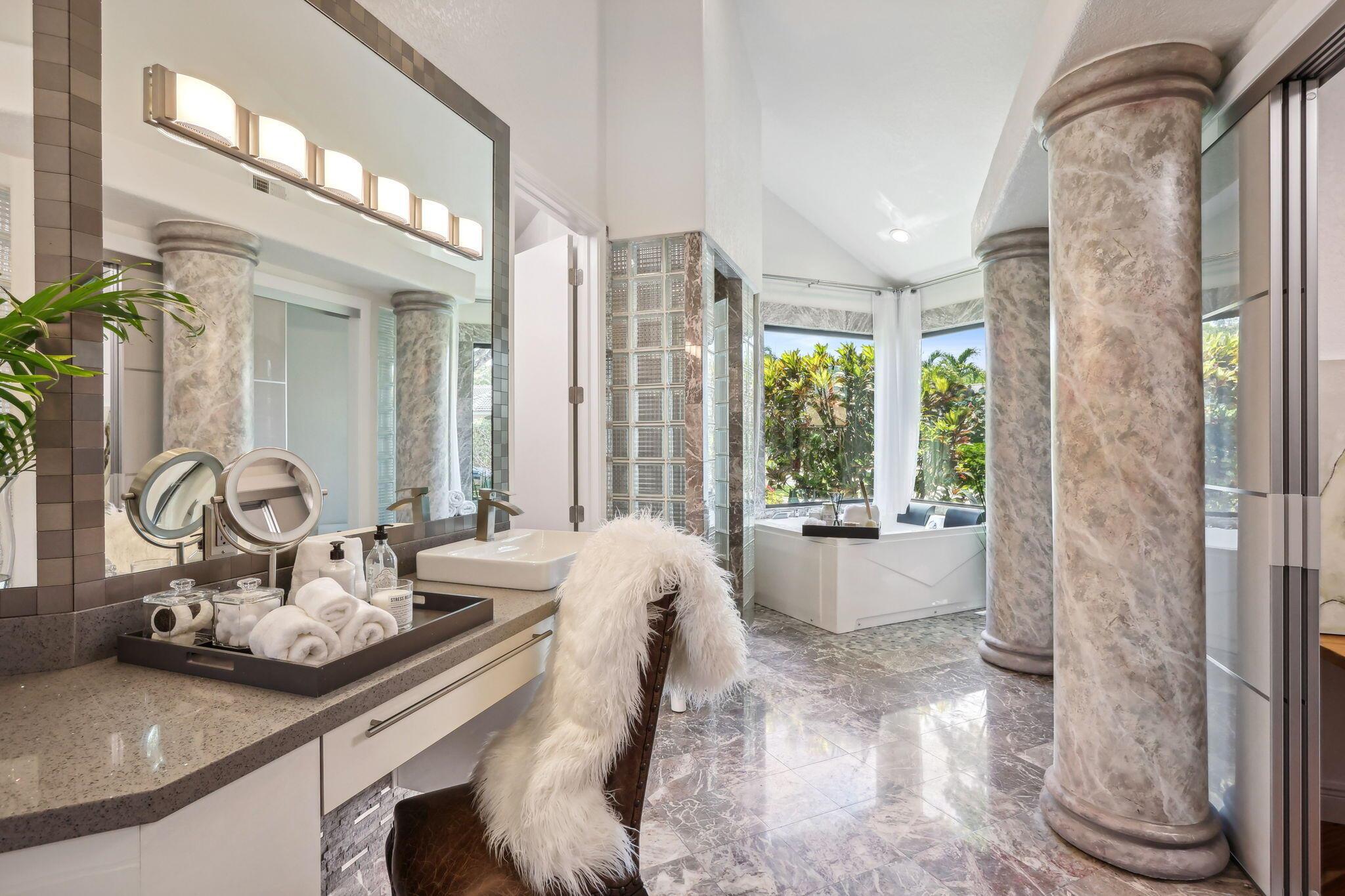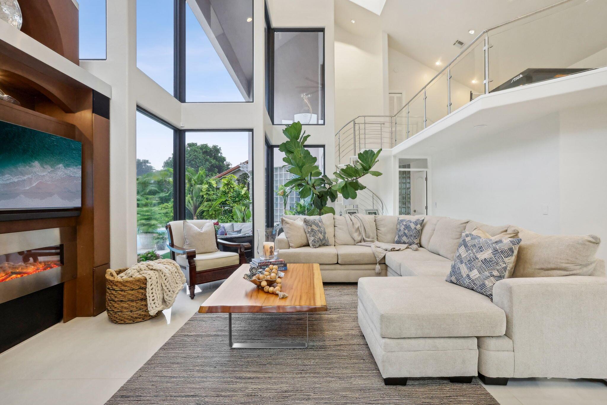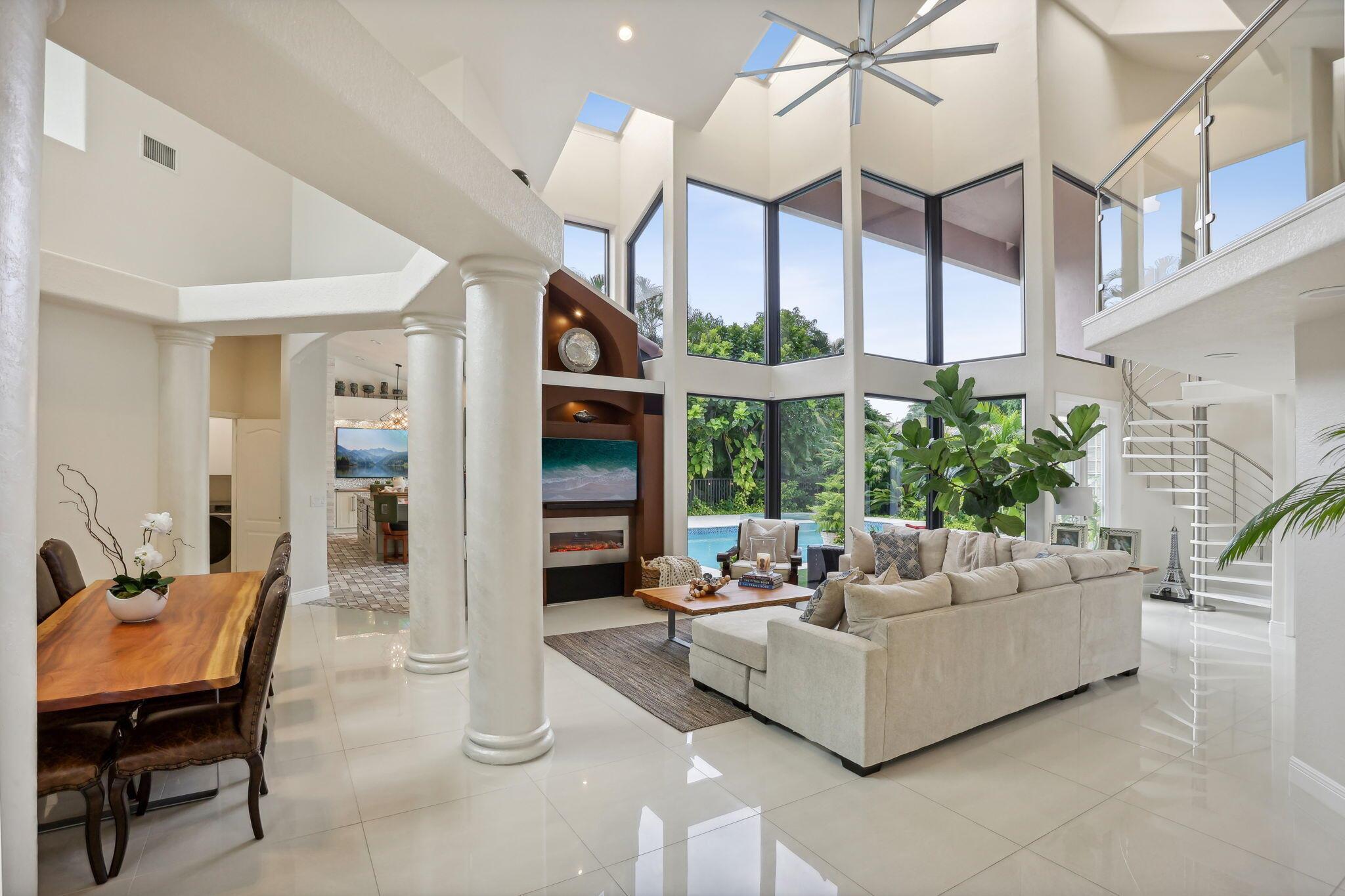The ''Dream Home'' you have been waiting for, A TRUE ONE OF A KIND in Colonnade, the sought after Central Boca community with an amazing park nestled in the center & A+ Schools. Don't miss this spectacularly renovated home with 3263 living sf & 3855 total building sf, all 4 bedroom & 3 full bathrooms on 1 level with a loft/Flex room on the second floor with contemporary stainless Steel & Glass railings. Light & Bright throughout, featuring stunning 20' cathedral ceilings with dramatic windows & skylights. This outstanding home is completely renovated, the kitchen features high end appliances & beautiful materials & accents throughout. New Roof, Complete expensive Hurricane/Impact windows & Doors, New Tankless Hot Water Heater and more, See Supplement for Details