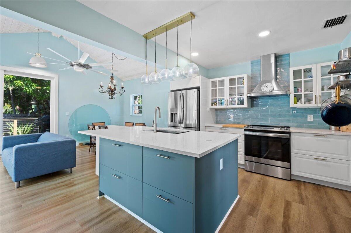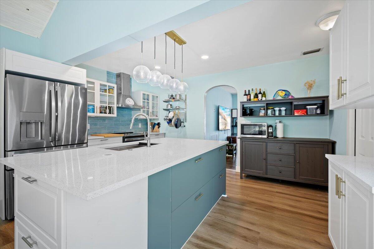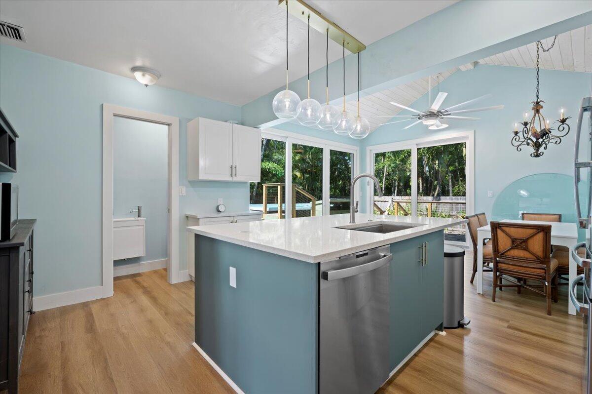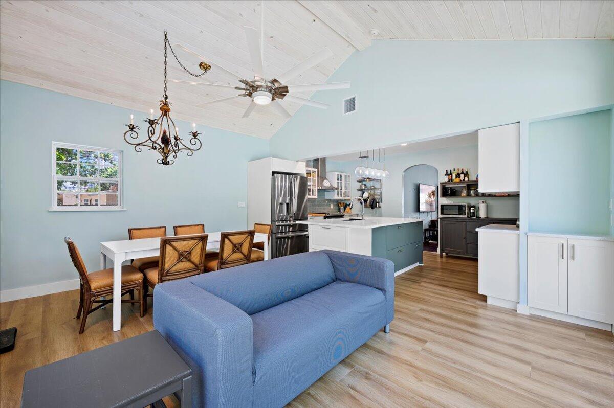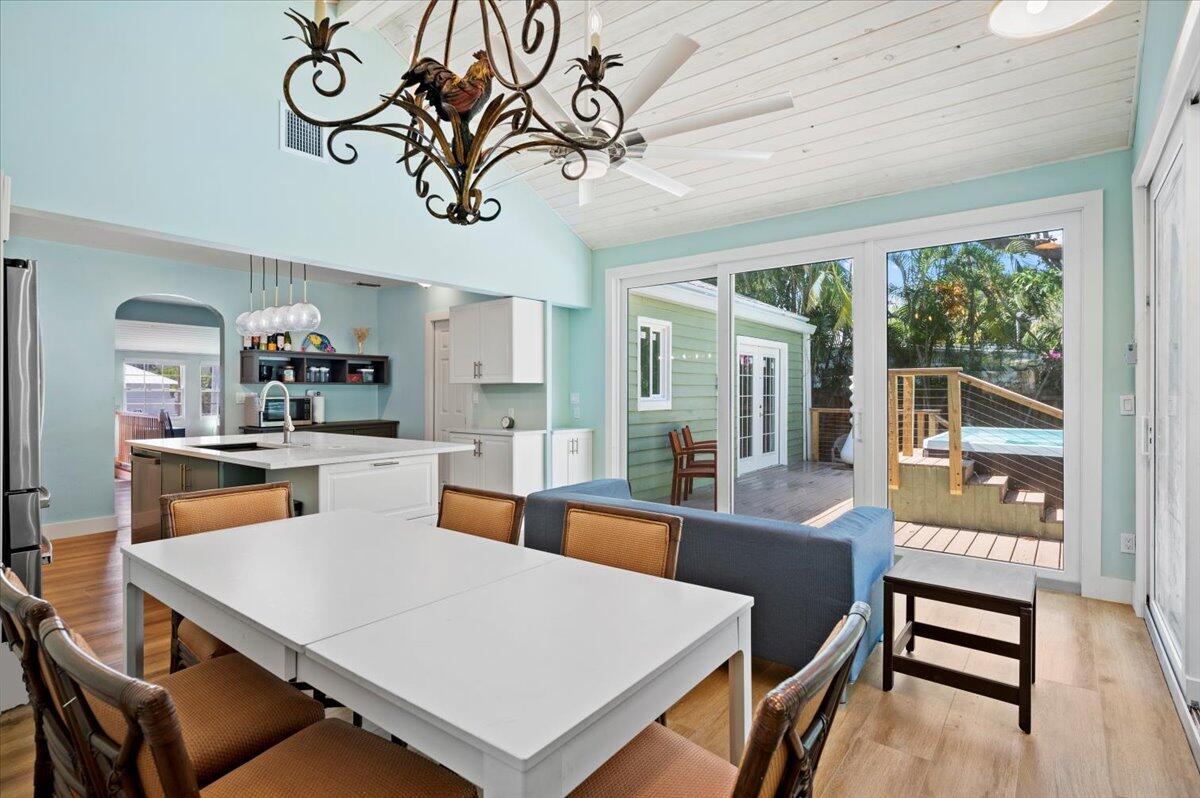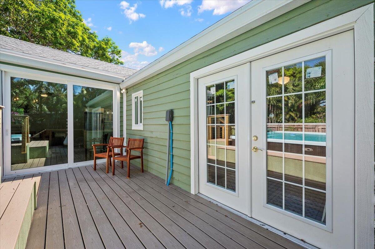 This charming two bedroom, two and a half bathroom cottage brings that charm of the Keys nestled in the desirable neighborhood of Northwood. The home has been thoroughly updated and expanded, the bright and airy kitchen has been completely remodeled, offering a gorgeous new island with beautiful quartz countertops, SS appliances, and stylish lighting. The addition off the kitchen provides dining and sitting areas with huge corner 9ft impact sliding doors that let in lots of light and provides views to the private new deck and pool. Relax in the spacious main bedroom with ensuite bath, walk-in shower, and French doors leading to the patio and backyard. Along with tasteful updates, this home boasts completely new electrical system, completely new plumbing, and a brand-new roof.