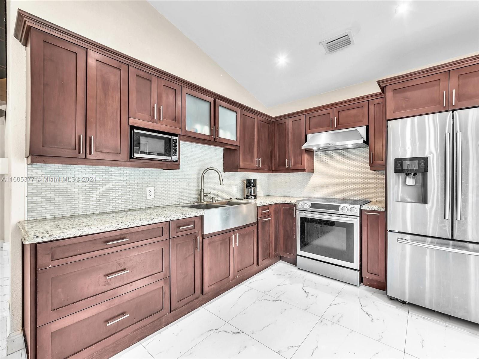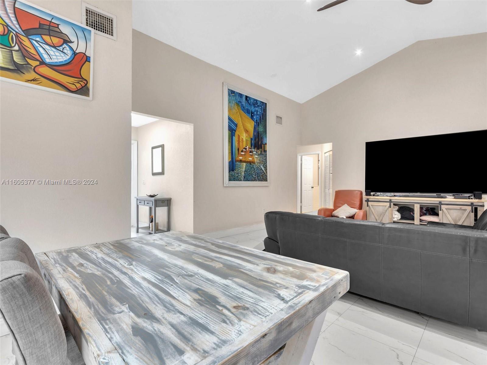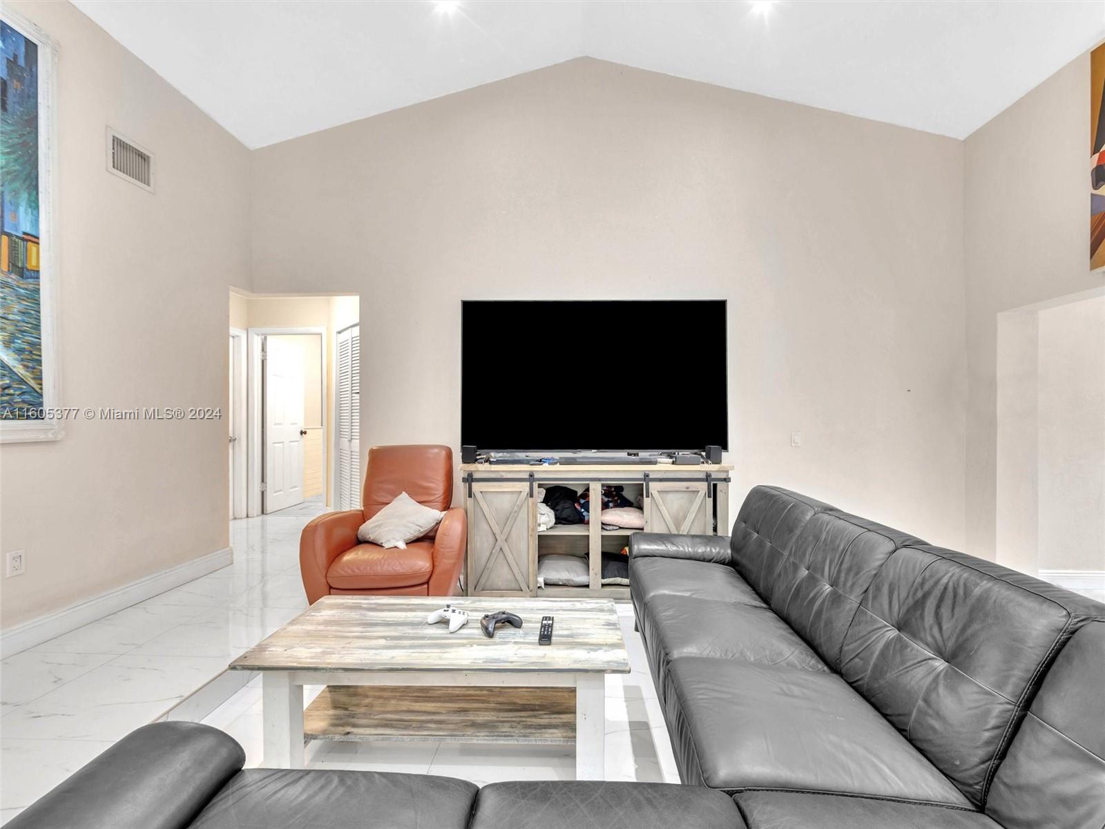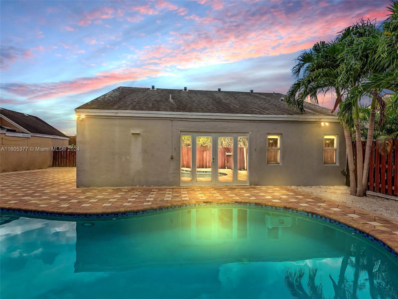 Spectacular Pool Home located in the desirable Lakes of Avalon in Hialeah, boasting a great floor plan a foyer entry, vaulted ceilings and an open concept style. Modern porcelain tiles throughout, along with lot of natural light create a bright and inviting atmosphere. Remodeled kitchen with SS appliances, All windows are Impact-rated for added security, spacious owner suite with updated bathroom and generous walk-in closet, guest bathroom has also been updated, a bonus room leads to a beautiful saltwater pool, fully fenced backyard with patio pavers perfect for gatherings and entertainment, Additional features include a 1-car garage with a full-size W&D, ample driveway very low HOA. The prime location offers great schools, shopping, recreation, and dining. This home is a MUST-SEE!!