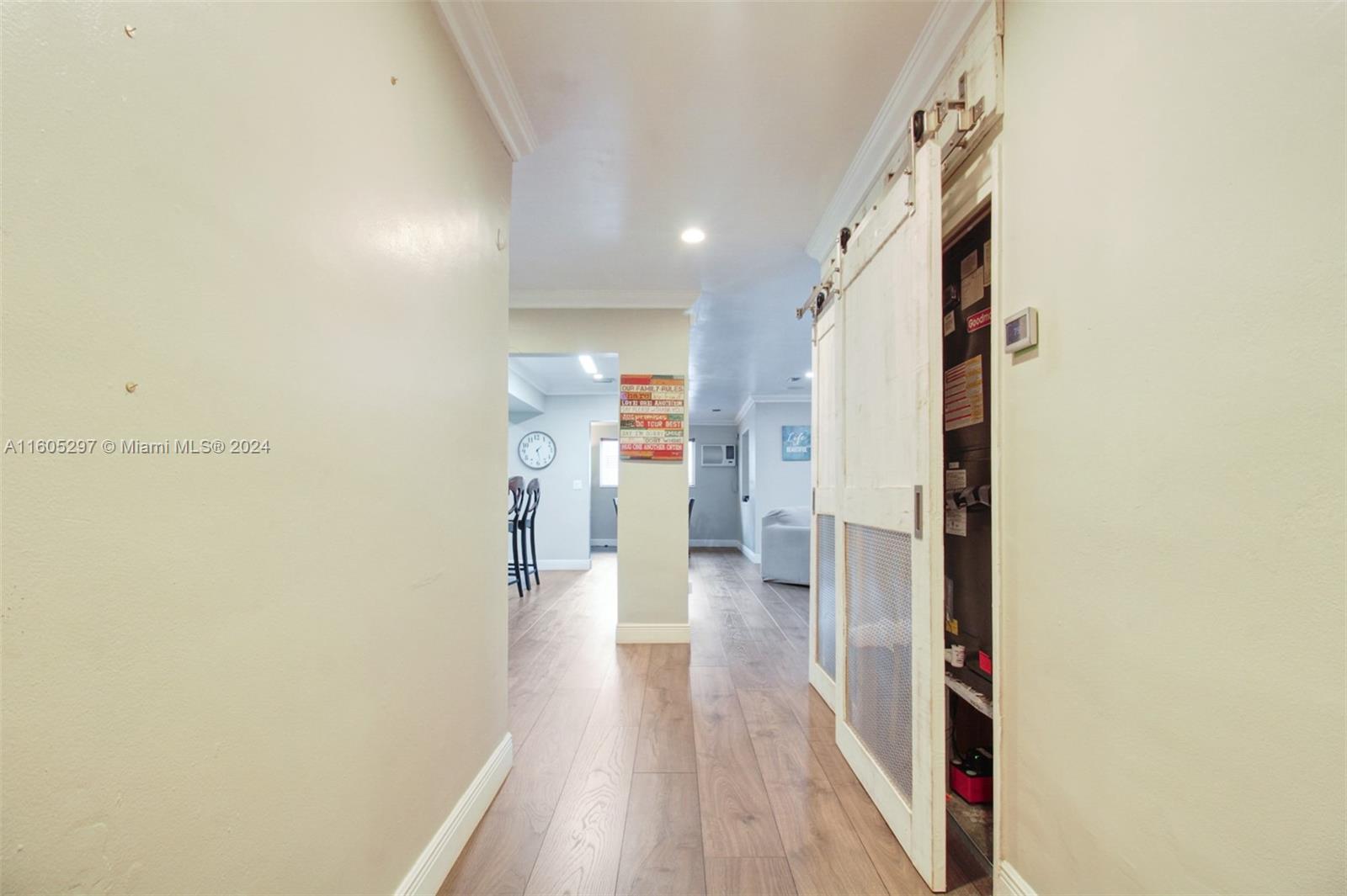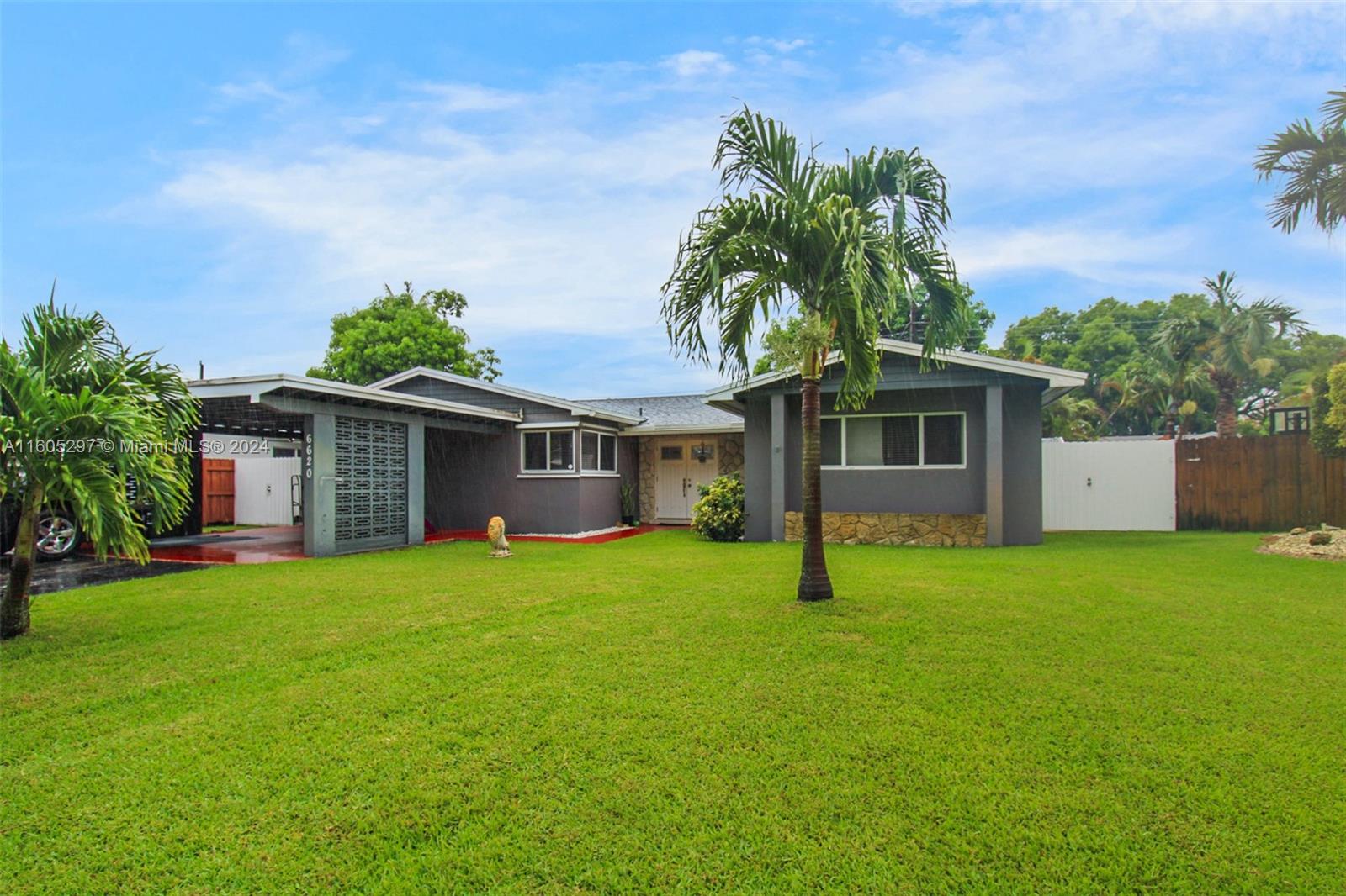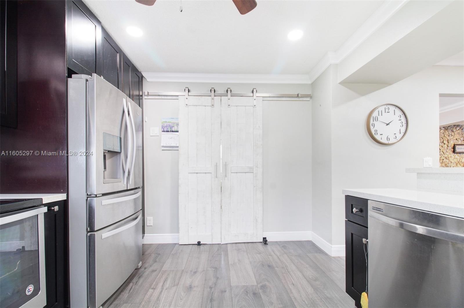 Single-family home. The kitchen is equipped with quartz countertops & stainless steel appliances, while Brazilian floors & elegant bathroom fixtures add a touch of sophistication throughout the house. The farm doors, newer roof, newer windows, shutters & updated electrical panel provide peace of mind for potential buyers. The pipes have been recently changed, adding to the home's overall appeal. Outside, the property offers two sheds & a fenced patio for added storage & outdoor living space. Inside, the home features a formal dining room & a den or bonus room that can be versatile for various needs. The primary bedroom has two walk-in closets & a spacious en suite, two additional bedrooms & a bathroom. Surround sound & ring alarm system. Close to Broward Community College & the Turnpike.