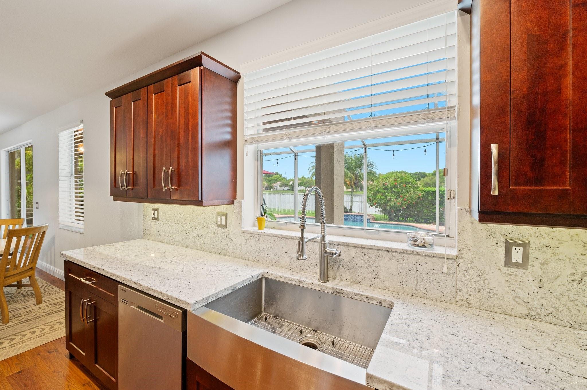 This exquisite 4 bedroom, 3 bathroom home exudes charm & elegance. The updated kitchen features stainless appliances, farmhouse sink & quartz counters. Primary bdrm is a sanctuary itself, w/ private balcony overlooking the lake & additional sitting room can easily transform into an office or serve as a 5th bedroom. Additional bedrooms are spacious w/ great closet space. Boasting a refreshing pool & screened in patio, it's ideal for entertaining. Recently painted exterior & new exterior lights enhance its curb appeal, while the aluminum fence surrounding the backyard provides both security & style. W/ a spacious 3 car garage providing ample storage space, this home combines luxury, functionality, and breathtaking views, promising a lifestyle of comfort & relaxation.