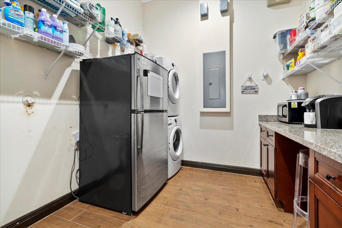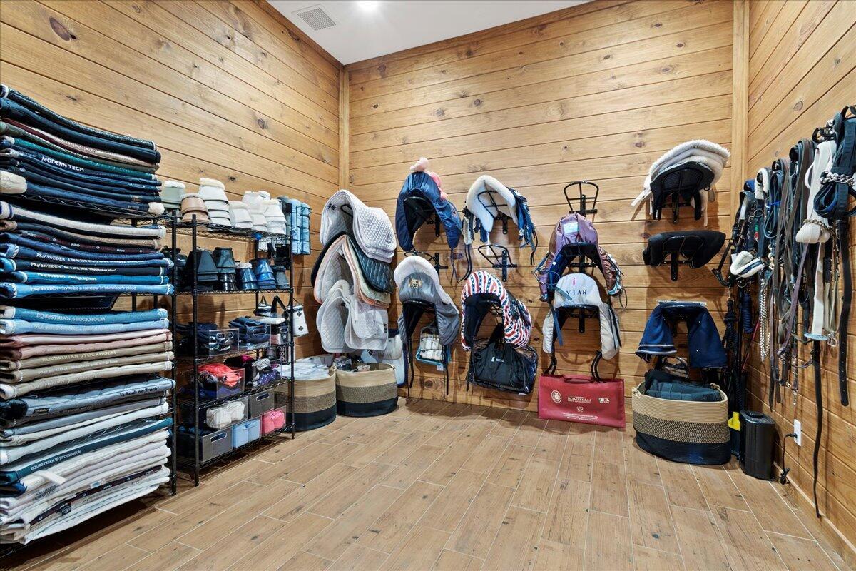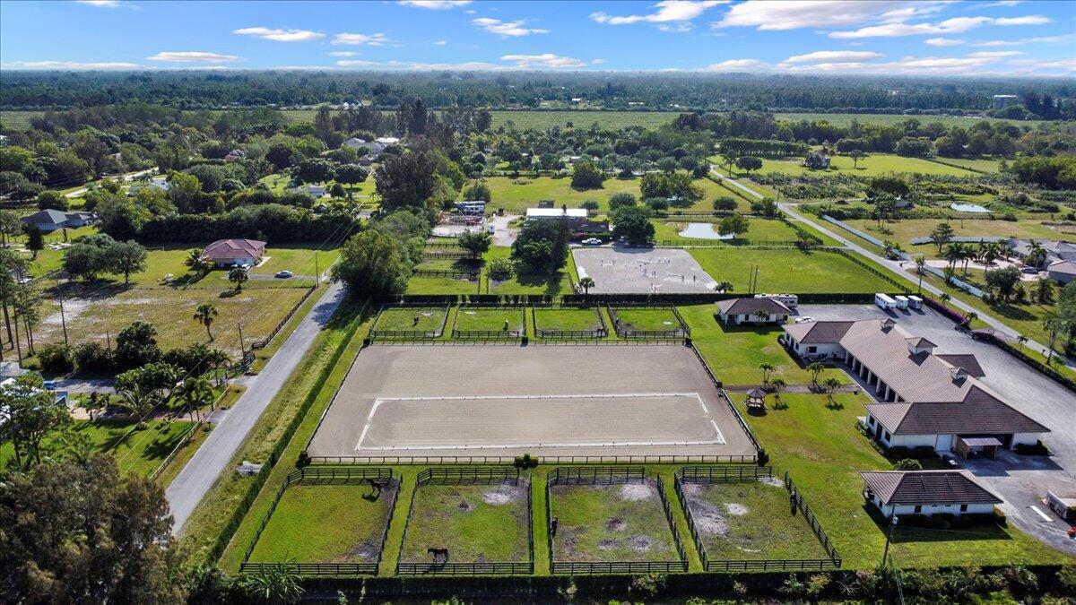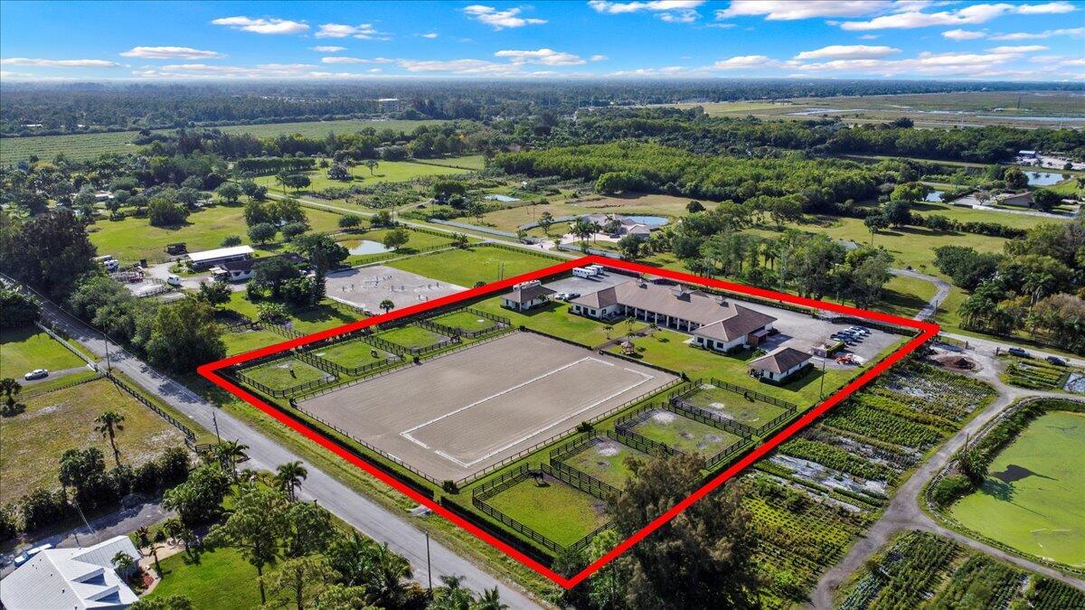 Located just a short drive to Wellington's horse showgrounds, this luxurious barn, built in 2017, is in impeccable condition. Situated conveniently on a paved road, the property offers a total of 24 stalls and 8 paddocks. Featuring 2 separate isles of 12 stalls each, with private access to premium amenities including an air-conditioned tack room, feed room, laundry facilities, a half bath, wash racks & 4 paddocks. The property is fully fenced with an automatic gate for security and ease of access, ample parking and shared use of a generously sized all weather arena with a covered viewing area. Additionally, this remarkable property also has two charming 2-bed, 2-bath cottages w/beautiful living arrangements, and 2 camper hookup spots for added convenience. A COVERED ARENA CAN BE BUILT!