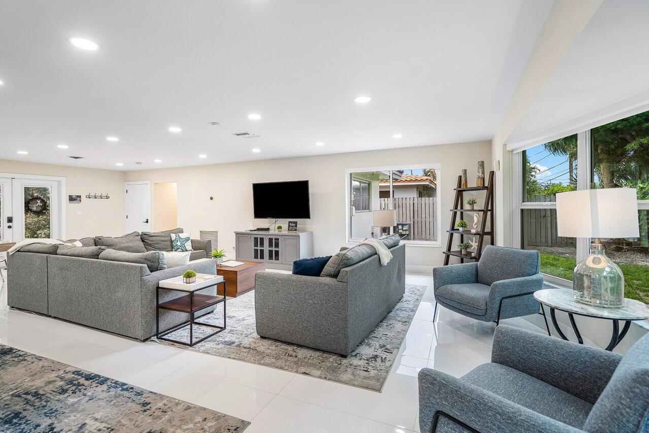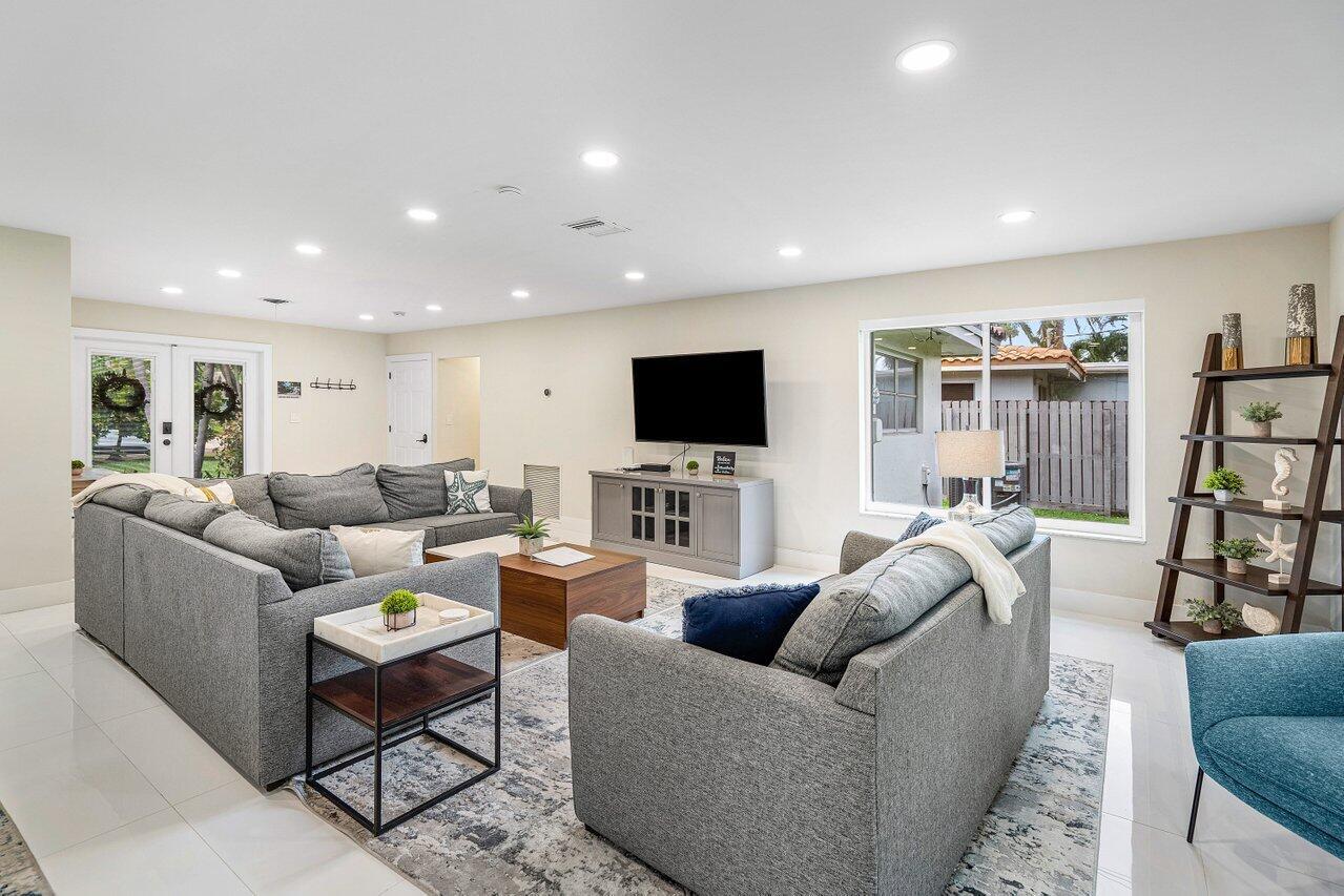 Come see this beautiful (3 Bedroom, 2-bathroom 2 car garage home on a corner lot in the highly sought after Imperial Point! This house is a true split floor plan featuring a fully renovated kitchen and an oversized master bedroom with a walk in closet. Additional features include an expansive open concept living room and kitchen great for entertaining, newly installed porcelain floors, updated bathrooms, impact windows and doors and a massive pool and fenced in backyard. Desirable non-hoa community located just minutes from great restaurants, shopping, beaches and more!