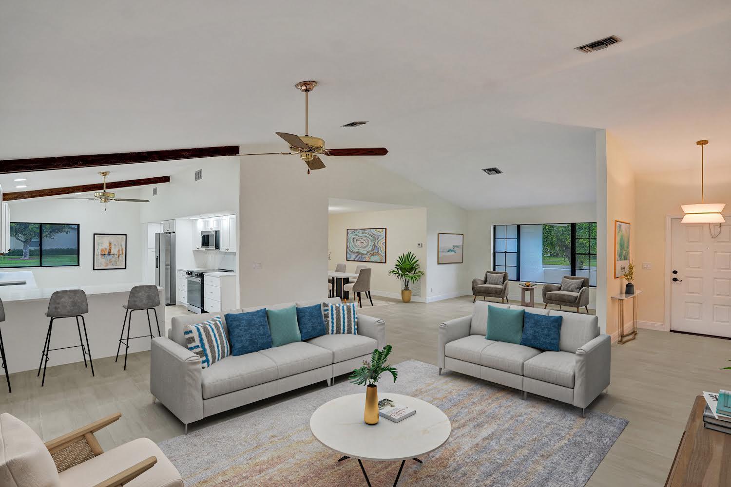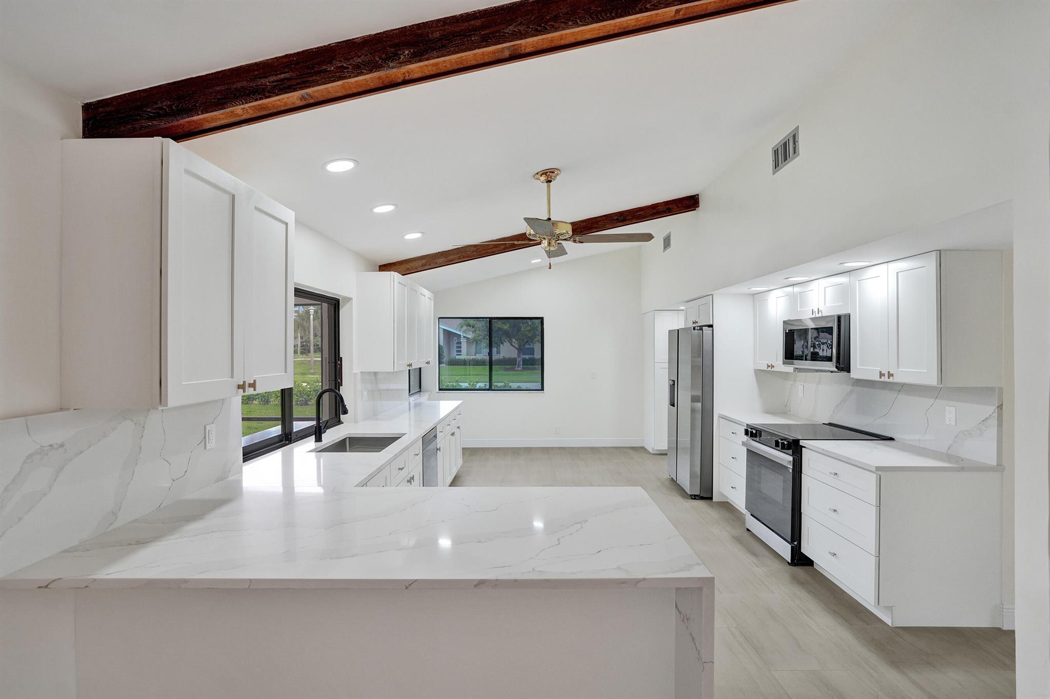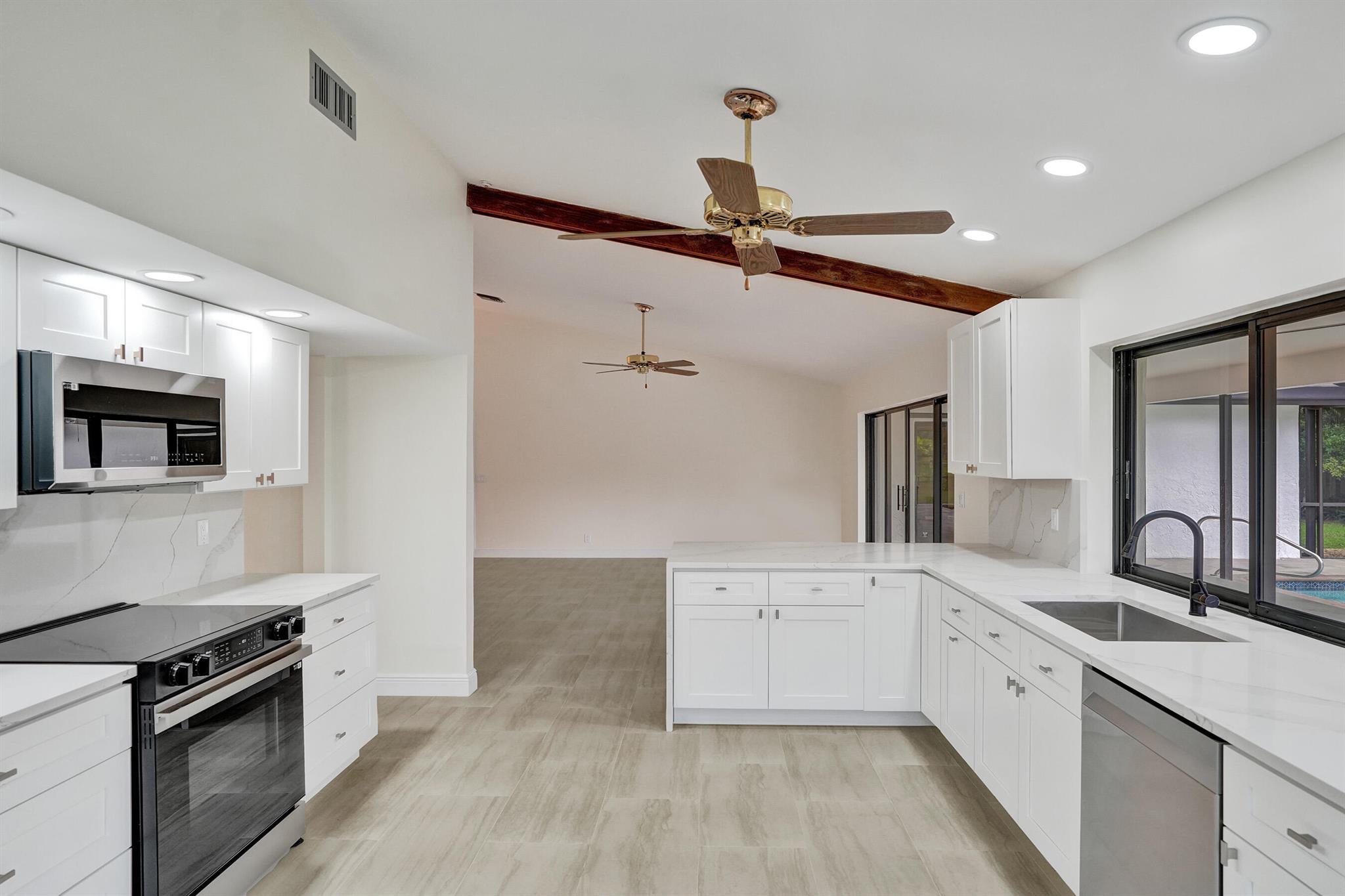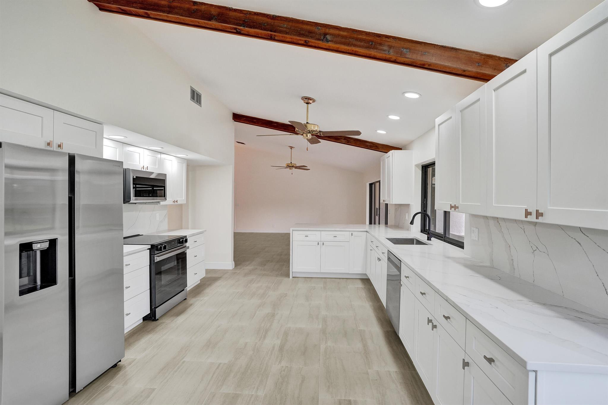 Welcome to this exquisite, fully renovated home, nestled on one of the largest lots in this subdivision! This property boasts a complete renovation, featuring a new roof installed in 2021 and a newer A/C system. Step inside to discover brand-new stylish tile flooring throughout, complementing the modern aesthetic.The kitchen is a chef's paradise, completed with new state-of-the-art appliances, stunning stolid white storm gold quartz countertops, and sleek new cabinetry. Both bathrooms have been fully updated with contemporary fixtures, elegant tile, and chic finishes, offering a spa-like retreat.The entire home has been freshly painted inside & out, ensuring a pristine and inviting atmosphere. Along with numerous other upgrades which you can find the attached document on the MLS.