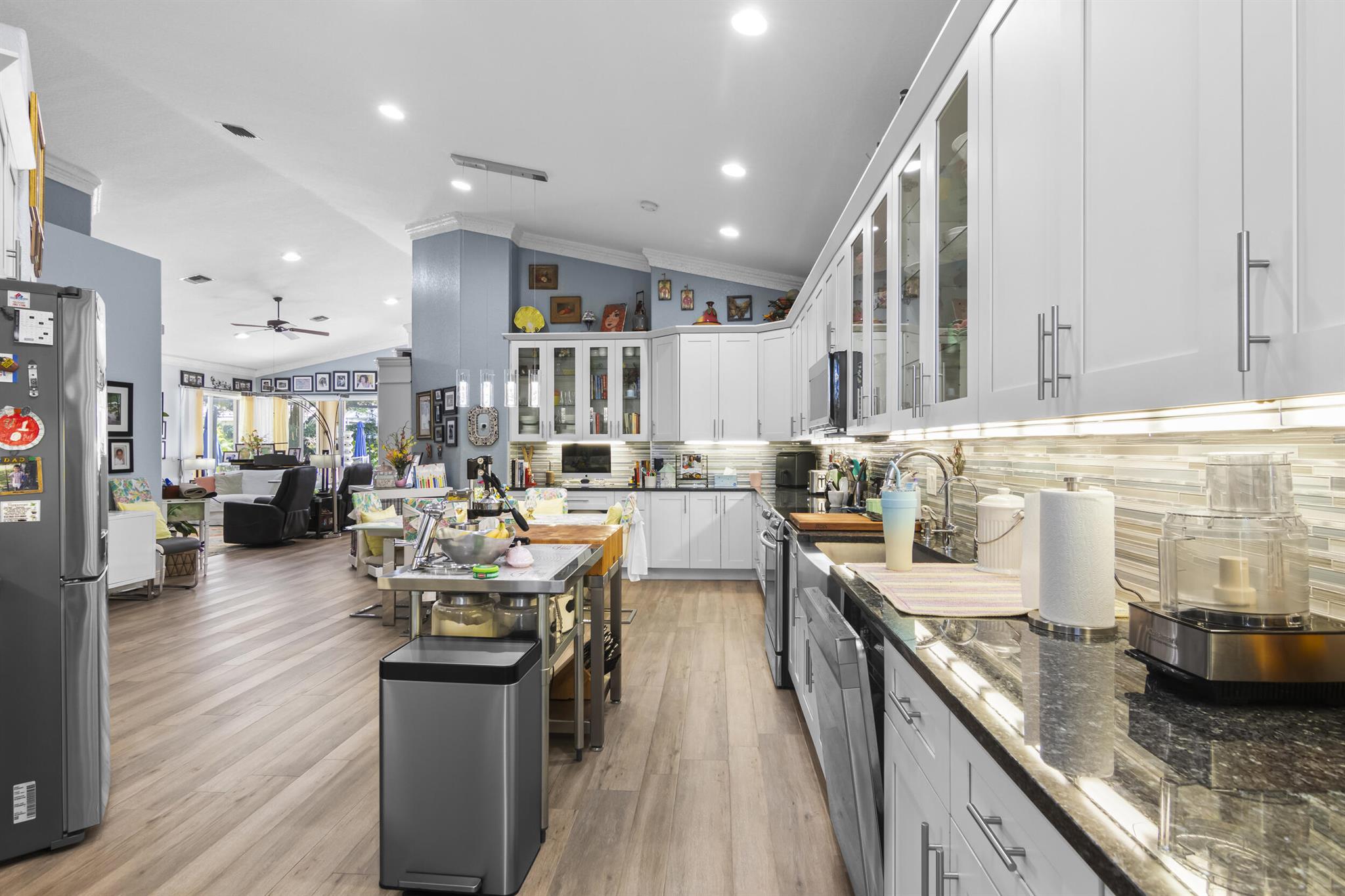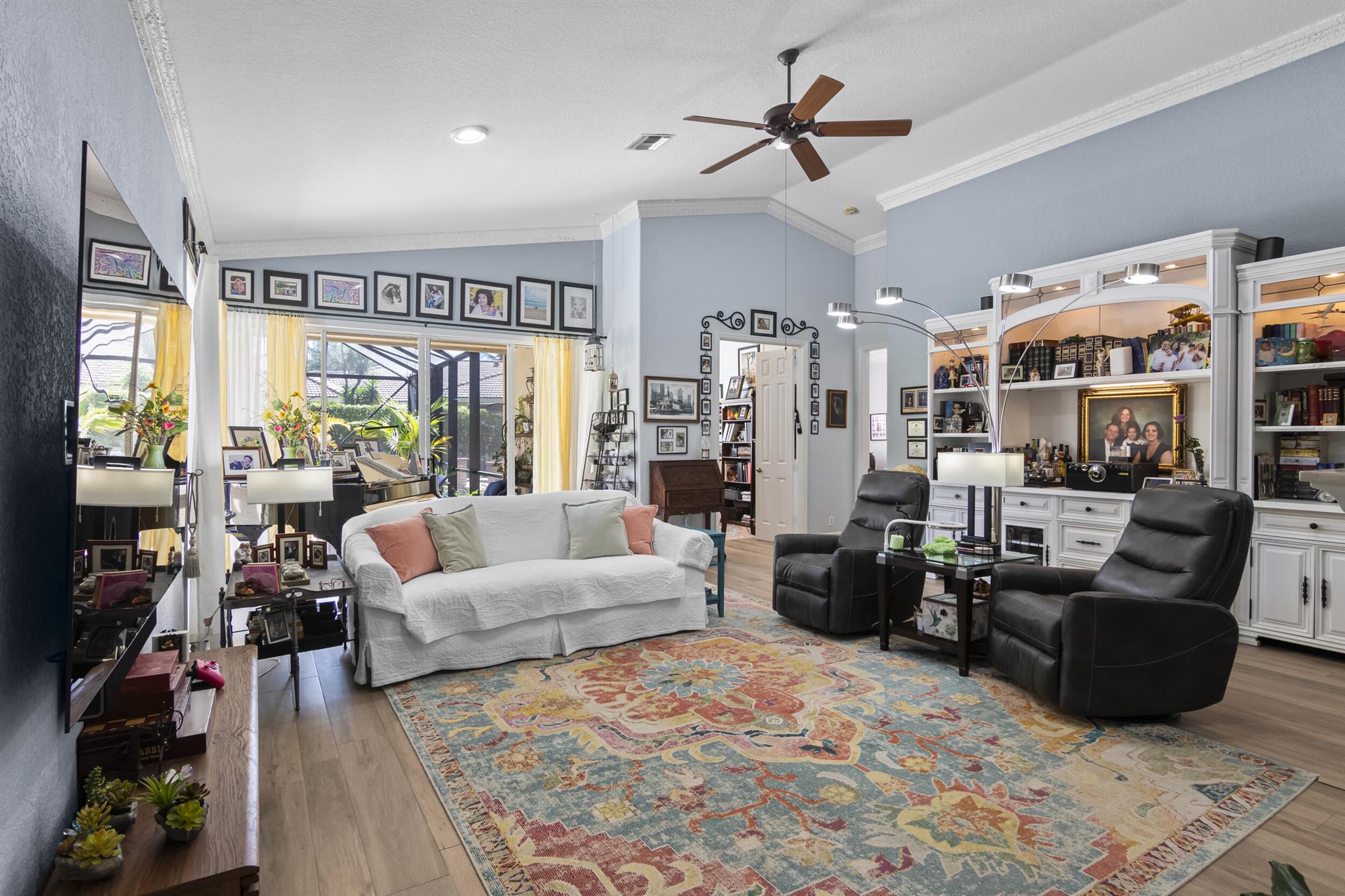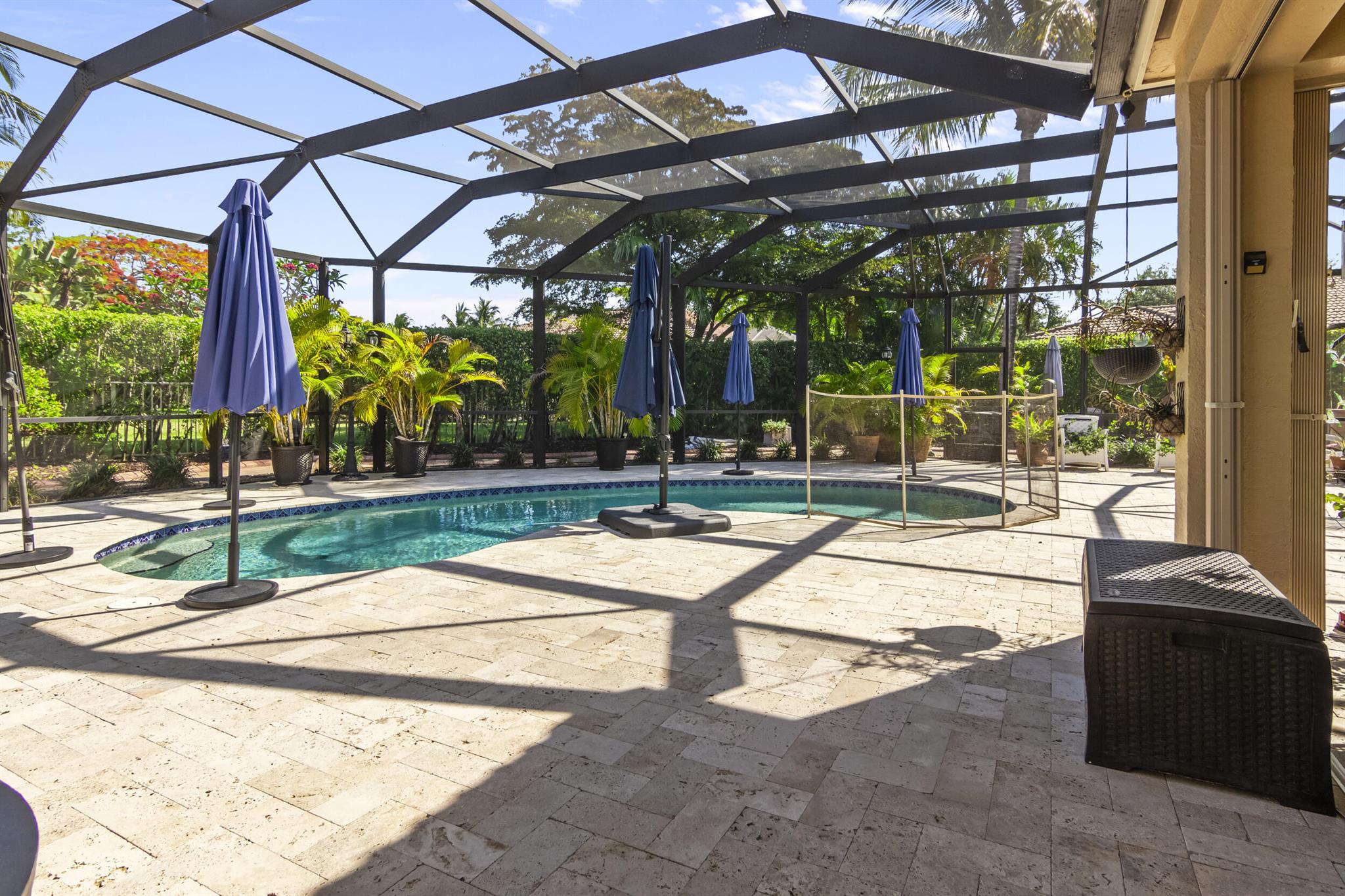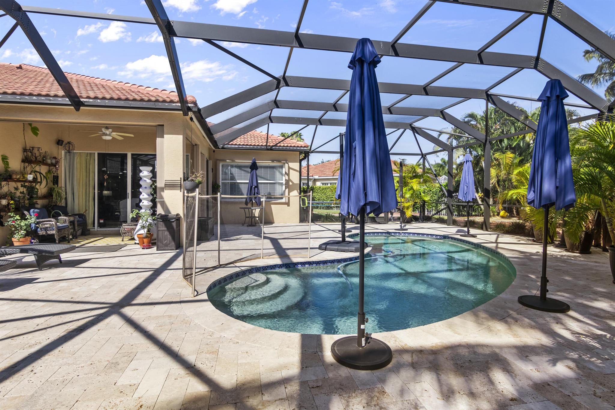 Incredible ANDROS ISLE 2350 ASQ 3 Bed 3 Full Bath with 2 Ensuites and Split Bedrooms. Has Office or 4th Bed. Home has been fully renovated with Amazing 1500 ASQ screened private pool Area. NEW ROOF 23 New H20 Heater If you like to entertain this is your dream home. The heart of the home, the open Kitchen dazzles with granite countertops, shaker cabinets, and an abundance of storage space. High Ceilings and Imported porcelain tile flooring throughout adds a touch of sophistication, while crown molding elevates the space with timeless elegance.Despite being a half duplex, this home exudes the grandeur and spaciousness of a single-family residence, making it larger and more luxurious than many others in Andros Isle. COATED Garage Floor.