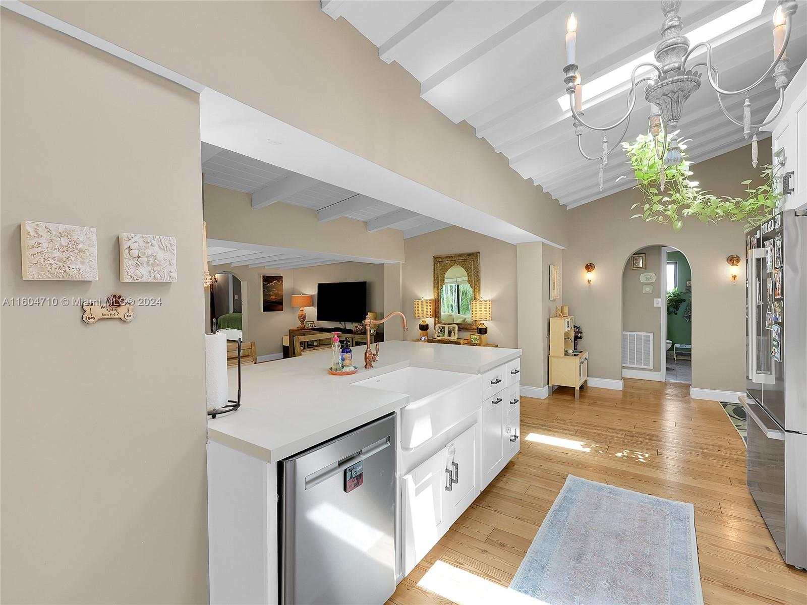 Mediterranean Modern Masterpiece on majestic Normandy Isle. A whimsical ambiance imbues this property from front to back and everywhere in between. An absolutely special home featuring wonderfully private & gated front and back yards, perfect for summertime BBQ's and play dates, a sparkling, wide-open quartz & stainless steel kitchen custom-built for entertaining and usability, immense walk-in, built-out closets in every room and a brand-new tiki hut in the back yard to cool off under the sun. This home checks every box and hits every note. New roof, impact windows, 4 ample beds & 3 full baths, vaulted ceilings, synthetic grass for virtually no maintenance, an enormous primary suite and more. Normandy Isle is idyllic with pocket parks on every block & cul-de-sacs on both sides. Call today.
