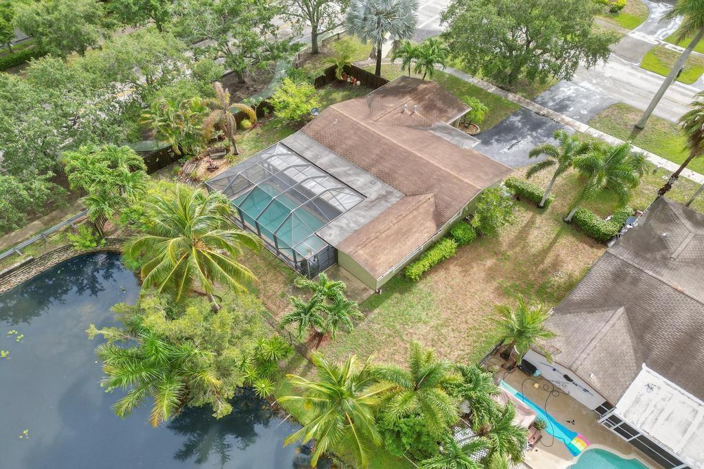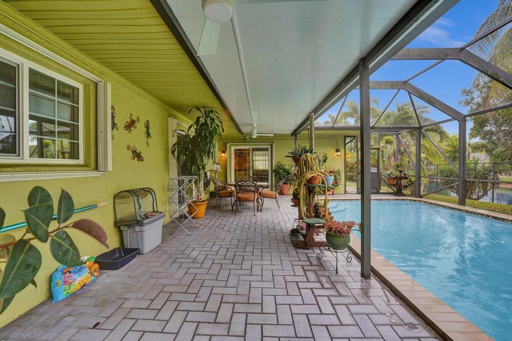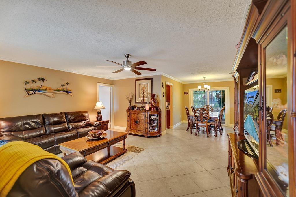 Welcome to this beautifully updated pool home in the highly-desirable Windward Isles neighborhood! This property has been lovingly-maintained & tastefully updated featuring an upgraded kitchen with quartz countertops, custom wood cabinetry & a gas range. Tile & laminate wood flooring throughout the home, accented by crown molding, adds a touch of elegance to the living spaces. The split floor plan offers privacy & convenience and every room is bathed in natural light, thanks to the impact windows & doors that adorn the home. The newer A/C & water heater provide peace of mind & energy efficiency. Step outside to the backyard oasis, where a sparkling pool awaits with a screened enclosure & oversized corner lot with water views, offering the perfect spot for relaxation & entertainment.