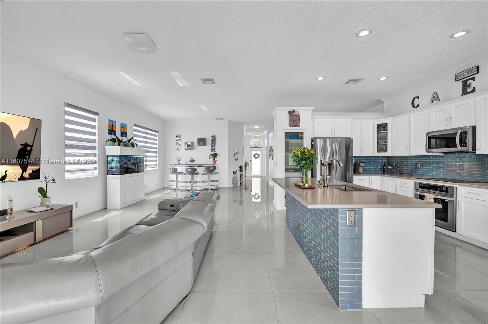 Beautiful completely upgraded home in the very quiet neighborhood of Encantada in Pembroke Pines. 4 bedrooms with 3 full bath, split plan New roof 2020, all new impact windows, kitchen cabinets and all appliances upgraded. Cabinets in the Laundry room area. Encantada is a very sought after, guard gated community with a beautiful pool and lowest HOA in the area. The house has a very large lanai/terrace overlooking a lake/canal.