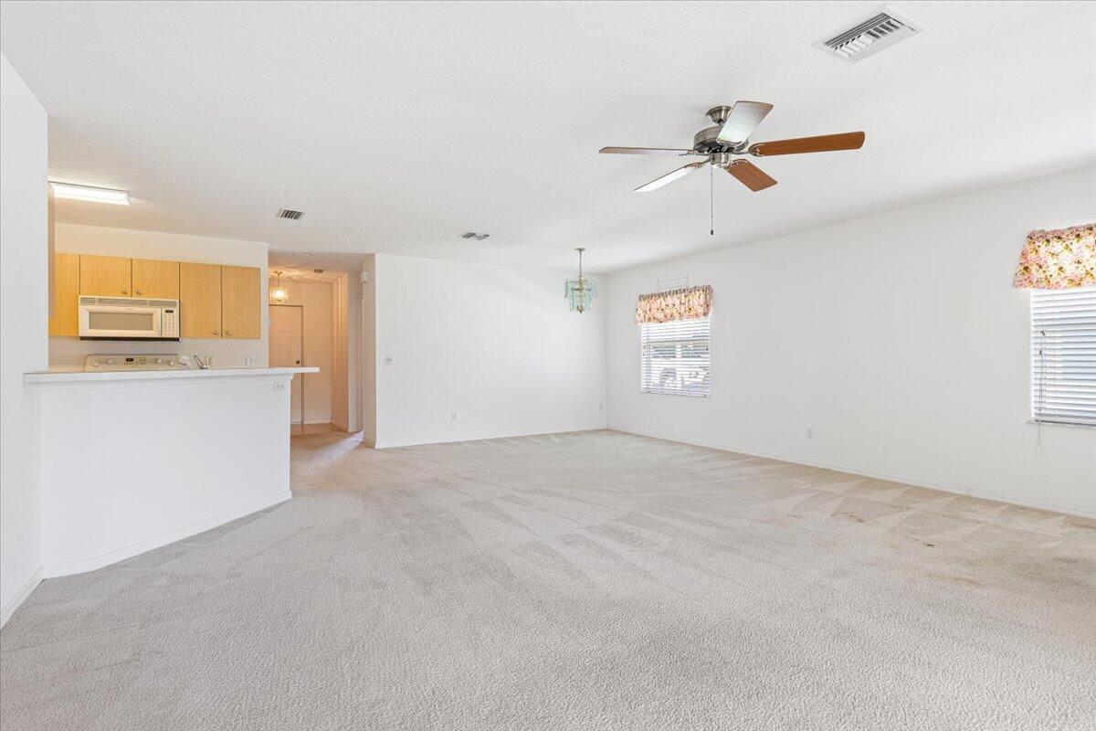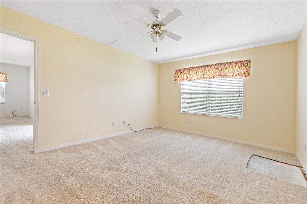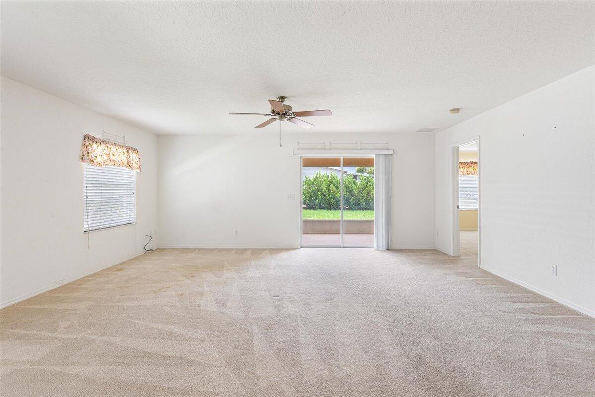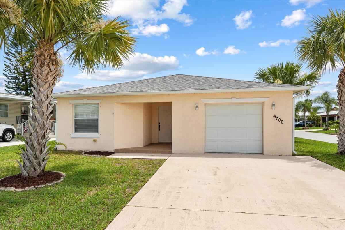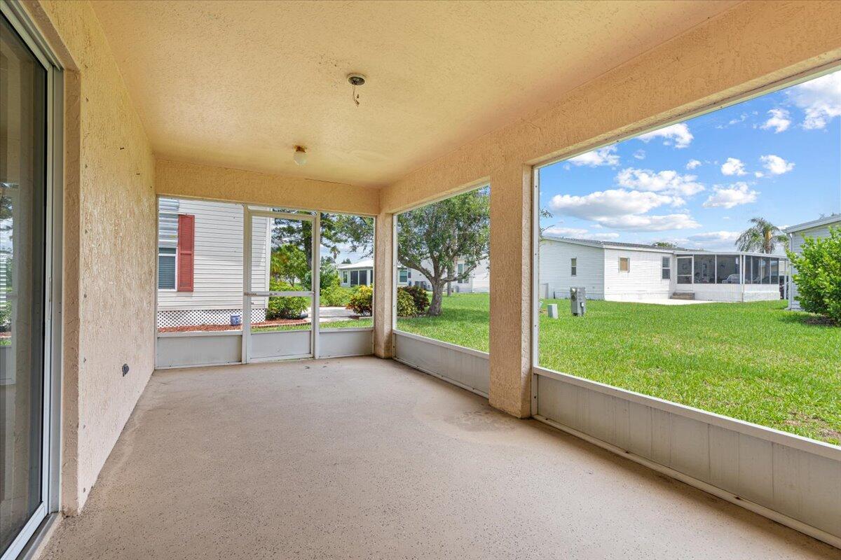 Move right in to this 2 bedroom, 2 bath, 1 car garage. This home is priced to sell. Corner lot. Spacious screened in patio. Split floor plan. Open and airy home. A/C replaced in 2018. Roof in good shape. Hurricane shutters for entire home. Spanish Lakes Fairways is an active 55+ adult community offering endless amenities, including 18 hole golf, tennis, heated pool, clubhouse, cards, billiards, arts & crafts room, sauna, library, gym, ping pong, tennis, pickle ball and more. Conveniently located near I-95, shopping & dining, Vero Beach, Hutchinson Island, beaches and more. Land lease also incudes lawn care, trash removal and full use of all amenities.