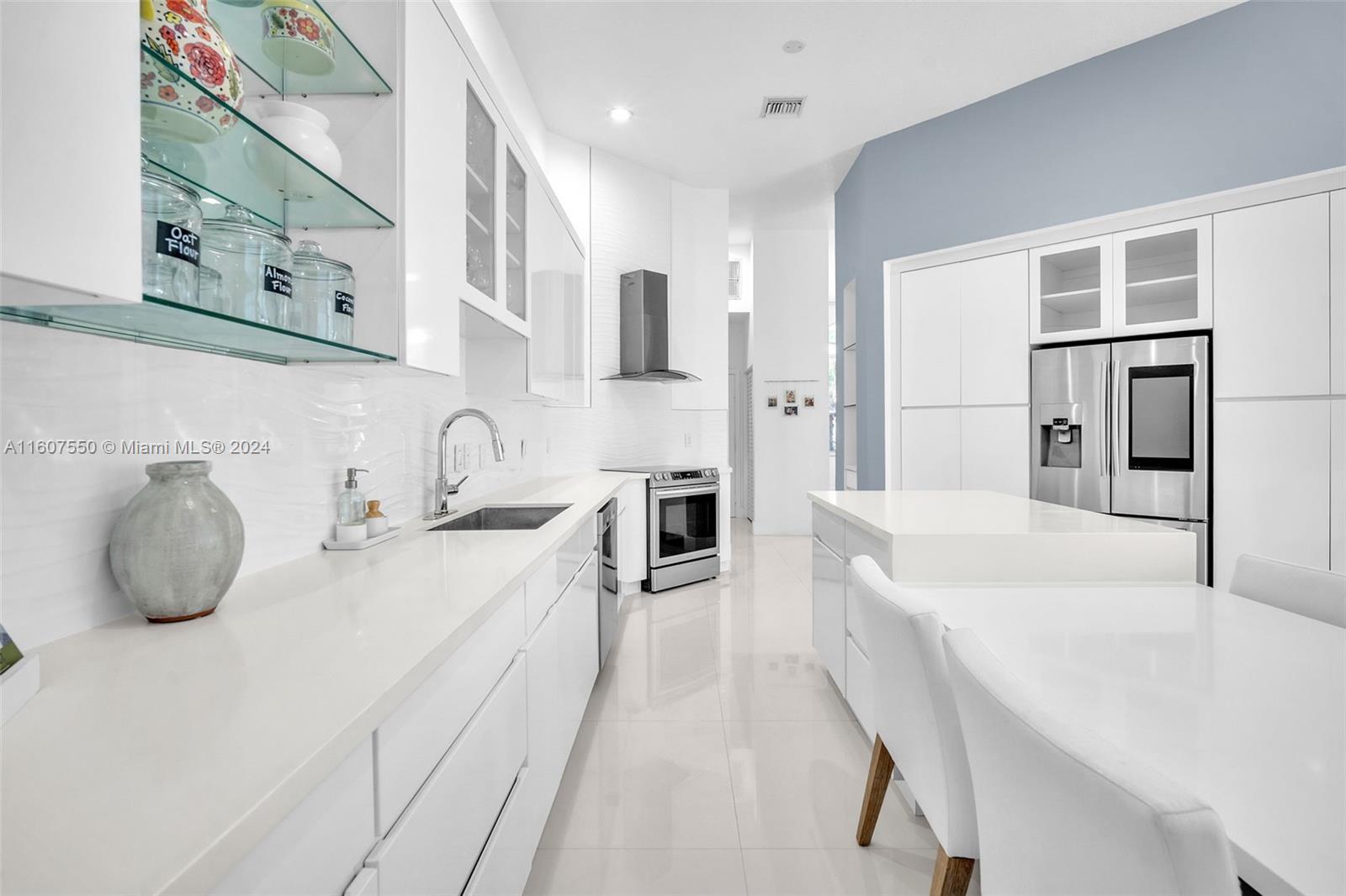 FULLY REMODELED POOL HOME in WESTON HILLS. Luxurious tall ceilings and high-end finishes from the moment you walk in. ->ROOF IS 2017<- BRAND NEW EAT-IN KITCHEN features WHITE QUARTZ countertops, SAMSUNG SS appliances, and CUSTOM-BUILT glossed white cabinets. Multiuse GIANT ISLAND is perfect for cooking, dining, and entertaining. ELECTRONIC BLINDS in family room! All bathrooms include BRAND NEW FLOATING VANITIES with "touch" light-up mirrors and newly tiled showers. You need to step into this massive principle bathroom to appreciate it. Exterior features include FULL ACCORDION SHUTTERS, a completely screened in pool, and plenty of space for relaxing and entertaining. Pool pump, pool heater, and A/C are 2017. EASY TO SHOW. Can close fast.