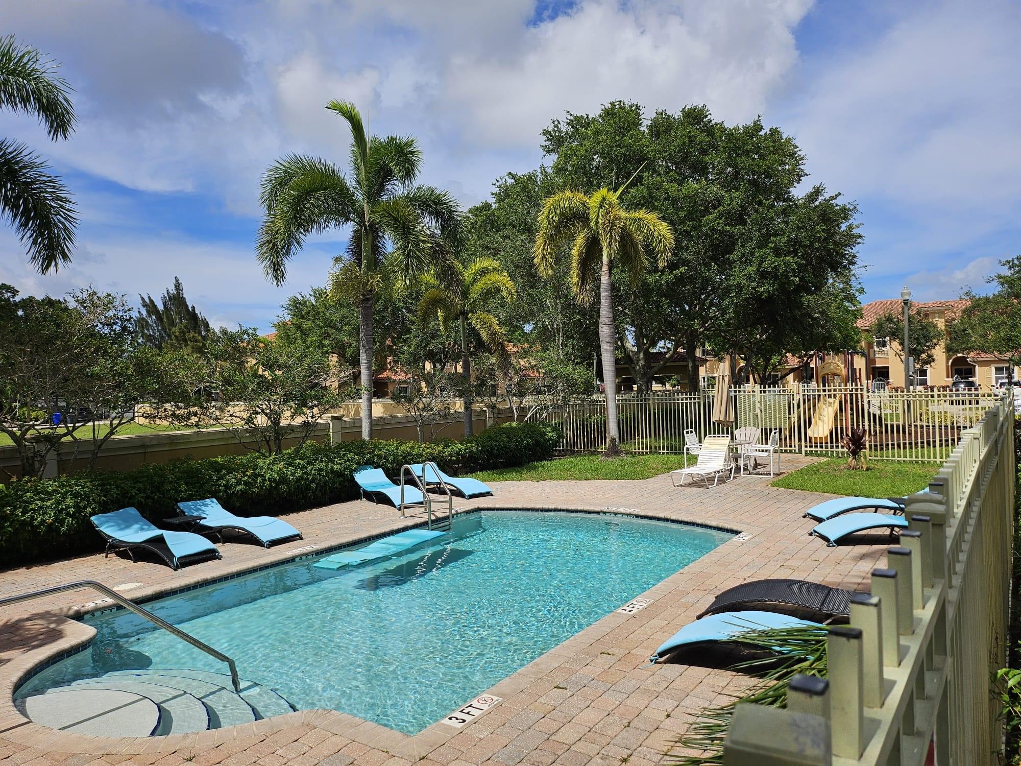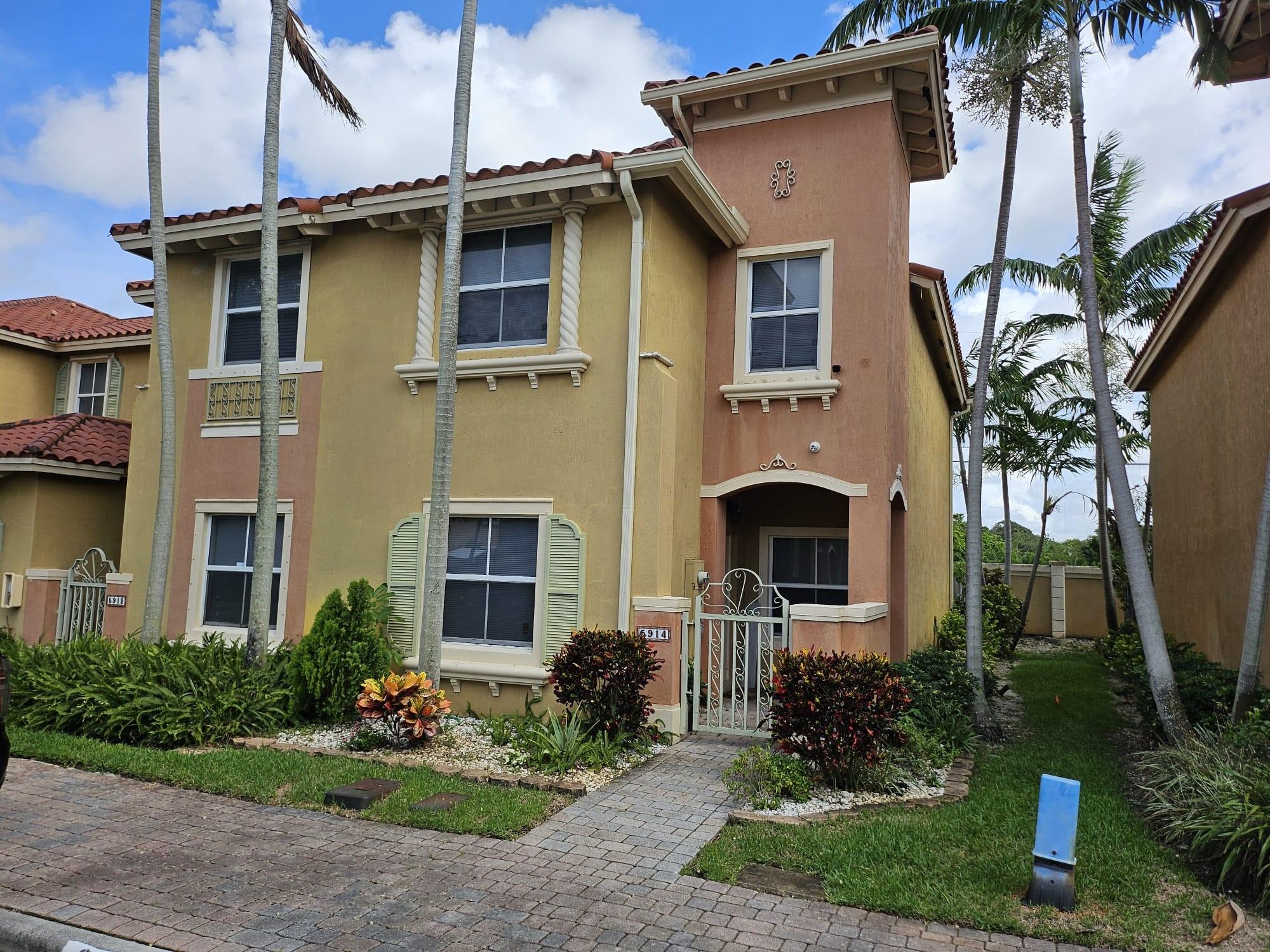 Well maintained 3/2.5 2 story townhouse corner unit in a gated community. The property features newer appliances, formal dining area, family room, living room, laundry room, half bath and kitchen on the first floor. All bedrooms are on the second floor. Private fenced yard with roll out awning and storage shed. The property is wired for generator in the event of power outage. There is one deeded parking spot and many guest parking spaces, community pool and tot lot. The property is located in close proximity to schools, shopping, places of worship, a variety of entertainment, Hard Rock Stadium, major airports, and easy access to major highways.