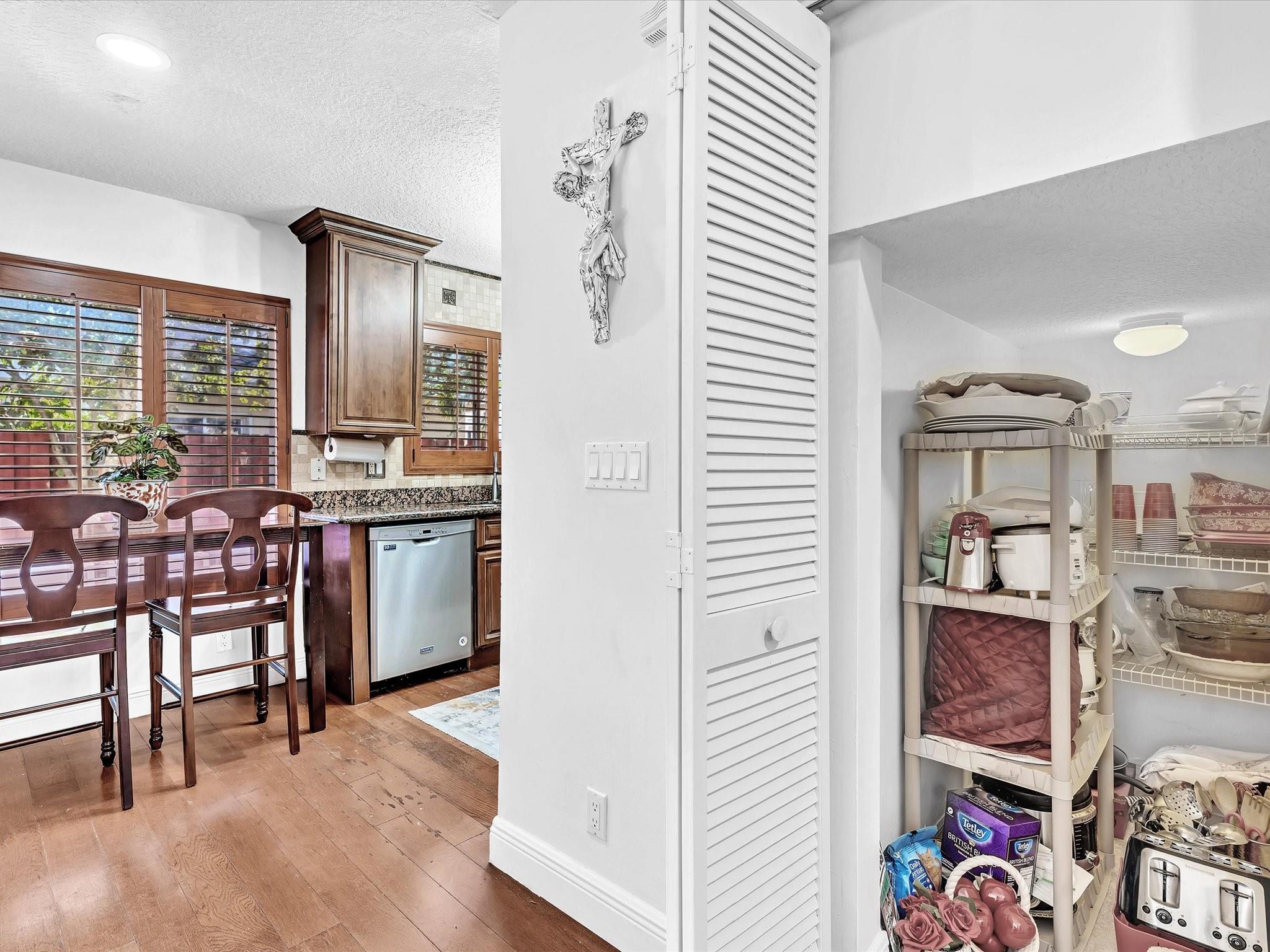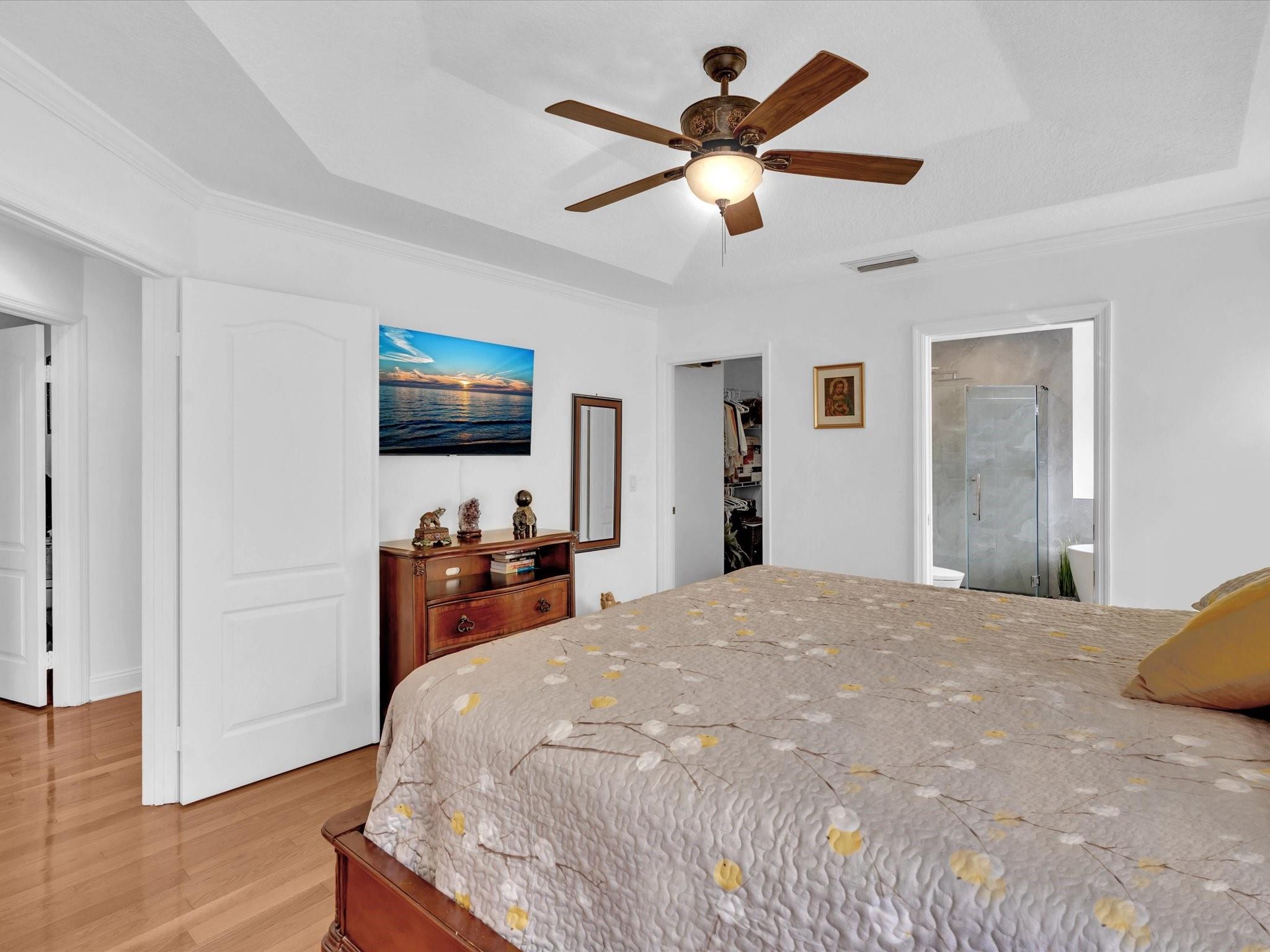 Meticulously designed residence boasting Solid Wood Floors ~Additional high windows to let in the FL sunshine ~Plantation Shutters downstairs along the family room + kitchen ~Structural resilience/efficiency are ensured through some Impact Glass/Shutters~High-energy HVAC system ~Volume + vaulted ceilings ~Kitchen is a culinary haven w/SS Appliances/Wood Cabinets & Granite Counters ~ Practicality meets elegance in the garage, featuring a laundry tub, a full wall of cabinets for efficient organization and a generator plug in ~Master Bath Exudes Luxury-double sinks, glass shower, soaking tub & a modern Smart Toilet w/Bidet. Lush landscaping envelops creating a Mediterranean Oasis ~Harmonious blend of form and function defines this residence, embodying engineering excellence and refined living