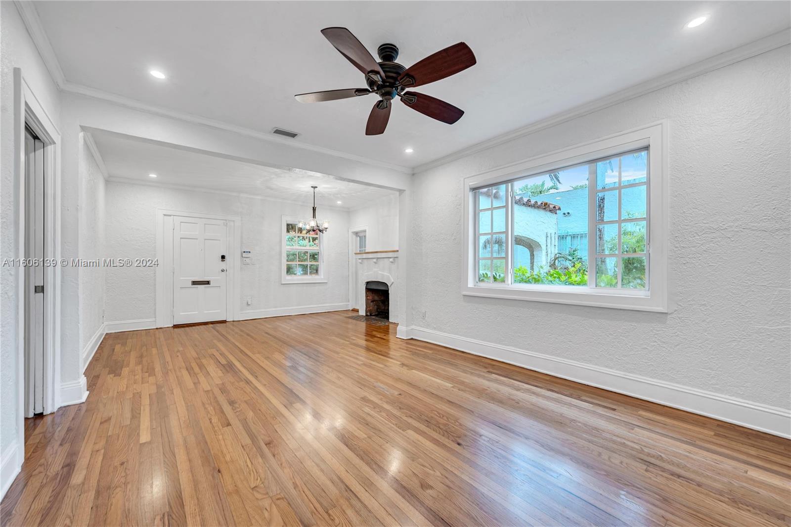 Welcome to this quintessential 1925 Old Spanish gem nestled on a tree-lined street in Coral Gables. This beautiful home seamlessly blends timeless charm w/ modern updates. Full of character w/ an original fireplace, hardwood floors & abundant natural light. The main house offers 2 spacious bedrooms & 2 full baths. Detached 1/1 cottage serves as perfect home office or guest quarters. Enjoy a renovated kitchen w/ ample storage & breakfast nook. Primary suite w/ walk-in closet & large bathroom. Tropical backyard oasis w/ deck, private patio & lush landscaping, ideal for relaxation & entertaining. Upgrades include impact windows, recessed lighting & new water heater. A carport ensures convenient parking. Ideal location just 2 blocks from Granada Golf Course & walking distance to Miracle Mile.