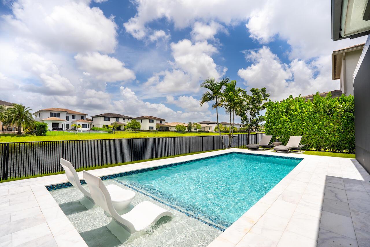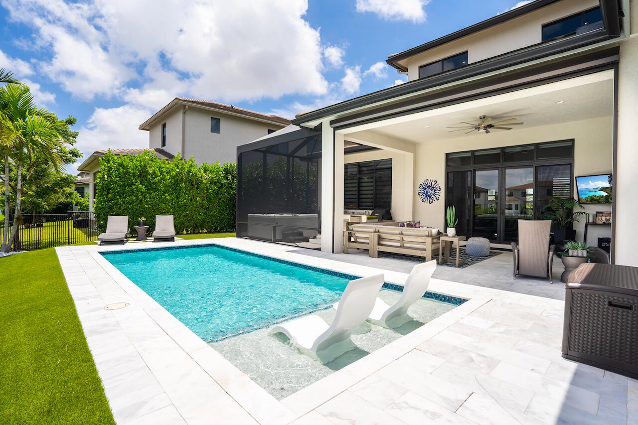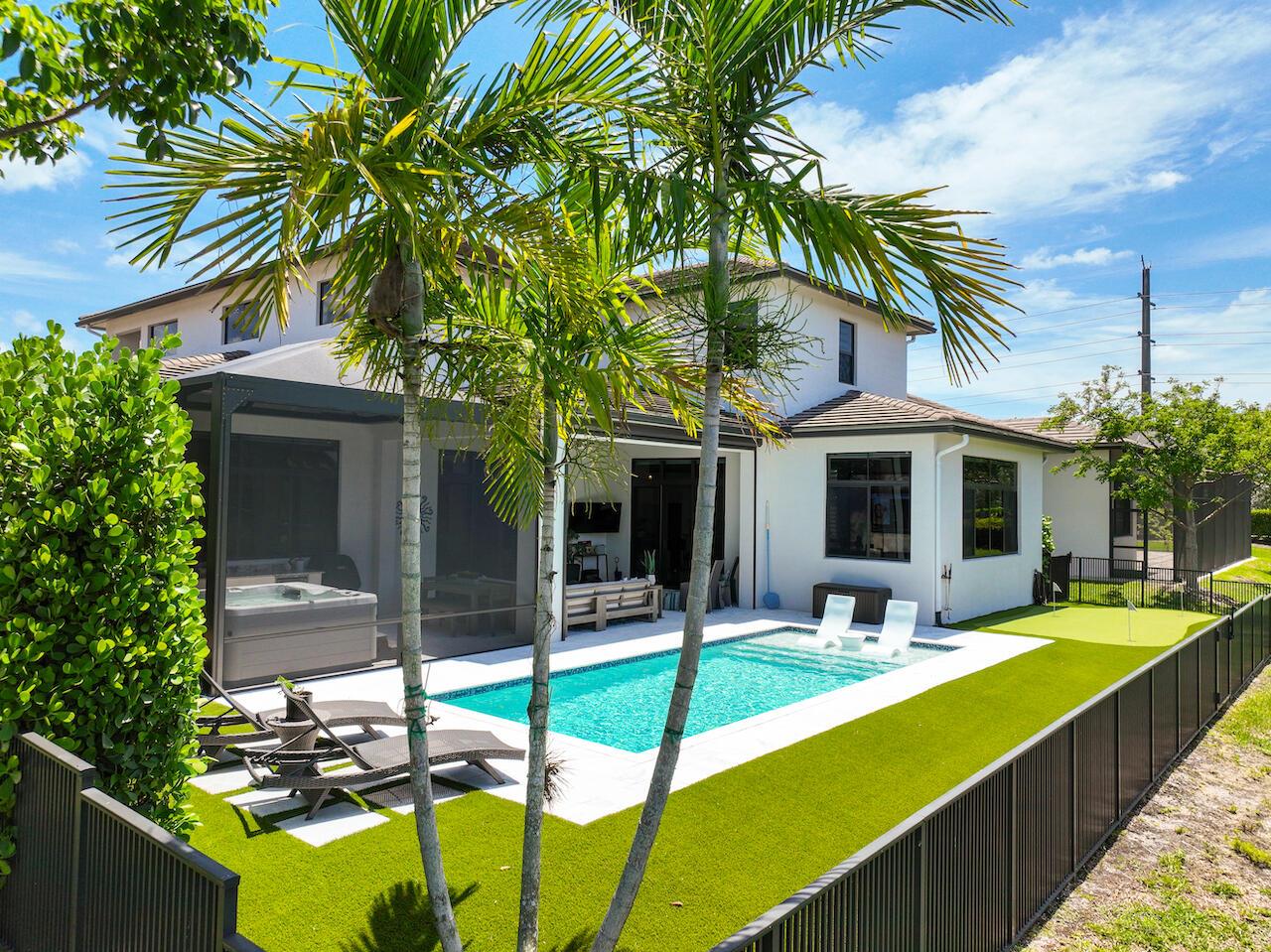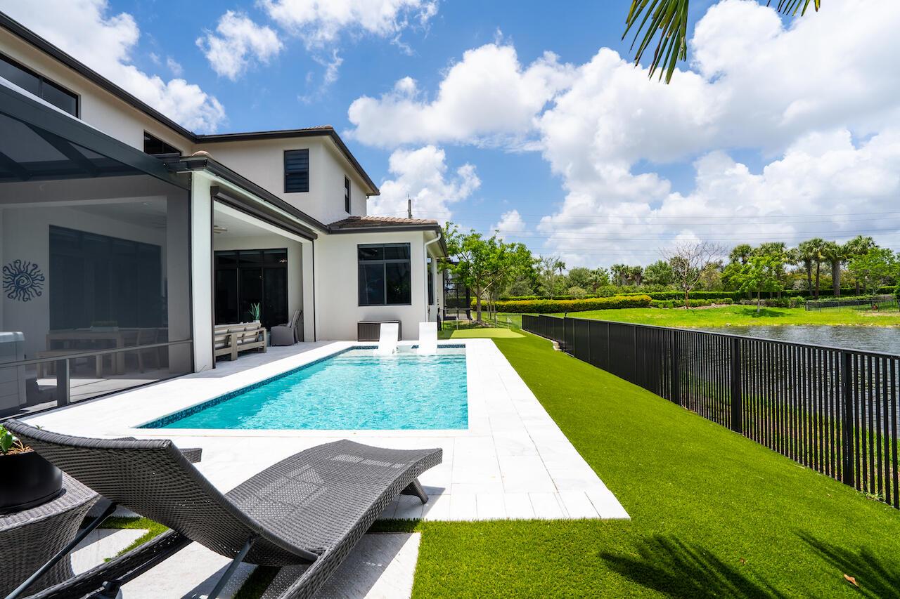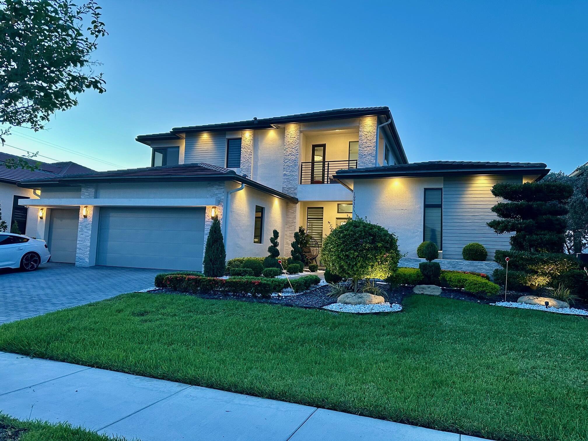 Spectacular CC Homes built Nouvelle model in Cascata. 5 bedrooms + loft, 4.5 baths, 3 car garage, soaring high ceilings & massive open concept floor plan. Chef's kitchen, white upgraded cabinetry, two tone quartz counters, high-end appliances, gas cooktop, snack-bar seating, & a true walk-in pantry. Spacious family room with custom wall unit. Elegant formal dining & living room with oversized porcelain tile throughout. Glass railings, electric blinds, complete home standby generator & impact windows/doors. 1st floor primary suite, oversized dual shower/tub luxurious bath. Enormous walk-in closet. Peaceful lake views from your electric screened patio or lounging in the pool. Private putting green & turf surround your marble paver patio. Amazing resort style amenities, A+ school